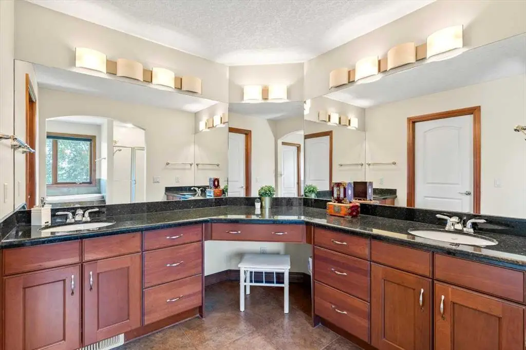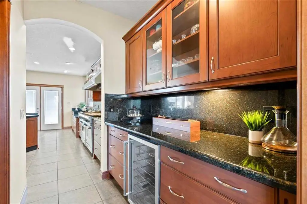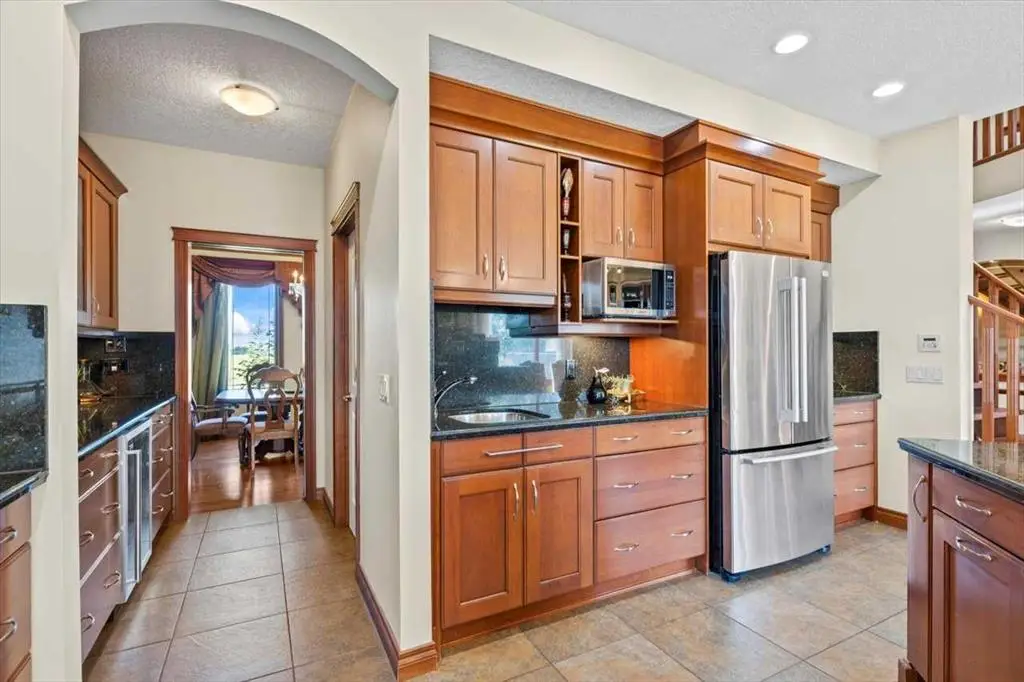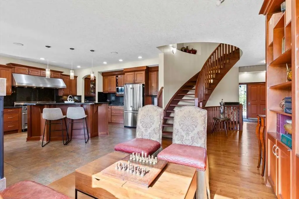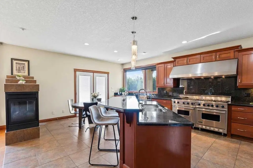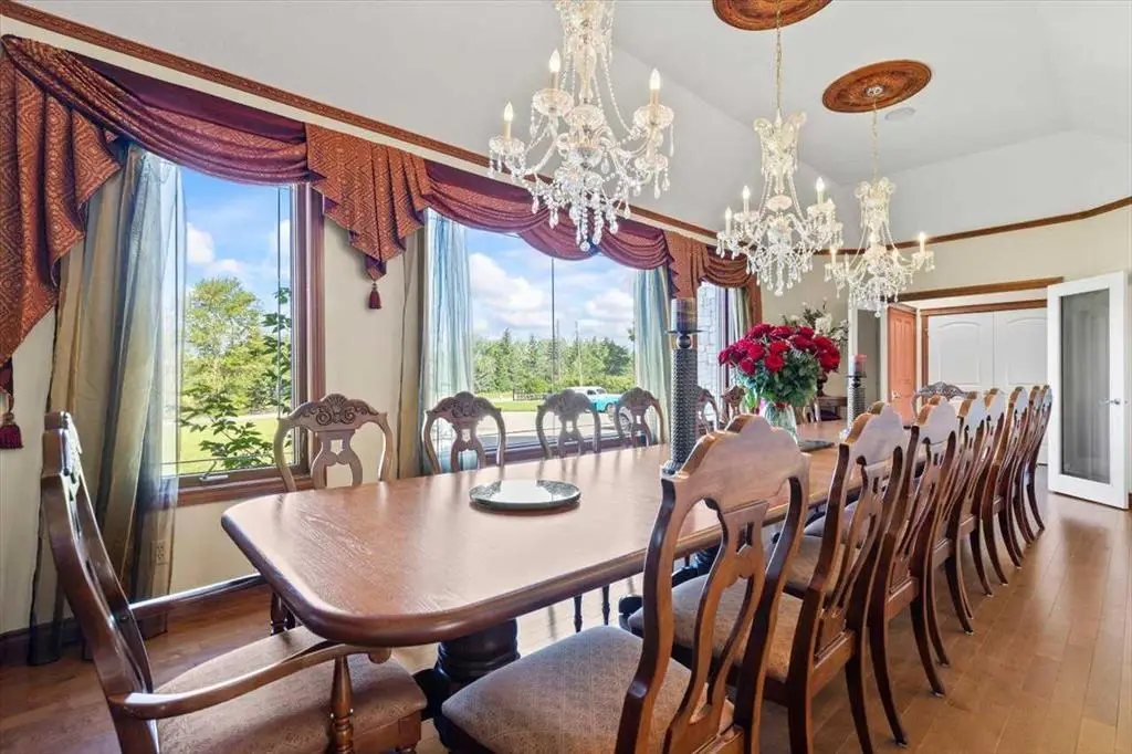 ELEGANCE, SPACE AND CONVENIENCE! DON'T MISS THIS CUSTOM BUILT 6-bedroom, 5-bathroom ESTATE HOME on 1.98 acres just minutes from the city and the sought-after community of SPRINGBANK. With more than 5,400 square feet of DEVELOPED LIVING SPACE, with a FULLY FINISHED WALKOUT BASEMENT, and a QUADRUPLE ATTACHED GARAGE with heated flooring, this home was designed for exceptional everyday living and unforgettable entertaining. At the heart of the home is a true CHEF'S KITCHEN featuring two VIKING RANGES — one dual-fuel oven and stove and one gas oven and stove, an upgraded 600 CFM HOOD FAN with interlocking and make-up air, STAINLESS STEEL APPLIANCES, GRANITE COUNTERTOPS, an oversized island, abundant REFRESHED CHERRY WOOD CABINETRY, BUTLERS KITCHEN with beverage fridge, and a LARGE WALK-IN PANTRY with a deep freezer. The enormous FORMAL DINING ROOM offers the perfect setting for holiday gatherings and celebrations, while refined architectural details, including SWEEPING CURVED STAIRCASES throughout the main level. The main floor is finished in hardwood and tile, GUEST BEDROOM WITH ENSUITE, and a huge mudroom with a tiled DOG WASH STATION keeps life organized and effortless. UPSTAIRS are 4 SPACIOUS BEDROOMS and convenient laundry room with sink. The PRIMARY BEDROOM features two walk-in closets, 5 piece ensuite and it's own PRIVATE BALCONY. Step outside to a LARGE UPPER DECK and a COVERED LOWER PATIO with electrical rough-in for hot tub or sauna that opens to your park-like yard, enhancing indoor-outdoor living and entertaining throughout the seasons. The fully developed walkout basement with heated flooring is an entertainer’s dream, featuring an spacious family room and a FULL BAR complete with a draft beer fridge and tap, plus a second dishwasher and refrigerator. A generous sized office or recreation room, a SIXTH BEDROOM, and an impressive SIX PIECE BATHROOM complete this level, ensuring plenty of space for work, guests, and family. THE WHOLE INTERIOR OF THE HOUSE HAS BEEN FRESHLY PAINTED! Outdoors, the nearly two-acre lot provides remarkable privacy with distance from neighbors. An irrigation system, large shed, dedicated PLAYGROUND plus a TENNIS / BASKETBALL COURT invites playful activity, while a cedar slide, swing-set, tower, monkey bars, and trampoline offer year-round recreation for kids. The property also includes a water softener, two dishwashers (kitchen and bar), and two refrigerators (kitchen and bar), Weber Genesis Natural Gas BBQ, as well as a deep freezer in the pantry to support your food storage needs. There are 3 schools nearby with school bus service close to the home. An EXCEPTIONAL PROPERTY offering the best of country-style space with city convenience. DON'T MISS THIS EXCELLENT SPACIOUS FAMILY HOME! ALL HOUSE PLANS AVAILABLE. BOOK YOUR SHOWING TODAY!