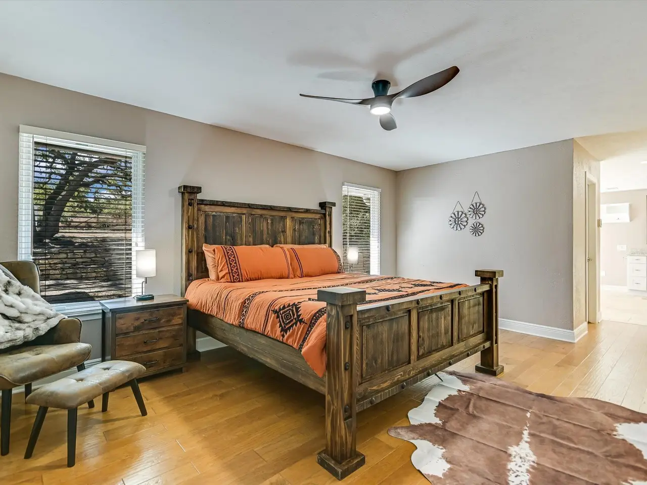 In the heart of pastoral Blanco County, and just under one hour from Austin, lies a unique opportunity to own almost 100 acres of Hill Country beauty. Wildlife is everywhere: white-tail and axis deer, native foxes, songbirds and more. The surroundings are lush, with thick brush and no grazing creating some of the best low-fence hunting in the Hill Country. Pedernales State Park is less than ten minutes away, offering miles of hiking and fishing. Located at the start of the famed Texas Wine Trail, the property is just beyond the first vineyard on the trail. Ready to welcome you today, a classic standing-seam metal-roofed ranch house has been updated to harmonize with the surrounding land; multiple living areas and four bedrooms offer plenty of space for family and friends. The possibilities are endless with this property; occupy the entire acreage as a refined family escape, use as a secluded recreational retreat, subdivide into 5-acre parcels to share with neighbors or create a lucrative vacation destination at the entrance to the Texas Wine Trail.