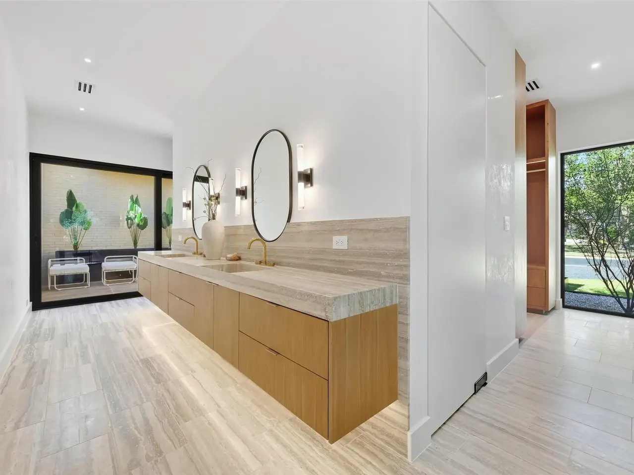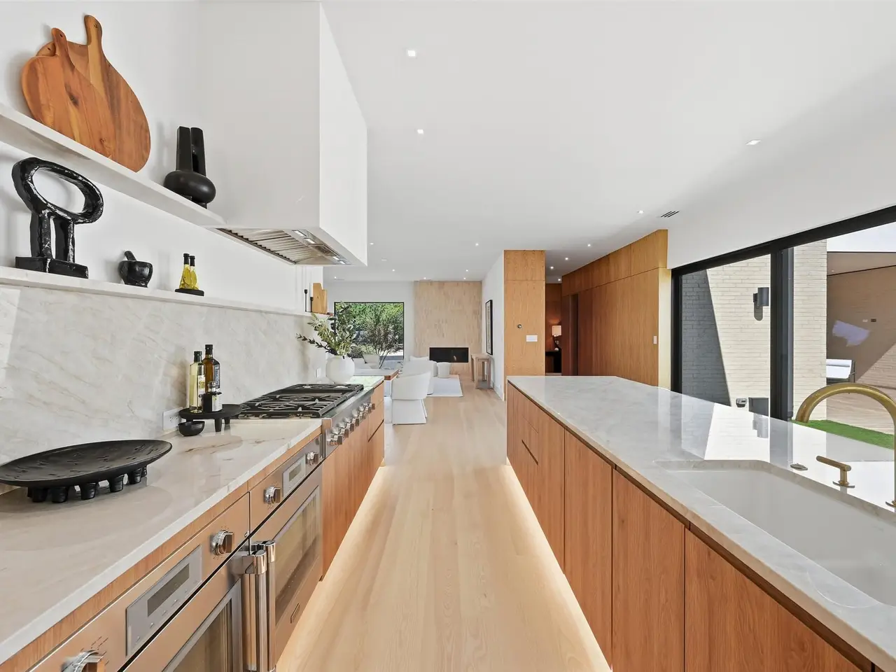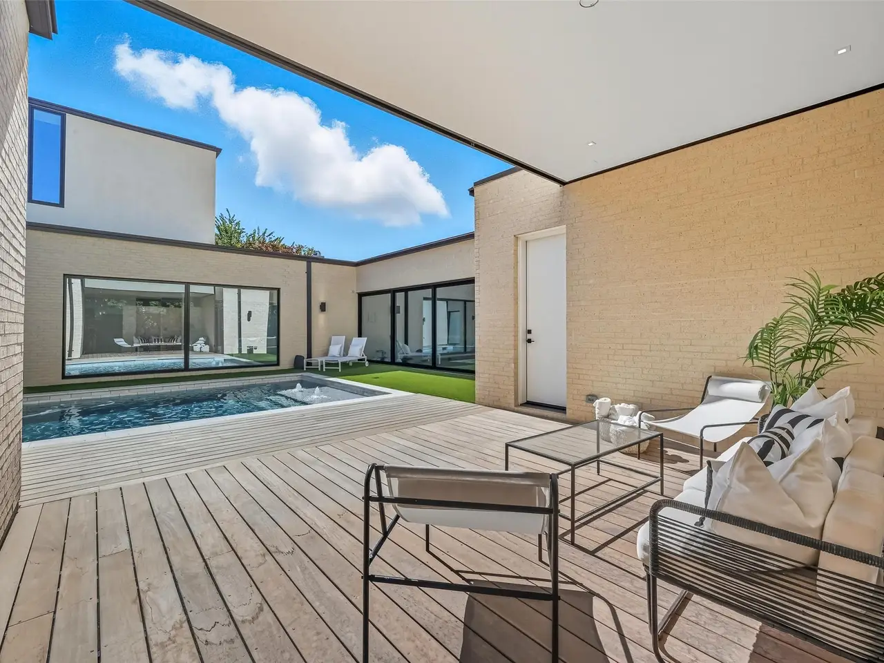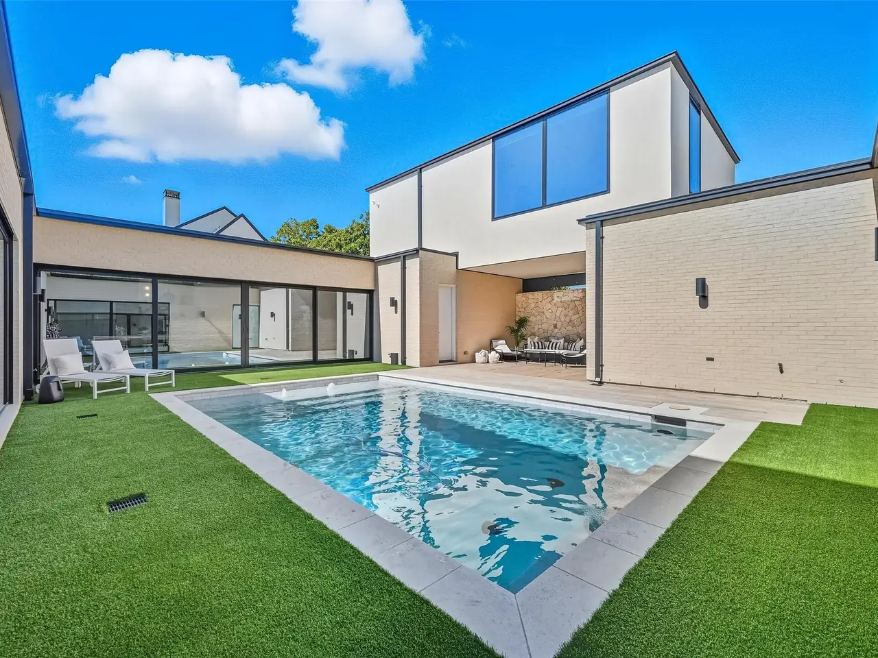 Ideally located near high-end shopping, acclaimed restaurants, and elite private schools, this architecturally iconic residence by AM Homes offers an unparalleled blend of high design and refined living. Designed by renowned architect Josh Nimmo, with interiors by the award-winning SWOON, this one-of-a-kind home is a true work of art.The striking stacked-cube exterior showcases a bold modern aesthetic, featuring creamy brick, Bokara stone, Sarelle pavers, and smooth cement stucco. Every element reflects a commitment to artistry, innovation, and natural harmony.Inside, a serene, gallery-like ambiance is created through white oak-paneled walls, Porcelanosa wood flooring, and custom smooth plaster finishes. The sleek, open-concept kitchen is equipped with top-of-the-line Thermador appliances, bespoke Porcelanosa cabinetry, Waterworks fixtures, and elegant white oak detailingperfectly suited for both entertaining and everyday luxury.At the heart of the home lies a private inner courtyard with an Ipe wood deck and a tranquil pool by Gold Medal Pools, seamlessly integrating indoor and outdoor living. A 40-foot Bokara stone wall adds an artful sense of privacy and calm.This is more than a homeit's a curated lifestyle experience where contemporary architecture, high design, and luxury location converge in perfect balance.