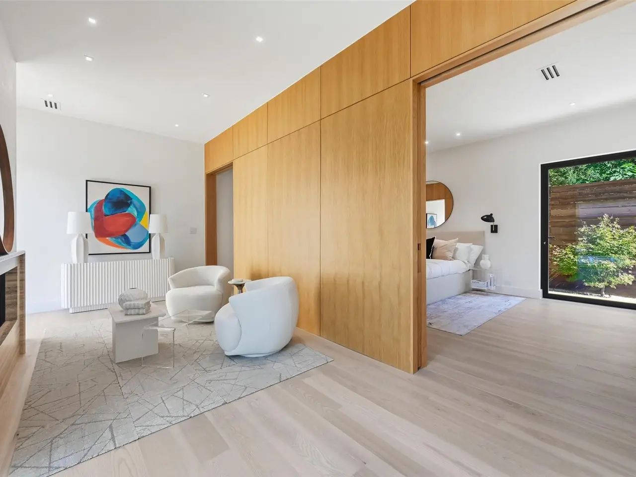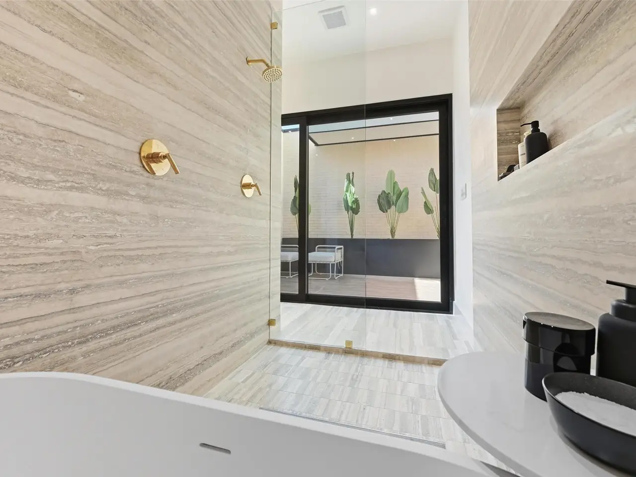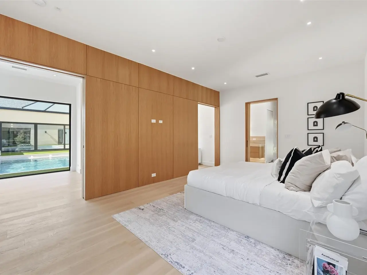 Ideally located near high-end shopping, acclaimed restaurants, and elite private schools, this architecturally iconic residence by AM Homes offers an unparalleled blend of high design and refined living. Designed by renowned architect Josh Nimmo, with interiors by the award-winning SWOON, this one-of-a-kind home is a true work of art.The striking stacked-cube exterior showcases a bold modern aesthetic, featuring creamy brick, Bokara stone, Sarelle pavers, and smooth cement stucco. Every element reflects a commitment to artistry, innovation, and natural harmony.Inside, a serene, gallery-like ambiance is created through white oak-paneled walls, Porcelanosa wood flooring, and custom smooth plaster finishes. The sleek, open-concept kitchen is equipped with top-of-the-line Thermador appliances, bespoke Porcelanosa cabinetry, Waterworks fixtures, and elegant white oak detailingperfectly suited for both entertaining and everyday luxury.At the heart of the home lies a private inner courtyard with an Ipe wood deck and a tranquil pool by Gold Medal Pools, seamlessly integrating indoor and outdoor living. A 40-foot Bokara stone wall adds an artful sense of privacy and calm.This is more than a homeit's a curated lifestyle experience where contemporary architecture, high design, and luxury location converge in perfect balance.