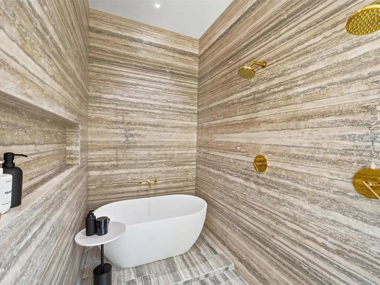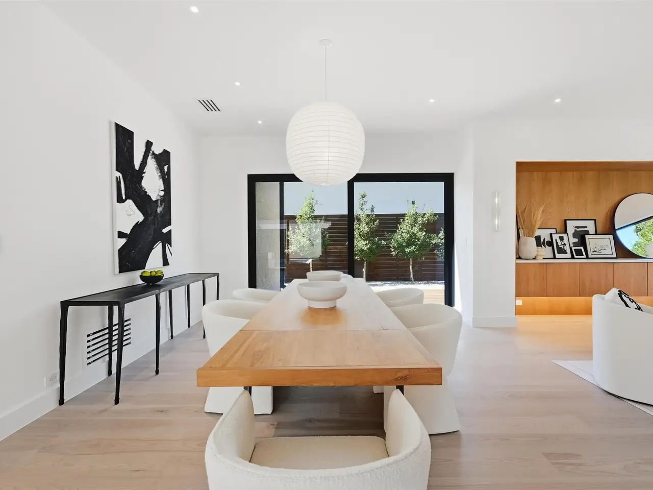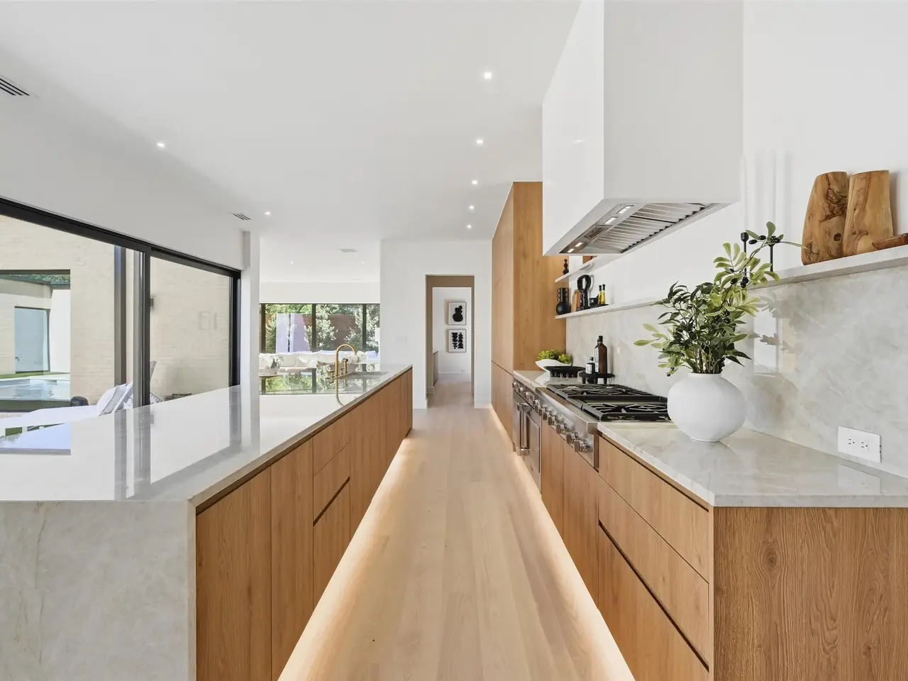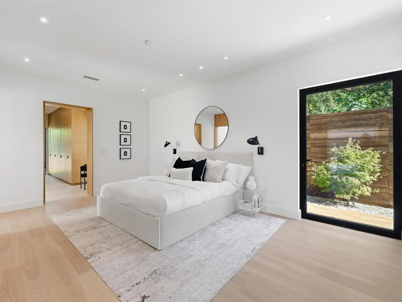 Ideally located near high-end shopping, acclaimed restaurants, and elite private schools, this architecturally iconic residence by AM Homes offers an unparalleled blend of high design and refined living. Designed by renowned architect Josh Nimmo, with interiors by the award-winning SWOON, this one-of-a-kind home is a true work of art.The striking stacked-cube exterior showcases a bold modern aesthetic, featuring creamy brick, Bokara stone, Sarelle pavers, and smooth cement stucco. Every element reflects a commitment to artistry, innovation, and natural harmony.Inside, a serene, gallery-like ambiance is created through white oak-paneled walls, Porcelanosa wood flooring, and custom smooth plaster finishes. The sleek, open-concept kitchen is equipped with top-of-the-line Thermador appliances, bespoke Porcelanosa cabinetry, Waterworks fixtures, and elegant white oak detailingperfectly suited for both entertaining and everyday luxury.At the heart of the home lies a private inner courtyard with an Ipe wood deck and a tranquil pool by Gold Medal Pools, seamlessly integrating indoor and outdoor living. A 40-foot Bokara stone wall adds an artful sense of privacy and calm.This is more than a homeit's a curated lifestyle experience where contemporary architecture, high design, and luxury location converge in perfect balance.