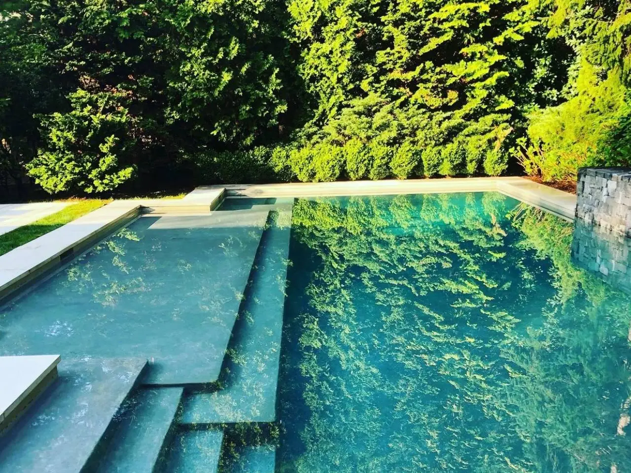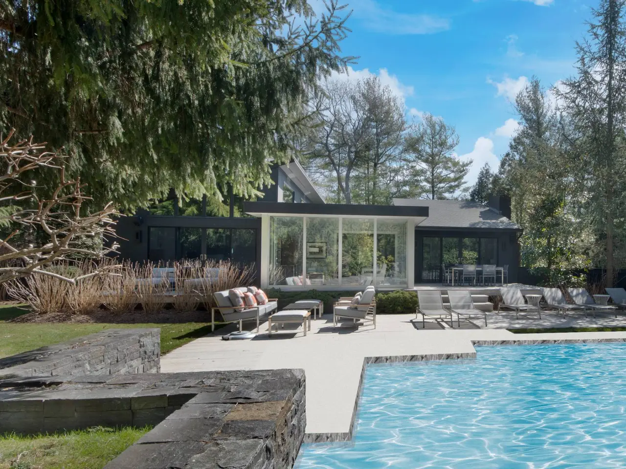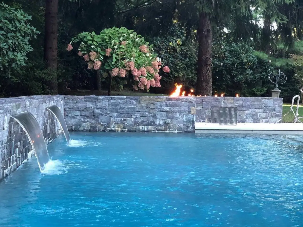 • Custom stone wall with waterfalls