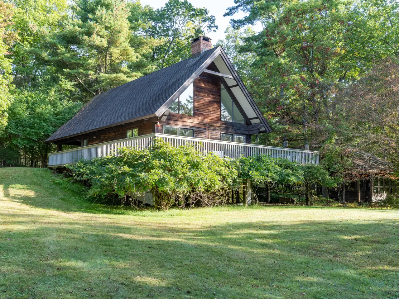 Serene country escape: Discover the perfect blend of Upstate tranquility and convenient living with this exceptional property. Nestled on 6+ acres of private, lush land with half acre pond and large heated pool, this home offers an intimate connection to nature without sacrificing modern amenities. Large windows and high ceilings throughout the house flood the open-concept living spaces with natural light and provide postcard-perfect views of the scenic surroundings. Enjoy your morning coffee or entertain guests on the expansive deck, surrounded by dense woodlands and experience all four seasons in your own oasis, from vibrant fall foliage to peaceful winter snowfalls. Use your imagination to turn the numerous outbuildings into various ideas, art or yoga studio, mediation sanctuary or work space. Despite its secluded feel, this home is just a short drive from charming village centers of Kingston, Woodstock and Stoneridge - all with gourmet restaurants and boutique shops. This property is designed for those who value absolute privacy but desire effortless access to the Hudson Valley or Catskills' finest cultural and culinary offerings and incredible hiking trails. Its more than a home; it's a private haven that brings the best of country living to your doorstep.