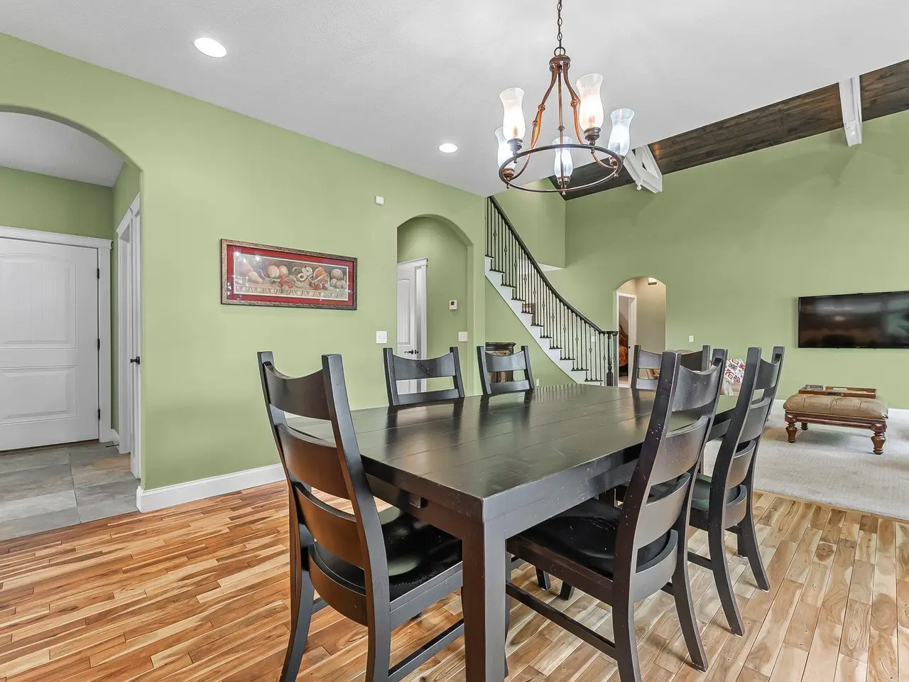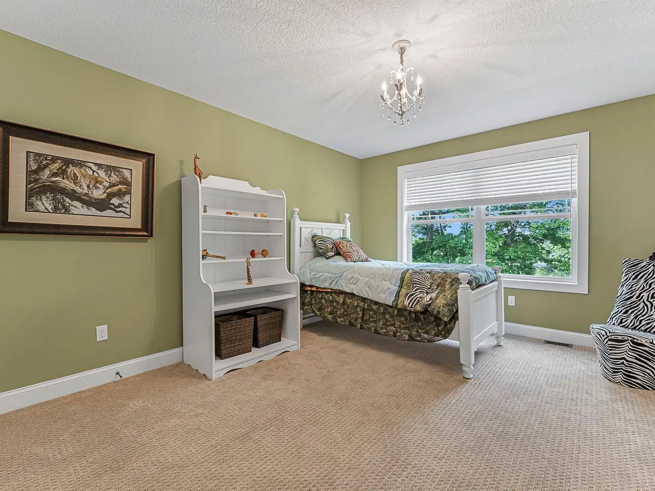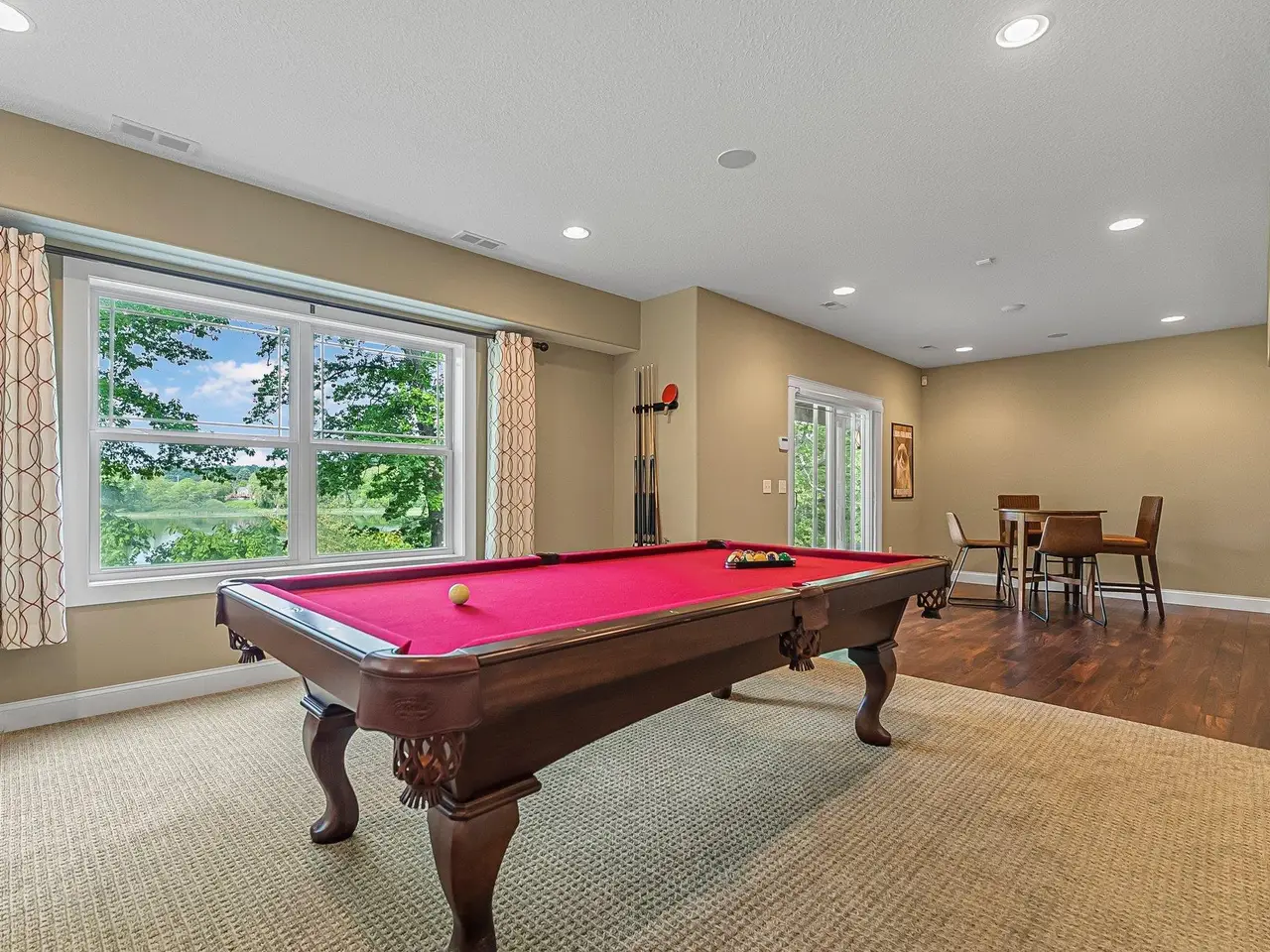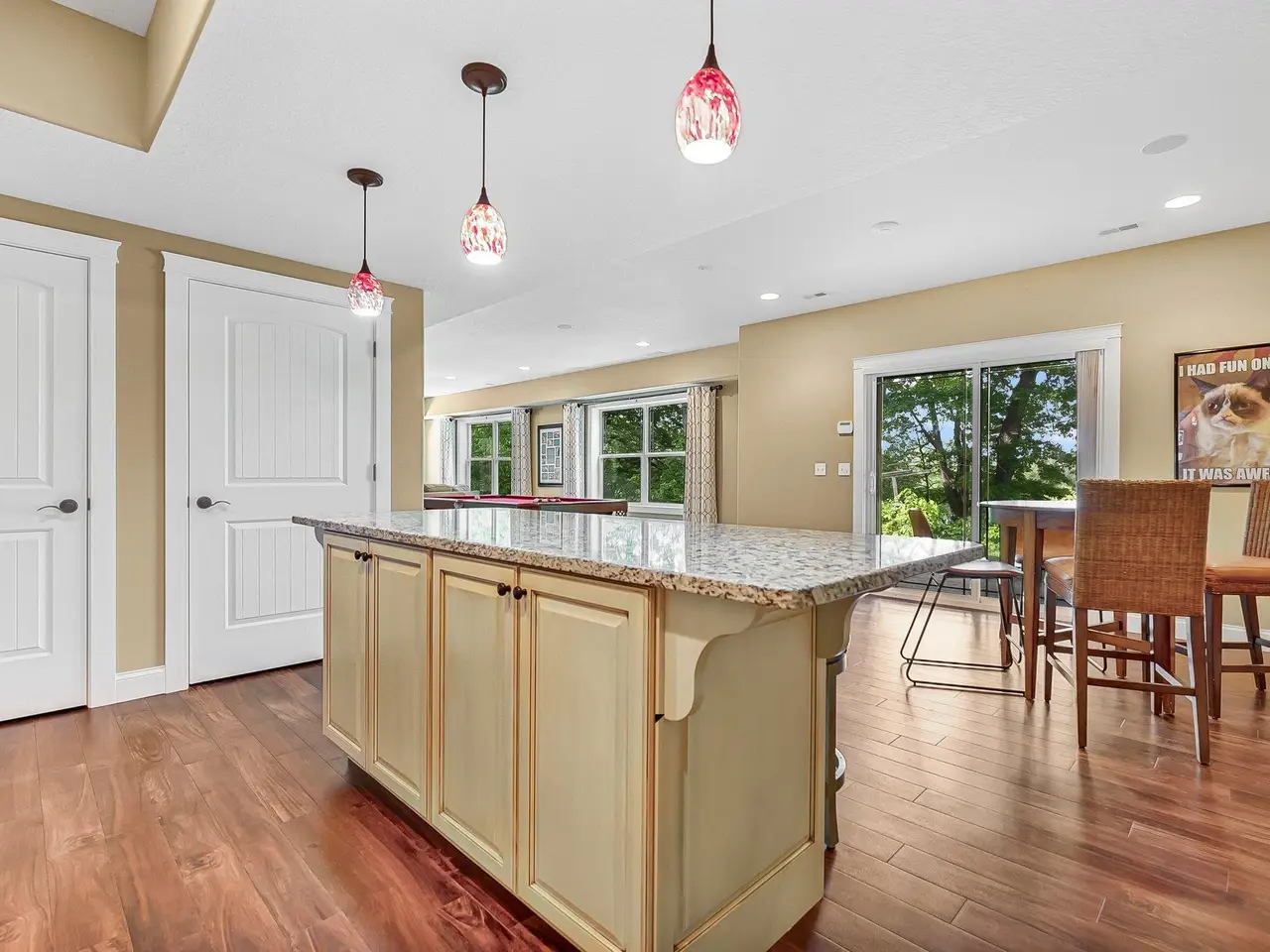 Experience luxury lakefront living in this stunning 5-bedroom, 4.5-bath home on Huellmantel Lake, featuring vaulted ceilings, breathtaking water views, and an open-concept living room. The gourmet kitchen offers top-of-the-line Wooden Hammer cabinetry, granite countertops, and a spacious island, along with an elegant foyer, mudroom, and main floor laundry. Enjoy two private office spaces, a main-level en suite, and a walk-out lower level with a large family room and wet bar. Complete with a 3-car garage and private lake frontage, this home combines comfort, style, and an unbeatable setting.