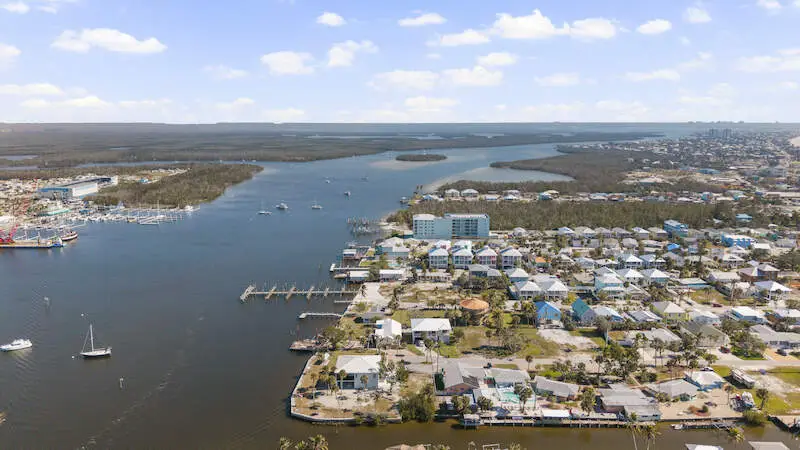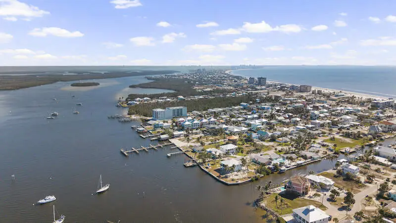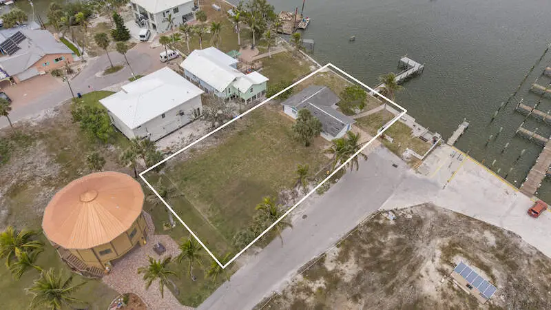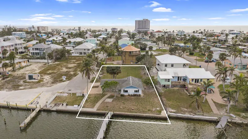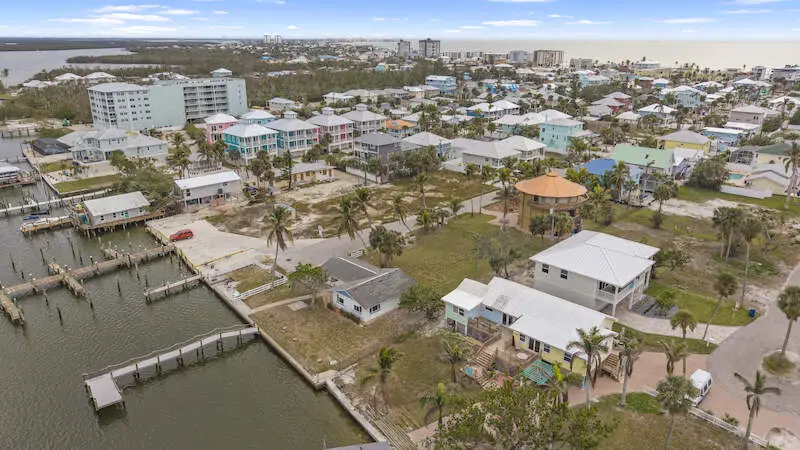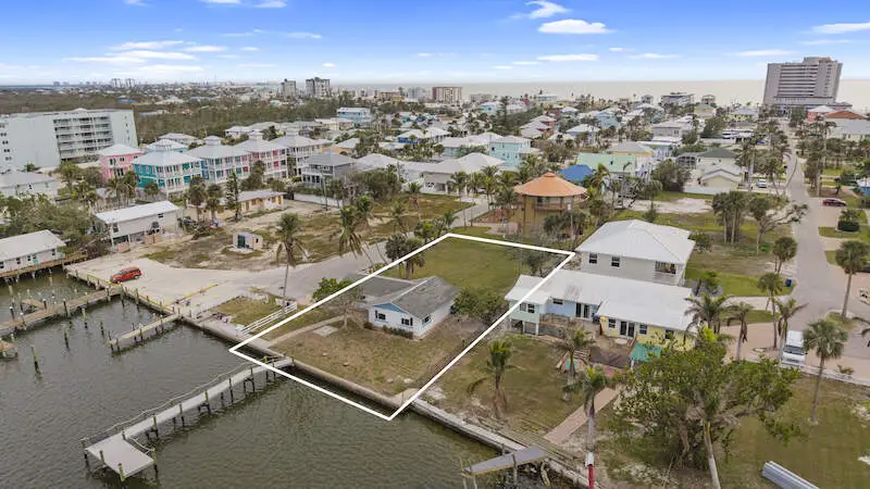 Nestled on the shores of Fort Myers Beach, this waterfront plot of land offers a captivating blend of coastal charm, tropical vibes, and is just waiting for someone to build their property in PARADISE! Renowned for its proximity to the sugary sands of Fort Myers Beach (7 min walk), this property also boasts 80 feet of Bay frontage, offering unparalleled access to the water. HOME IN PICTURES HAS SINCE BEEN REMOVED AND READY FOR NEW BUILD!! A Composite wood dock built in 2021 provides the perfect vantage point for admiring the panoramic views of Estero Bay and Mantanzas Pass, where the shrimp fleet adds a touch of local color. Embark on a short boating excursion to enjoy and discover the many dining and entertainment venues nearby. Whether it's enjoying endless sunrises and sunsets, watching the dolphins and manatees while fishing right off your dock, this is a haven for those seeking the ultimate waterfront living experience. Being very close to the North end of the Island means shopping and dining minutes away, and easy access on and off the island. This lot is oversized and able to accommodate an extremely large single family residence (with room for a pool!) to spread out, or, split the lots and build 2 homes for family or investment. LOCATED IN A WEEKLY RENTAL ZONE, Your choice of endless opportunity is here!!! If you have any questions whatsoever, please feel free to contact the listing agent. Existing structure scheduled to be removed. WHAT'S THE OLD SAYING? WHEN OPPORTUNITY KNOCKS, OPEN THE DOOR!!