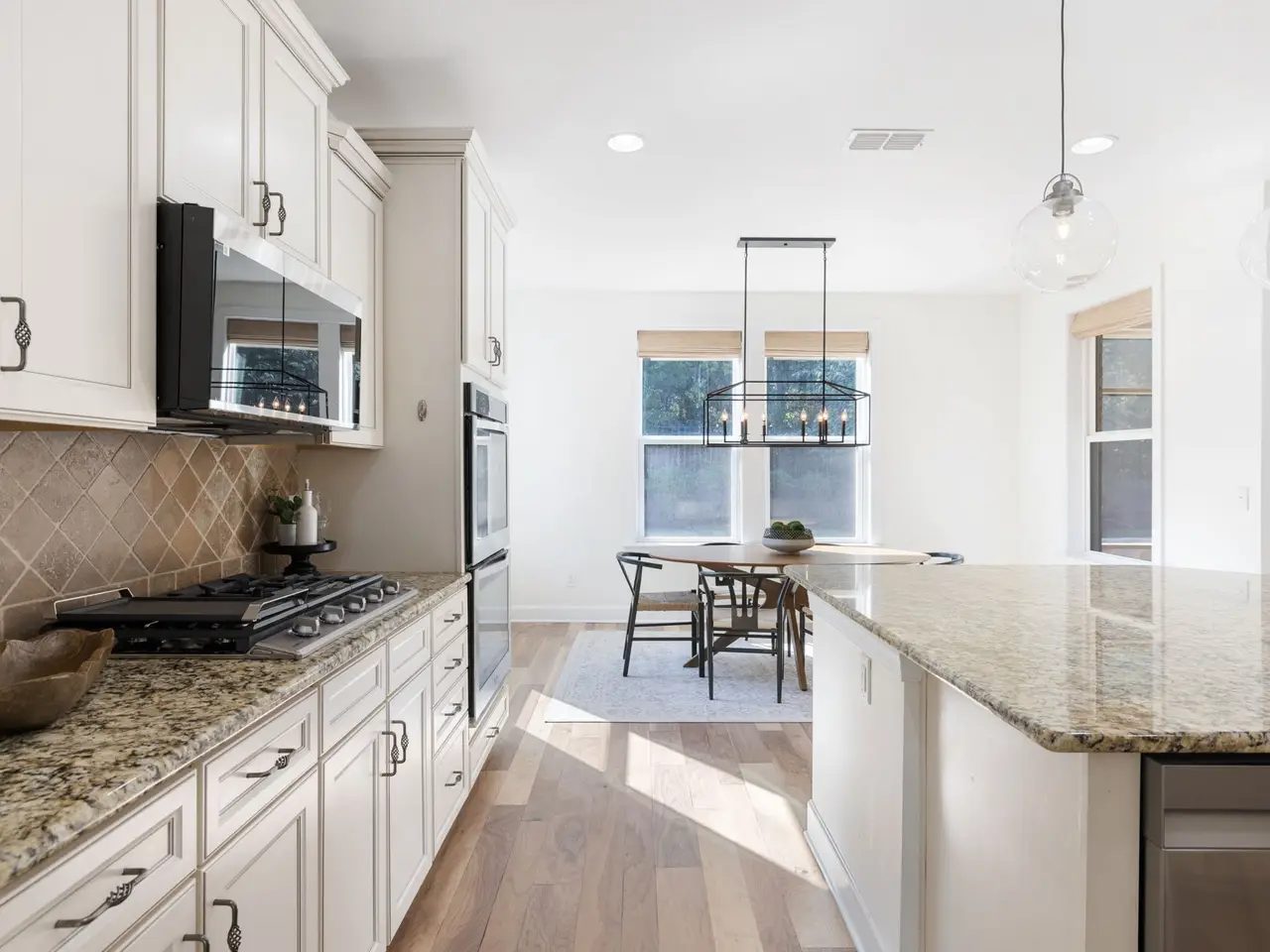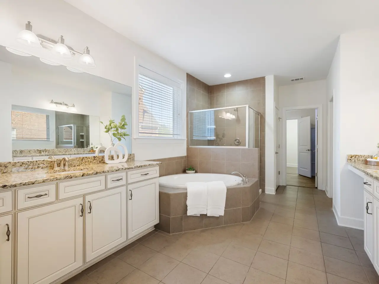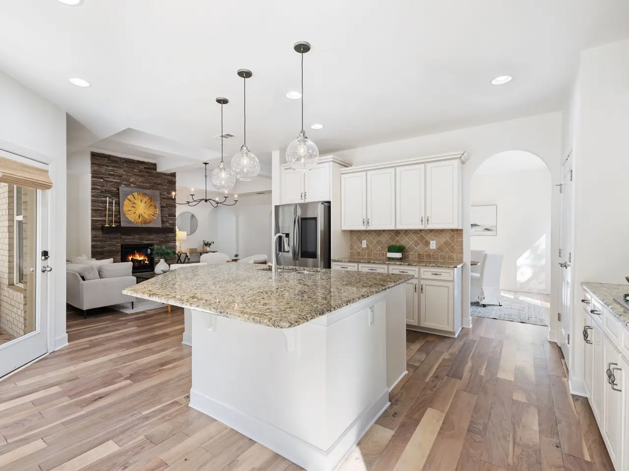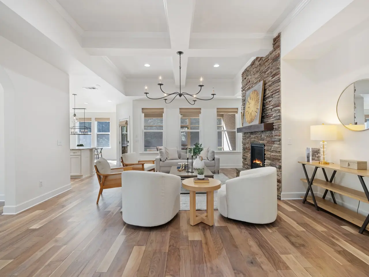 Welcome home to this stunning property with a layout that truly has it all! The gourmet kitchen is the heart of the home, featuring a large island and breakfast area that open to the great room with its cozy stone gas fireplace and beautiful coffered ceiling. Just off the foyer, the formal dining room shines with arched doorways and a wood accent wall that adds warmth and charm. The main level offers a relaxing primary suite with double closets plus a private guest ensuite--perfect for visitors. Upstairs, you'll find plenty of space with an oversized bonus room, a media room for movie nights, and two additional bedrooms, along with extra storage. Fresh white paint throughout makes every room feel bright and welcoming. Enjoy the outdoors year-round with a screened flagstone porch, a patio for grilling, and a level fenced backyard with irrigation--ideal for play, pets, and entertaining. A 3-car garage tops it all off.