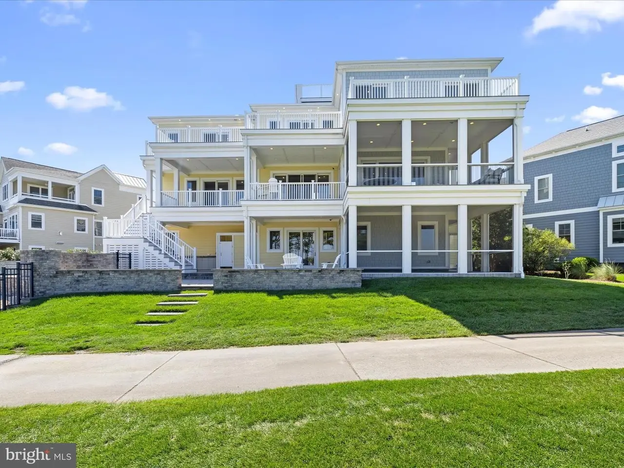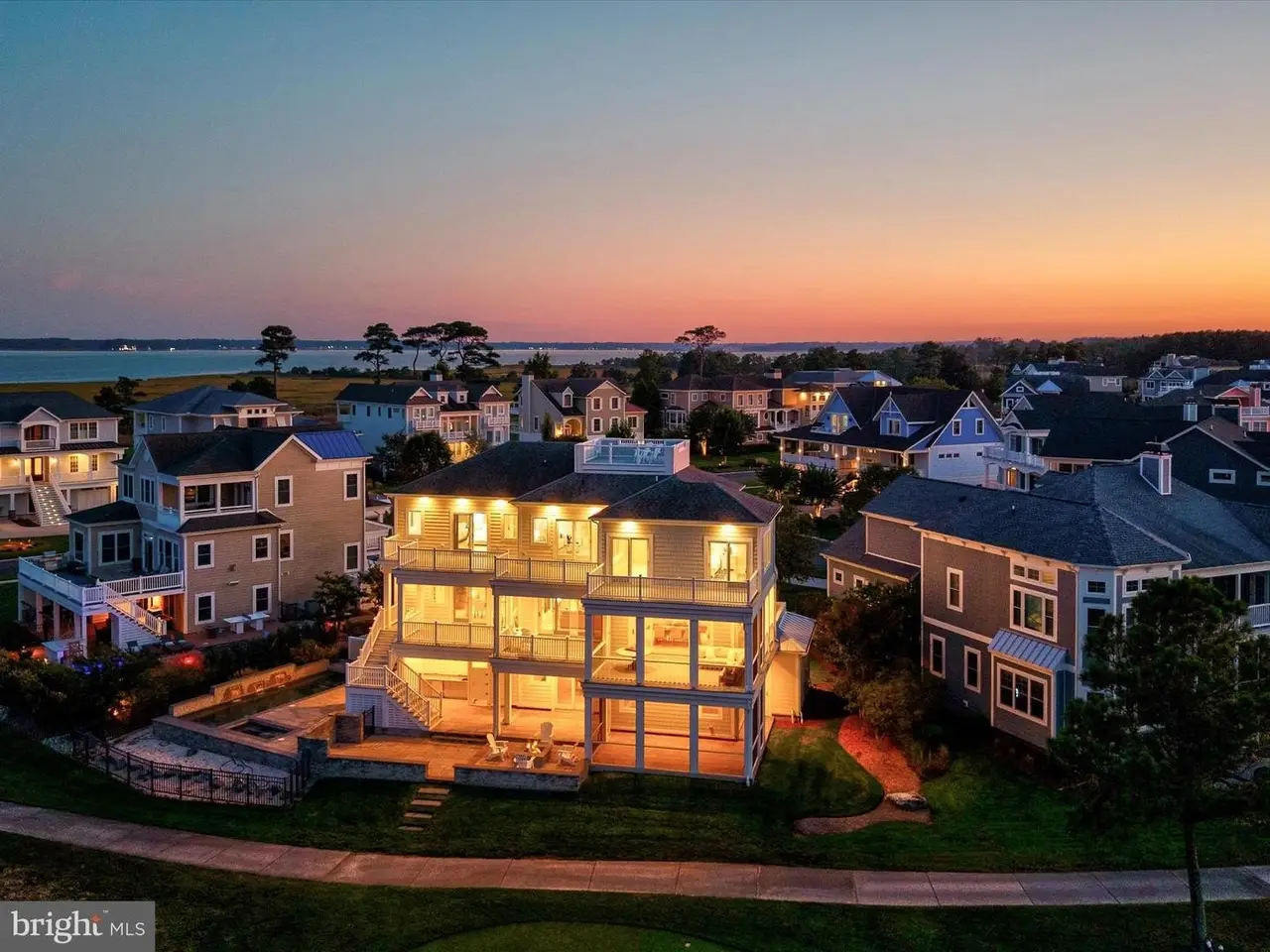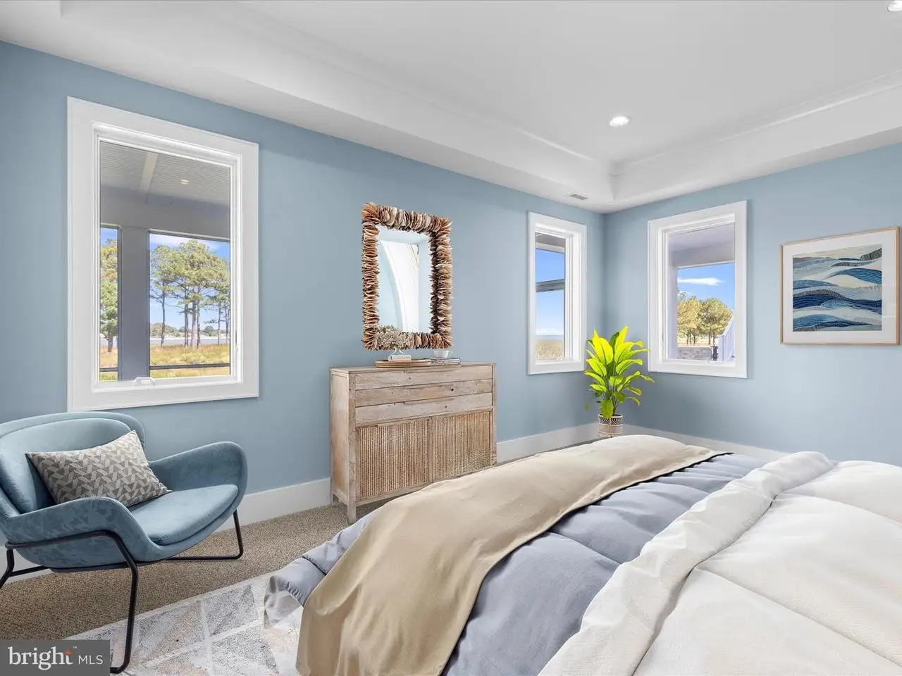 A Sanctuary of Coastal Elegance with Endless Views A one-of-a-kind masterpiece by Echelon Homes, this custom-designed residence marries contemporary coastal style with subtle industrial cues, delivering awe-inspiring luxury at every turn. Nestled within the prestigious Jack Nicklaus Signature Golf Course community of The Peninsula, this extraordinary home rises in the exclusive Sanctuary enclave, perched on the pinnacle of Sand Dollar Drive. Designed to maximize its spectacular position, the residence offers three levels of living with sweeping 360-degree views of the Indian River Bay, Lingo Creek, and the 8th Tee. From the moment you arrive, casual elegance blends seamlessly with quality craftsmanship and coastal sensibility. Wide-plank hardwood floors, shiplap, judges paneling, beamed ceilings, and custom built-ins unify the interiors, while designer lighting adds glimmering sophistication. The main level foyer opens to the great room, where floor-to-ceiling atrium sliders flood the space with natural light, showcase breathtaking views, and extend effortlessly to an expansive balcony deck. The living room is anchored by a soaring quartz-clad fireplace, accented with black steel and flanked by elegant glass-and-wood display cabinets. An open-beamed ceiling heightens the drama, creating a stunning focal point. This central gathering space flows into the gourmet kitchen and dining area, a showcase for both entertaining and daily life. Quartz surfaces span generous work areas and the oversized center island, complete with abundant storage, beverage and wine refrigerators, deep undermount sink, and built-in oven. A striking glass tile backsplash highlights the GE Monogram six-burner range with custom vent hood, while a suite of professional-grade stainless appliances completes the space. A walk-in pantry with custom floor-to-ceiling storage ensures both beauty and function. Dine casually at the breakfast bar, host formal meals in the adjacent dining room, or step through sliders to the screened porch, where dazzling sunsets over the bay make every evening extraordinary. This level also offers a refined home office with balcony access, a stylish hall bath, and the first of five bedrooms, complete with ensuite. Ride the elevator to the primary suite retreat, where panoramic views greet you from bed beneath a soaring cathedral ceiling of shiplap and beams. The spa-inspired ensuite rivals a five-star resort, with two vanities, soaking tub, walk-in shower, private water closet, and dual walk-in closets with abundant storage. Two additional guest suites, each uniquely styled with private ensuites, one with balcony access, ensure comfort for family and friends. A second-floor laundry adds convenience, while a welcoming family room with balcony access serves as the perfect gathering spot. From here, a staircase leads to a bonus loft and the crowning jewel of the home: a rooftop terrace offering unrivaled 360-degree views. The lower level, filled with natural light, high ceilings, and precise millwork, is designed for entertaining. A game and lounge room, sizable guest bedroom, hall bath, second laundry, and mudroom entry complement the oversized two-car garage and additional third garage. Beyond the garages, a pool bath leads to the outdoor oasis. Here, a hardscaped paradise awaits: heated pool, spa, firepit, lounging areas, covered bar patio, and a screened pavilion, all perfectly positioned to embrace the home's remarkable setting. As a resident of The Peninsula, you'll enjoy world-class amenities, including gated security, a stunning clubhouse, the Jack Nicklaus golf course and driving range, a state-of-the-art fitness center with indoor, outdoor, and wave pools, hot tubs, saunas, spa rooms, tennis and pickleball courts, dog park, community garden, nature center, bay beach, fishing pier, and miles of walking trails. Come home to comfort, luxury, and resort living at its finest.