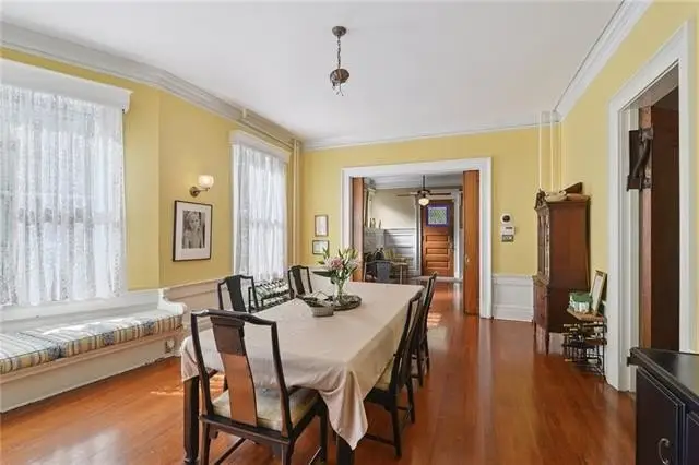 Presenting the Sully-Wormuth House, designed and built by renowned architect Thomas Sully in 1901 as his personal residence. This rare opportunity allows you to own a piece of architectural history, as Sully is renowned for iconic residences like The Columns, Sully Mansion, the Hennen Building, and many other grand Uptown homes. The home's design primarily features the Queen Anne style with distinct Craftsman elements incorporated throughout. The exterior is notable for a band of diamond-patterned wood shingles, and the gables are decorated with half-timbering and stucco-surrounded windows—details typical of Sully's work. Inside, the home offers gracious, high-ceilinged rooms. The large reception hall features a stunning staircase and stained glass. Original features have been preserved, including wood floors, stained glass windows, diamond-patterned leaded windows, unique fireplaces, and functional pocket doors. The dining room is enhanced by a large bay window with built-in seating. The front bedrooms upstairs provide sweeping views of the oak-lined Carrollton Avenue and the streetcar line. The property has seen significant upgrades, including the meticulous replacement of the slate roof in 2007 and updated plumbing, electrical, and HVAC systems. The rear yard includes a garage, the brick base of the original cistern (suitable for storage or a potting shed), and a mature citrus tree, with ample space remaining for the addition of a pool. This is a fabulous opportunity to own an architecturally significant, historic home, allowing for cosmetic updates to truly make it your own.