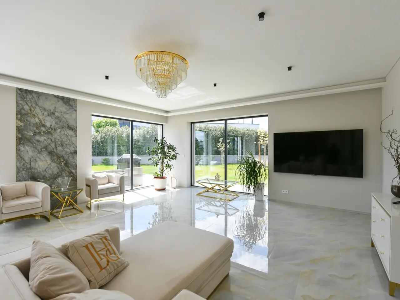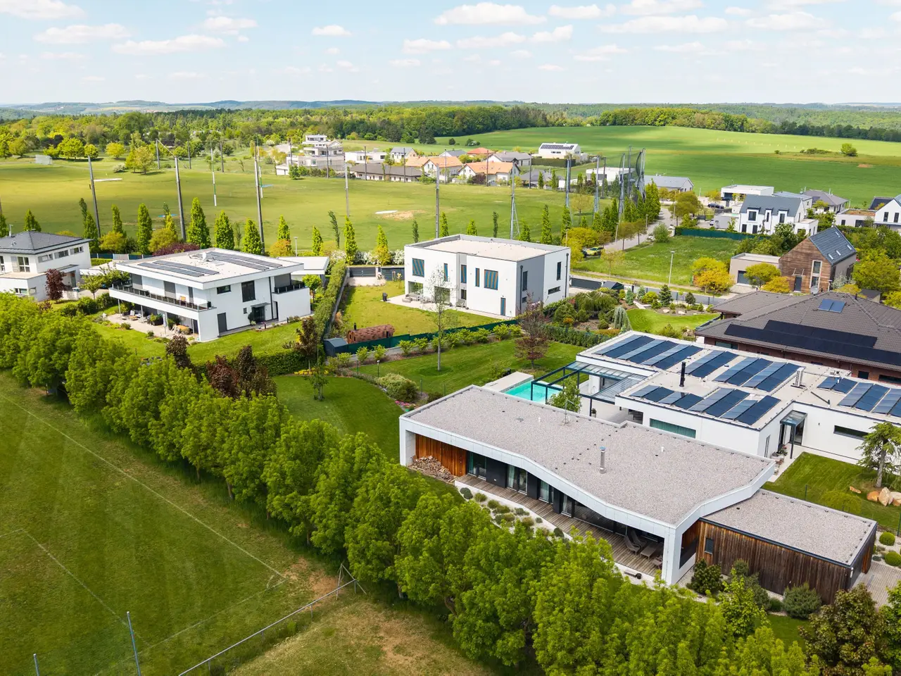 We are pleased to introduce a modern brick villa with a 7+kk layout, situated in the picturesque village of Vysoký Újezd near Beroun, boasting beautiful natural surroundings of the Bohemian Karst and close proximity to one of the best Czech golf courses - Albatross Golf Resort with an international PGA status. This village is rightfully one of the most sought-after residential locations in the vicinity of Prague. The villa, situated on a plot of 1285 m2 and completed in 2022, offers a usable area of 416 m2 over two floors. The first floor features a representative entrance hall with a staircase, a living room with a fully equipped kitchen, a guest room with a private bathroom, a dressing room, toilet, three utility rooms, and a garage for two cars. The second floor has four separate spacious bedrooms and four bathrooms (one for each bedroom), an office, and a utility room. All windows in the house are French-style, aluminum with insulating triple glazing. The house is equipped with external blinds, intelligent air conditioning units, an alarm, and a camera system. The heating throughout the house is underfloor and managed by two independent heat pumps. The house has exceptionally high ceilings - 3 meters, with door heights of 2.5 meters. The flat garden features a sauna, an irrigation system, and two technical sheds. The garden has a separate entrance. Below the surface, there is a rainwater tank. This is a truly high-quality brick new building suitable for a large family, which can also be used as a multi-generational house. Given the number of bedrooms and bathrooms, independent living within the house is feasible. The house is offered including built-in and other equipment and including appliances. Most materials and furniture are imported from Italy from the Milan fair. Vysoký Újezd near Beroun is very accessible thanks to the D5 highway and the nearby Prague ring road. It is 20 km and a 25-minute drive to the center of Prague, 20 minutes by car to the airport, and 10 minutes by car to Beroun. In recent years, Vysoký Újezd has seen the development of a community closely associated with the local golf complex. Besides the renowned Italian restaurant, you can also dine at the KOGO restaurant directly in the golf course area. In Vysoký Újezd, there is a town hall, post office, kindergarten, school, grocery store, and sports facilities. Large shopping needs can also be handled through delivery services. The village also has a completely renovated castle, Vysoký Újezd, which is set to become a five-star hotel in the future. Do not hesitate to contact us for more information about this property. Energy efficiency rating of the building: A. We highly recommend a viewing
