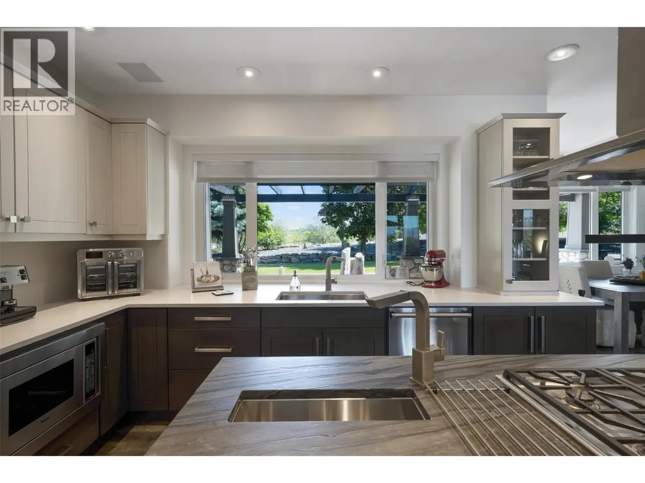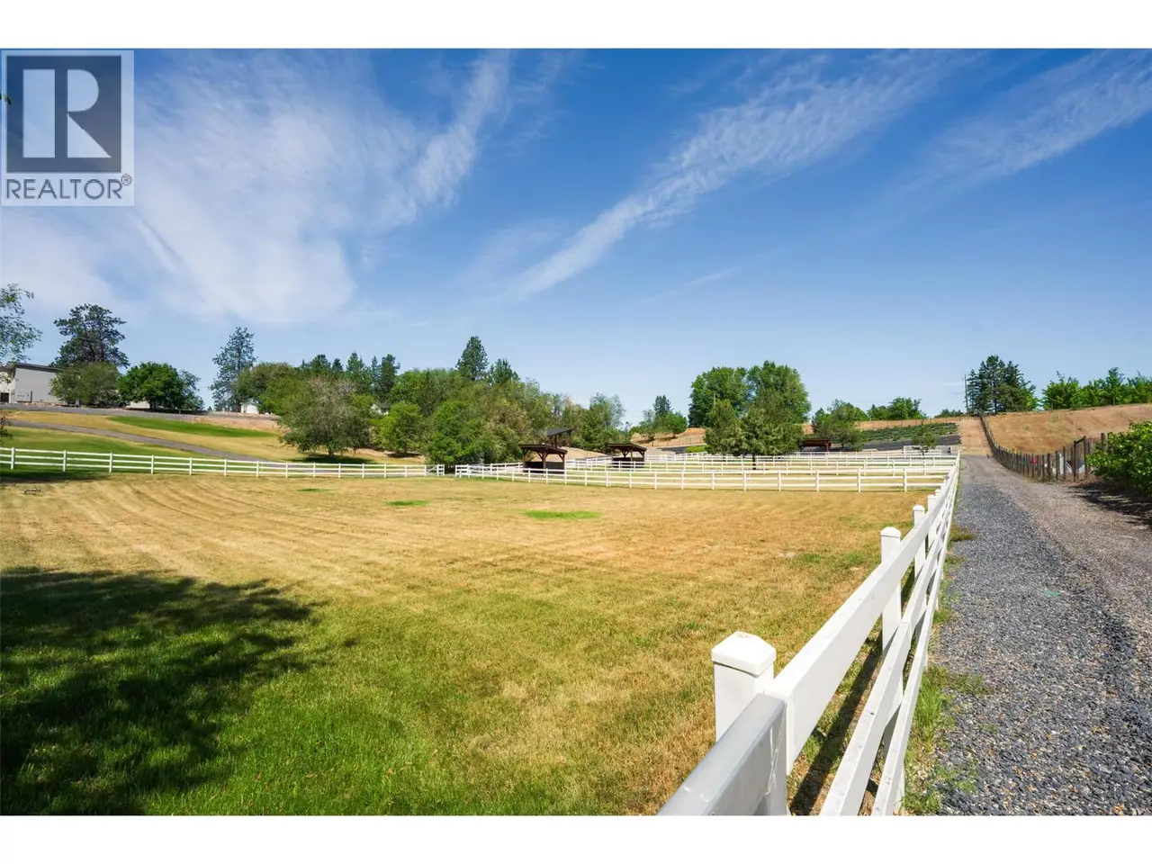 Luxury defined by land, lifestyle and freedom — 9.56 acres in South East Kelowna! A property built for living fully immersed in nature where you can grow your own food, harvest lavender, grapes and honey! A place where family gathers, horses roam and evenings end poolside as the sun sets — all from your private 5,400+ sqft estate overlooking orchards, farmland and the valley below. Extensively updated, the home offers the perfect family floor plan with four bedrooms, five bathrooms, a home office and full basement spread across three levels. Entertain from the kitchen with high-end Stainless Steel appliances, enjoy tons of natural light and retreat to the main-floor primary bedroom with direct access to the backyard oasis. The outdoor living space features a saltwater pool, water fountains, putting green, stamped concrete patio, built-in speakers and stunning west-facing views. In addition to the triple garage, the property includes a detached four-car shop with oversized doors attached to a spacious drive-thru barn with horse bays, wash station and radiant in-floor heating throughout. Enjoy a greenhouse, shelter for hay storage, five horse paddocks, premium fencing, honey apiary, lavender rows, extensive landscaping, security gate, domestic and irrigation water plus endless potential for your agricultural or equestrian vision! All this within 10-15 minutes of Okanagan Lake, award winning golf courses, wineries and amenities. A private sanctuary close to the city— offering space, privacy and the lifestyle to build your legacy!
