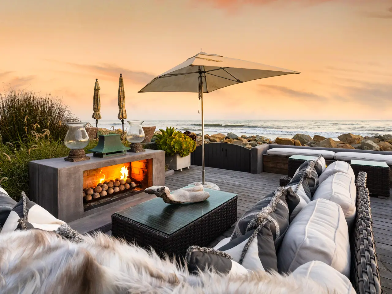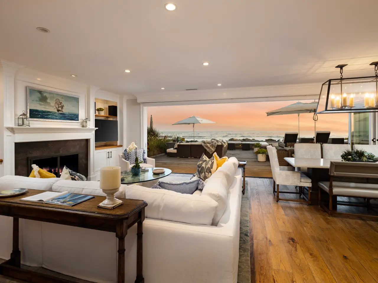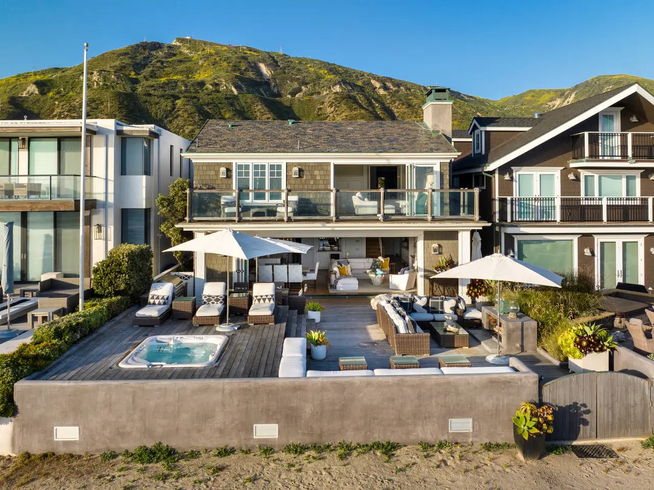 Indulge in the ultimate comfort - seamless beachfront living! Whether you're seeking a serene retreat or an entertainer's paradise, this turnkey, fully-furnished property exceeds all expectations. Flooded with the sights and sounds of the Pacific Ocean, the open floor plan combines a gourmet kitchen, living room, and dining area that continues to a raised deck with a fab fireplace for unforgettable outdoor dining and a sunken hot tub. The primary suite looks to the sea and features a spa-like bathroom and a private terrace overlooking the pristine shores. Two additional bedroom suites & a luxe media room offer the utmost in luxury and comfort. Nestled within the gated Seacliff Beach Colony and effectively built in 2011, you'll enjoy convenient proximity to Montecito, Carpinteria, Ventura and LA.