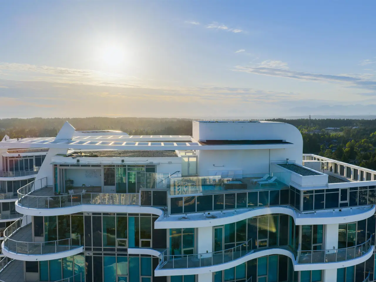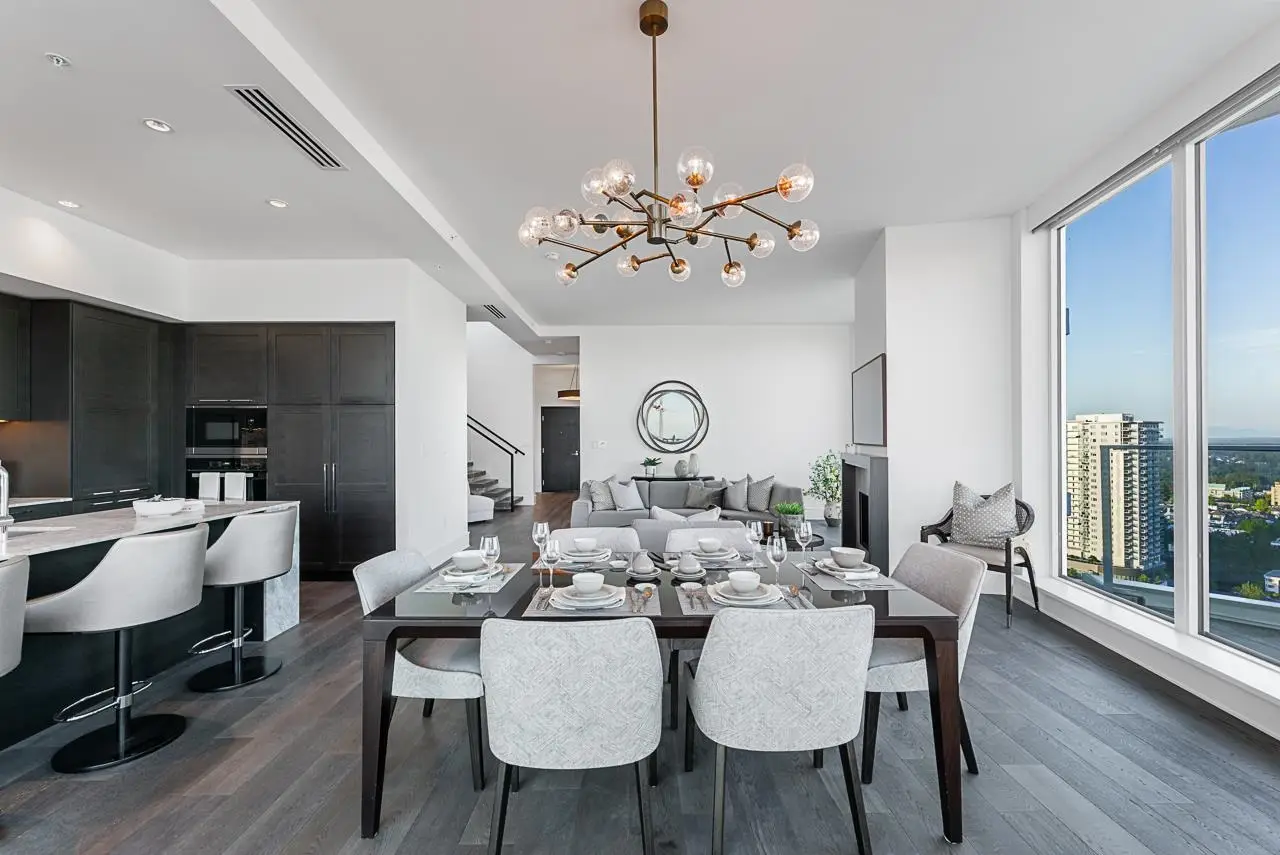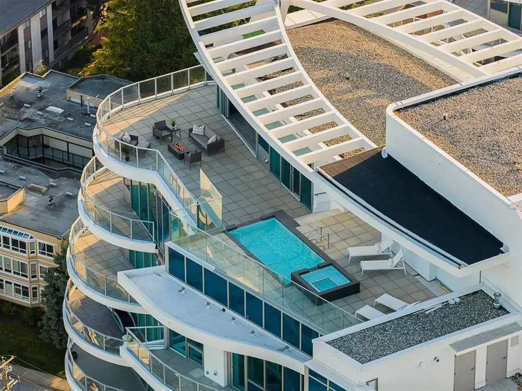 Experience the pinnacle of seaside-urban living in this two-story penthouse at White Rock’s Foster Martin. Stunning 3,800 square foot residence features 4 spacious bedrooms, 5.5 baths, a den, flex area and an upper loft suite. Revel in the panoramic ocean and mountain views, soaring 11’ ceilings, floor-to-ceiling windows, a chef's kitchen with Miele appliances, spa-like baths, and luxurious finishings throughout. Enjoy 2,400 square feet of outdoor living with 4 main floor balconies and a spectacular rooftop deck with cascading waterfall hot tub and pool, fire table area, and outdoor kitchen rough-in. Includes a private triple garage with storage and resort-style amenities: indoor/outdoor pool, sauna/steam room, gym, lounge, games room and concierge. The perfect harmony of luxury, location, and lifestyle!