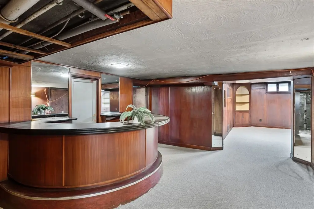 Gracious Tudor home in desired Newton location. Step-down fireplaced living room features high beamed ceilings, arched openings, oversized windows, hardwood floors and flows into an inviting sun room with floor to ceiling windows. Eat-in kitchen offers island, granite counters, bay window, plentiful cabinets and pantry. A spacious formal dining room with beamed ceiling completes this floor. Upstairs features a primary suite with private bath, 3 additional bedrooms, 2 full shared bathrooms and a bedroom/home office with separate entrance. Partially finished basement features a wood bar, play room/media room, laundry, storage and systems. 2 car garage plus parking for 4 more cars in the driveway. Driveway and garage access on Fairmont. Lush yard features a patio and is ideal for BBQ's and relaxation. Welcome home!