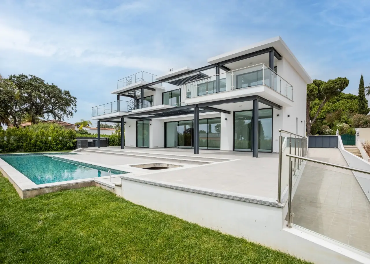 Introducing this sophisticated contemporary 4-bedroom villa, set in the exclusive and tranquil Pine Valley Resort, in Olhos de Água - a privileged location that combines privacy, tranquillity and proximity to the Algarve's main amenities. With a modern design and elegant lines, this property stands out for its refined architecture, high-quality finishes and spacious interiors, which extend harmoniously into a landscaped garden with a private pool, jacuzzi and barbecue area - perfect for enjoying moments with family or friends. On the first floor, there is a bright open-plan social area with a living-dining room and fully equipped kitchen, with direct access to the terrace and outdoor area. On this floor there is also a comfortable suite with built-in closets and a bathroom. The second floor offers three additional suites, all with built-in closets and functional design. The highlight is the roof terrace with panoramic sea views - ideal for relaxing at the end of the day. The basement is a multifunctional space, with the potential to be adapted into a cinema room, gym, spa or additional living area. It also includes a garage for parking up to 3 vehicles. Equipped with comfort and efficiency features, this villa has an air renewal system, underfloor heating and solar panels. The swimming pool includes a dedicated children's area, and the terrace offers stunning views of the Algarve coastline. Located just a few minutes from the prestigious Pine Cliffs Resort and the Algarve's magnificent beaches , the villa also benefits from excellent accessibility to international schools, equestrian centers and golf courses. Vilamoura International College is just 6 minutes away and Olhos de Água Beach is less than 10 minutes away. Faro International Airport is around 35 minutes away. CHARACTERISTICS: Plot Area: 727 m2 | 7 828 sq ft Deployment Area: 150 m2 | 1 615 sq ft Building Area: 290 m2 | 3 122 sq ft Bedrooms: 4 Bathrooms: 5 Garage: 3 Energy efficiency: A+ FEATURES: Luxurious villa 4 bedrooms Pine Valley Resort Modern design Garden Private pool Jacuzzi Terrace Sea view Garage Close to Vilamoura International College Close to the beaches