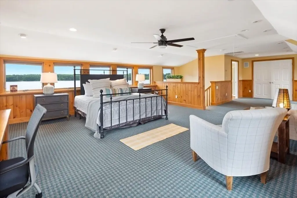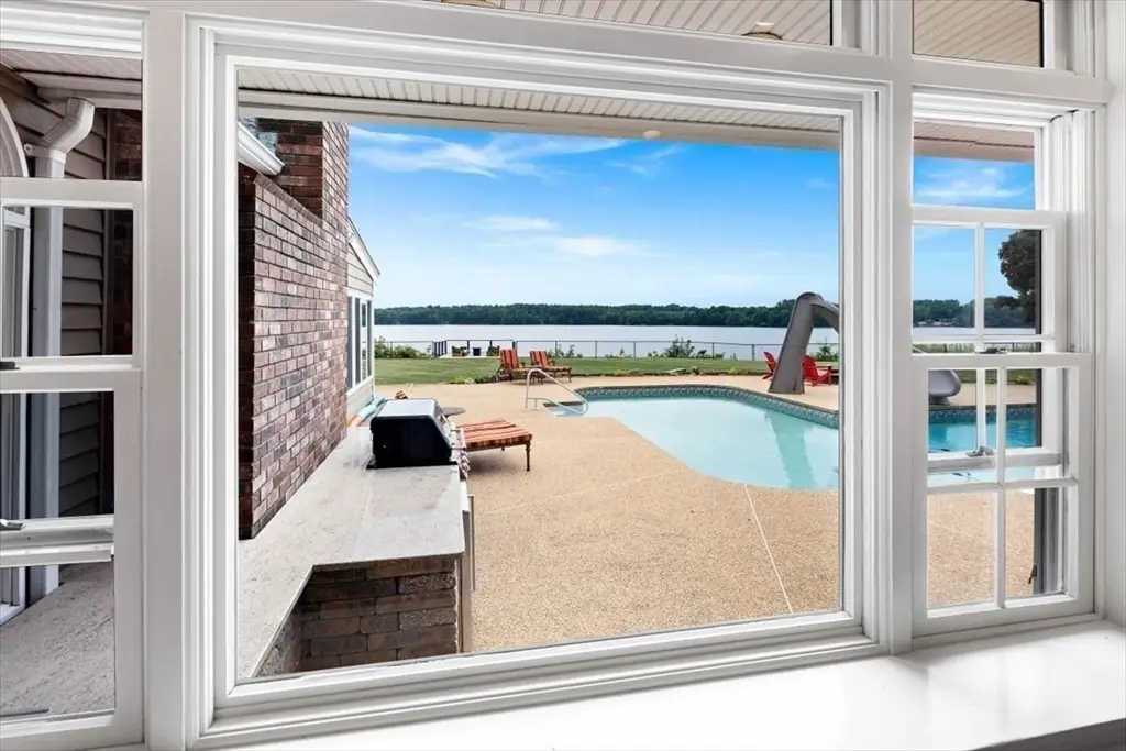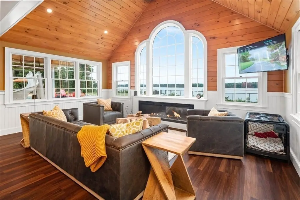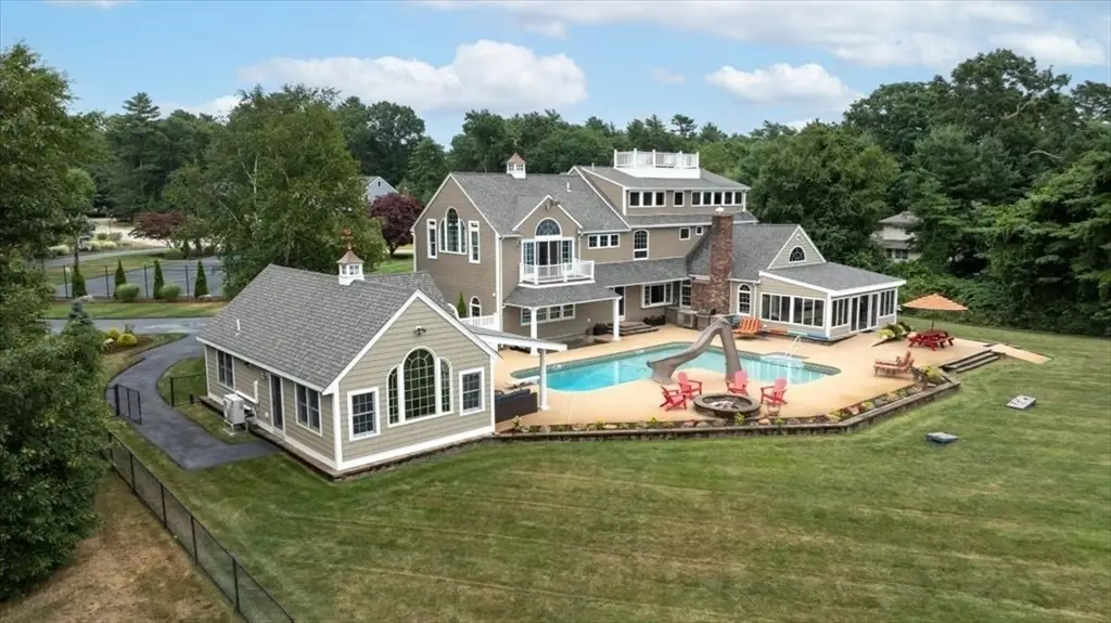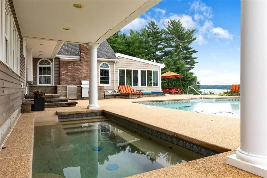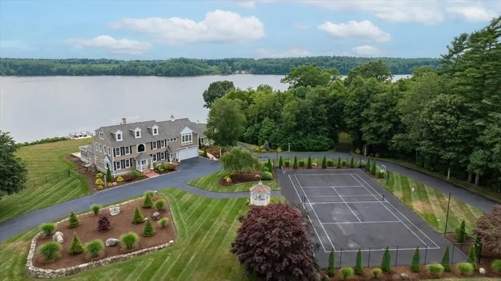 Experience the grandeur of this spectacular, private lakefront estate with panoramic views of Silver Lake. Main house has 6 options for bedrooms, 5 1/2 baths, 4 season room with incredible views. Additional "Pool Cabana" with kitchen, gorgeous living room, full bath, loft & flex space. Extremely well designed granite kitchen will bring out your inner chef with 12 foot island with seating, top of the line appliances. Custom inground L-shaped16X40 heated saltwater pool & heated 7X12 swim spa. Grand main suite with sitting room. Outdoor kitchen with granite top, built-in grill and fridge are brand new. Additional 1/2 bath for pool area. Watch the gorgeous sunset on lakeside deck or private beach. Widow's walk roof top viewing deck. Full tennis/sport court. All situated on a 2.4+ acre double lot. Deep Artesian Well. Hardwoods throughout. Many handicapped accessible features. Property being sold furnished, move right in! Make your appointment to view this south shore gem today!