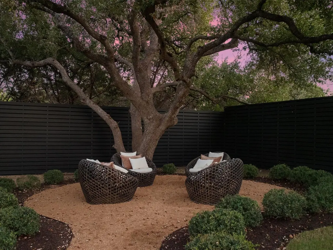 Welcome to 17213 Morning Grove Lane, a beautifully executed single-story custom home built by Eppright Homes in 2023 and situated on a flat, oak-studded lot in the gated community, Madrone Canyon. With thoughtful architecture and timeless Hill Country appeal, this home pairs soft modern finishes with warm natural textures highlighted by wide-plank wood floors, vaulted ceilings with beams, designer lighting, and abundant natural light throughout. An open-concept layout connects the spacious living room, dining area, and gourmet kitchen, where professional-grade appliances and a generous island anchor the heart of the home.Designed for both comfort and flexibility, the home includes four spacious bedrooms each with its own en-suite bath, plus two separate offices, a dedicated pool bath, and a well-appointed four-car garage. The primary suite is a private retreat, featuring serene backyard views, a spa-style bath with a deep soaking tub, oversized walk-in shower, dual vanities, and a beautifully customized closet. Every detail inside has been intentionally selected, from the ambient lighting and wallpaper accents to the automated window shades and bespoke hardware.Out back, a resort-style pool and spa with a negative edge and waterfall feature become the centerpiece of the landscape, surrounded by a large covered patio, raised garden beds, and open lawn shaded by mature oaks. With its calm, elegant style and a layout that blends functionality with ease, 17213 Morning Grove Lane offers refined Hill Country living just minutes from everyday conveniences in both Bee Cave and Lakeway along with top-rated Lake Travis schools.
