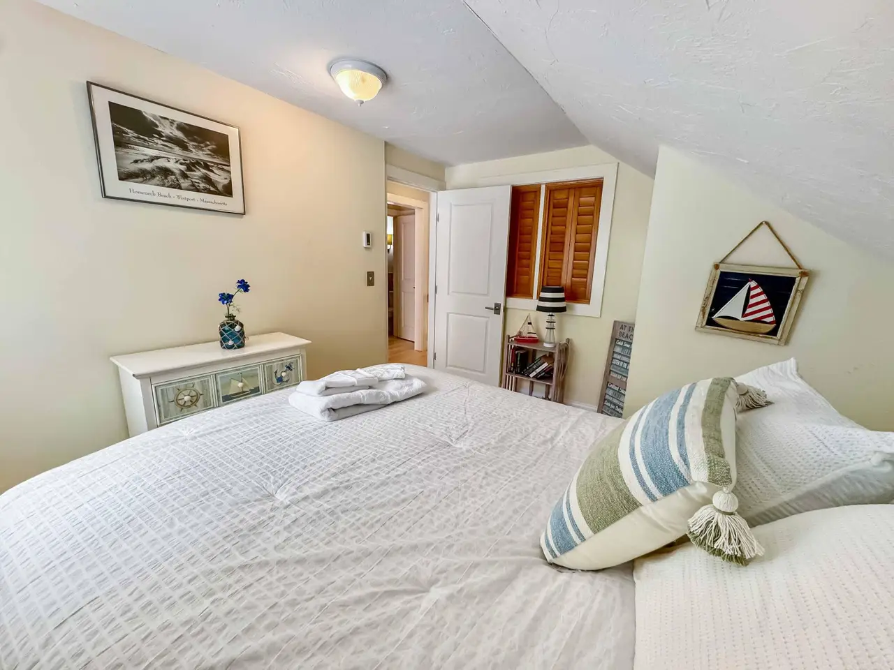 This turnkey Vineyard retreat blends coastal charm with modern comfort, offering a rare combination of location, amenities, and style. A 19-foot heated swim spa with current, and beautiful wooden deck, lets you swim year-round or unwind in the attached Jacuzzi. The property comes fully furnished, making it an effortless purchase, and boasts a strong rental history for investment potential. Recent upgrades include a new roof in 2024, a beautifully renovated tile bath in 2025, new maple floors upstairs, refreshed interiors, and updated landscaping. Inside, the sun-filled kitchen and dining area with cathedral ceilings create an inviting space for gatherings. Stainless appliances, granite countertops and modern finishes make cooking and entertaining a pleasure. Additional benefits include central AC and heat, a primary bedroom suite with private balcony, two first-floor bedrooms and a second full bath offering convenient accessibility, and a town sewer connection for easy expansion to six bedrooms. Unique features, such as a rose-covered trellis, grape vines shading the outdoor shower, and a bluestone fire pit patio, add a peaceful, personal touch. Surrounded by decks, a stone picnic area, and wooded privacy, the property is just a ten-minute bike ride to South Beach or a short trip to Edgartown's shops, restaurants, and historic charm. Morning Glory Farm is only minutes away, offering fresh produce and baked goods. Whether as a year-round residence, vacation getaway, or proven rental property, this home is ready to enjoy from day one.