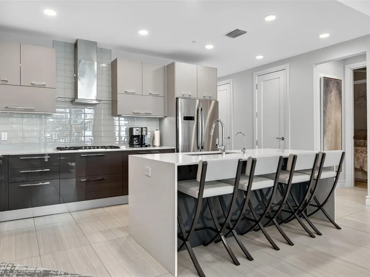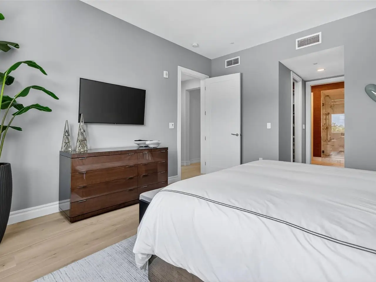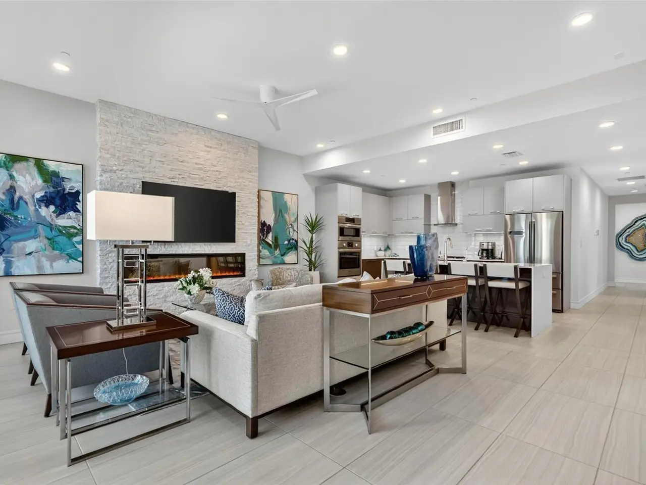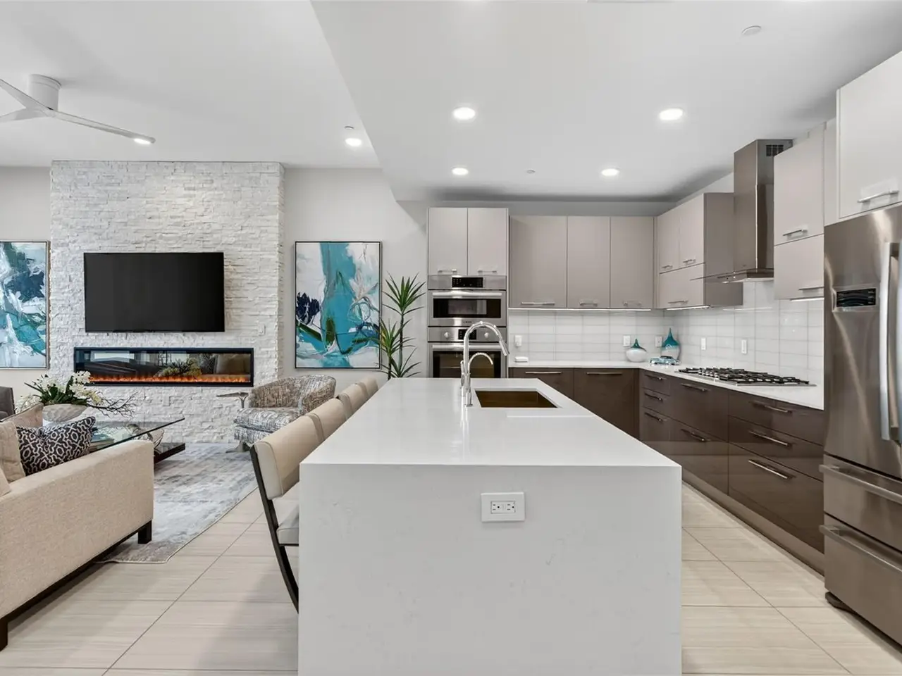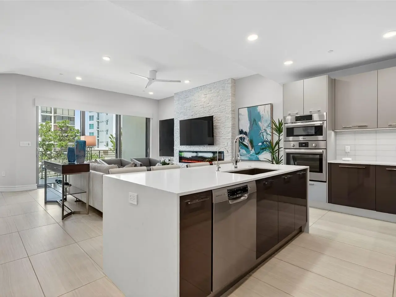 Welcome to Residence 303 at 7 One One Palm, a boutique condominium of only 16 residences located on Palm Avenue in downtown Sarasota. Built in 2019 and designed by award-winning architect Mark Sultana of DSDG, this 3-bedroom, 3-bath home offers 1,815 sq. ft. of modern living in Sarasota's most desirable downtown neighborhood. Beyond the semi-private elevator entry, the open floor plan is filled with natural light and features 10-foot ceilings, floor-to-ceiling sliders, and large-format porcelain tile flooring throughout the main living areas. With luxury wood floors in all bedrooms, the residence combines sleek design with everyday comfort. The gourmet kitchen is equipped with Bosch appliances, including a 5-burner gas cooktop, Cucine Ricci Italian cabinetry, and a large island with Caesarstone waterfall countertops. The owner's suite offers two walk-in closets and a spa-inspired bath with dual vanities, an oversized glass-enclosed shower, and private water closet. Two additional en-suite bedrooms provide flexibility for guests or a home office. A dedicated laundry room includes a full-size washer and dryer, cabinetry, and a utility sink. Residence 303 includes two secured garage parking spaces, bicycle storage, and an air-conditioned storage unit. Smart home technology, Hansgrohe plumbing fixtures, and impact-rated windows and doors add to the convenience and quality. Residents of 7 One One Palm enjoy resort-style amenities, including the Palm Terrace with oversized heated pool, spa, cabanas, firepit, and grills, along with a fitness center, package room, pet-friendly Paw Park, and part-time on site manager. Located just steps from Selby Gardens, Bayfront Park, Marina Jack, and downtown's restaurants and shops - and minutes to Lido Beach and St. Armands Circle, this home offers the ideal combination of privacy, style, and convenience in the heart of Downtown Sarasota.