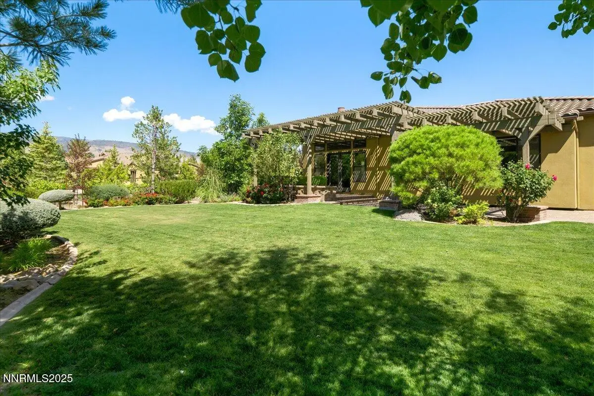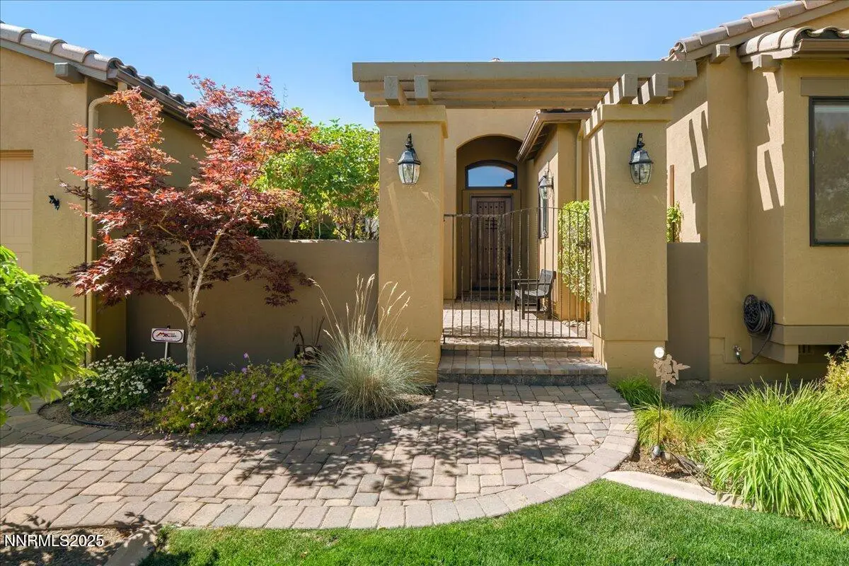 Beautiful Single-Level Home in the Gated Monte Rosa Community. Tucked within the secure gates of Monte Rosa, this thoughtfully designed SINGLE LEVEL home combines quality construction with a bright, open floorplan. Surrounded by mature, park-like landscaping, the property with picturesque views of Mt. Rose and the Sierra Mountains. Enjoy spacious living with tall ceilings, a great room layout perfect for entertaining, and a formal dining room with custom built-ins. The large primary suite features dual walk-in closet. A charming gated front courtyard welcomes you, while the backyard offers a covered pergola, paver patios, and raised garden beds—ideal for relaxing or outdoor dining. Additional features include a three-car garage, paver driveway, and light-filled interiors throughout. Located just oF Mt. Rose Highway, you're minutes from shopping, hiking trails, Mt. Rose Ski Resort, and only 15 minutes to the airport. This well-maintained home offers rare comfort and convenience in one of Reno's most desirable gated communities.