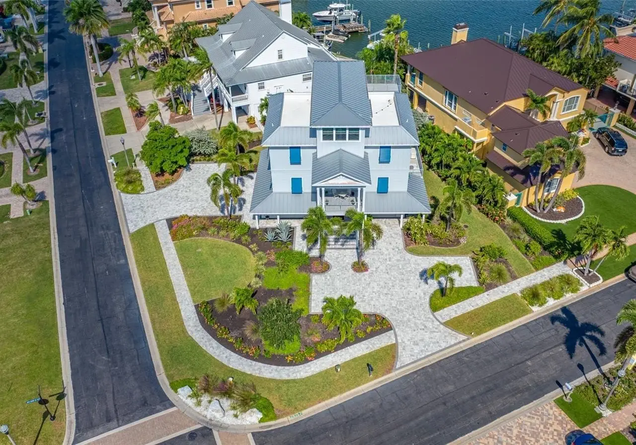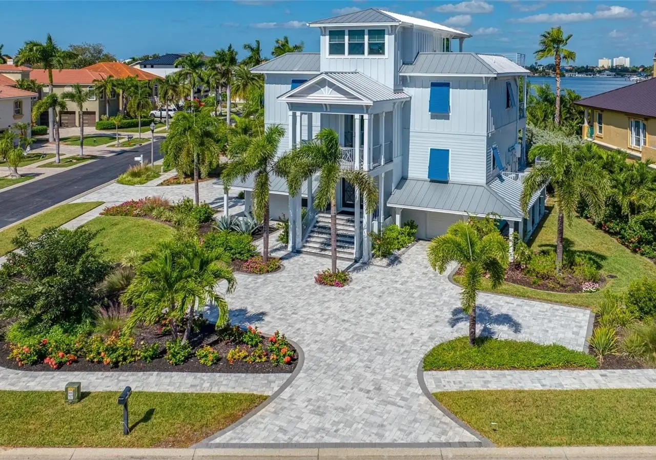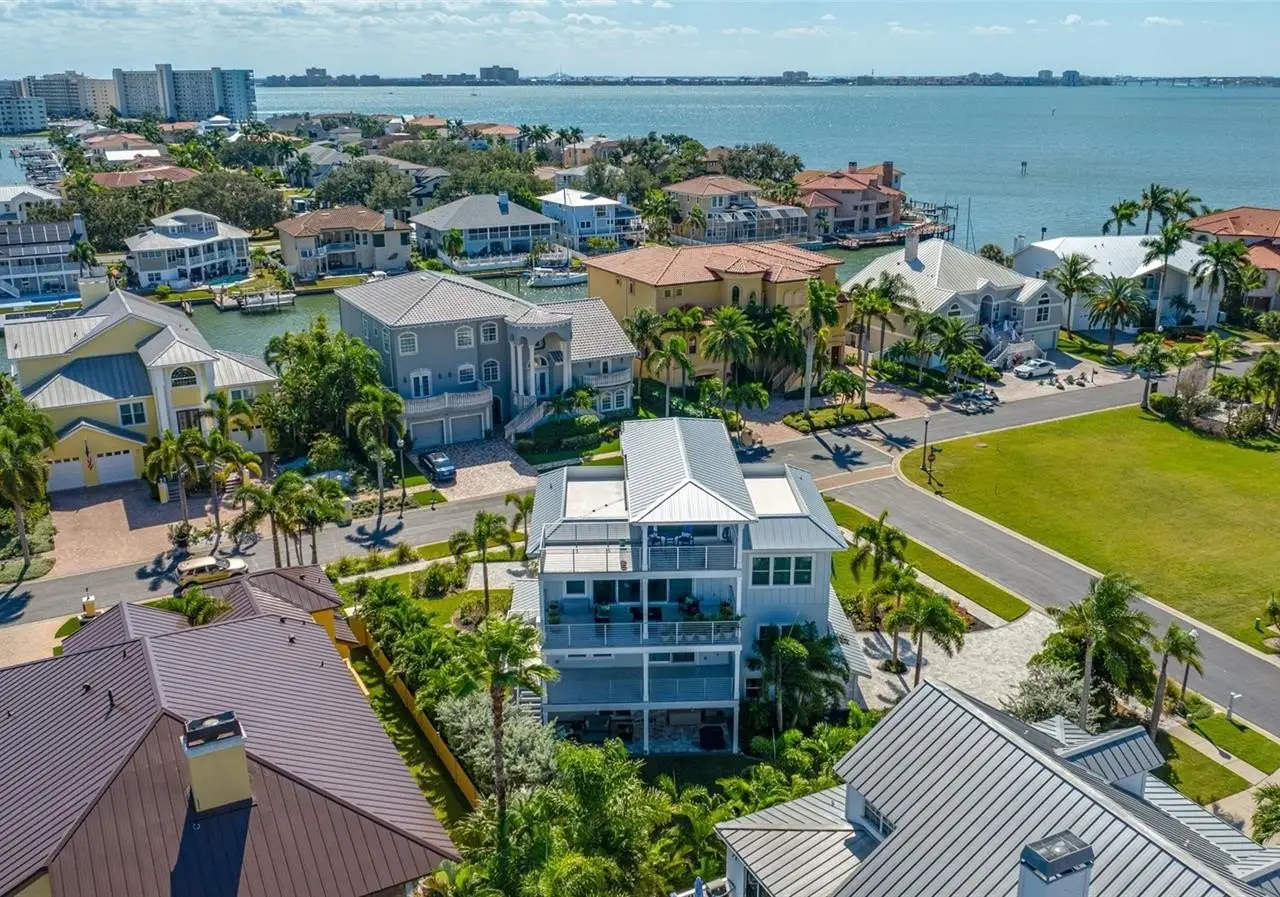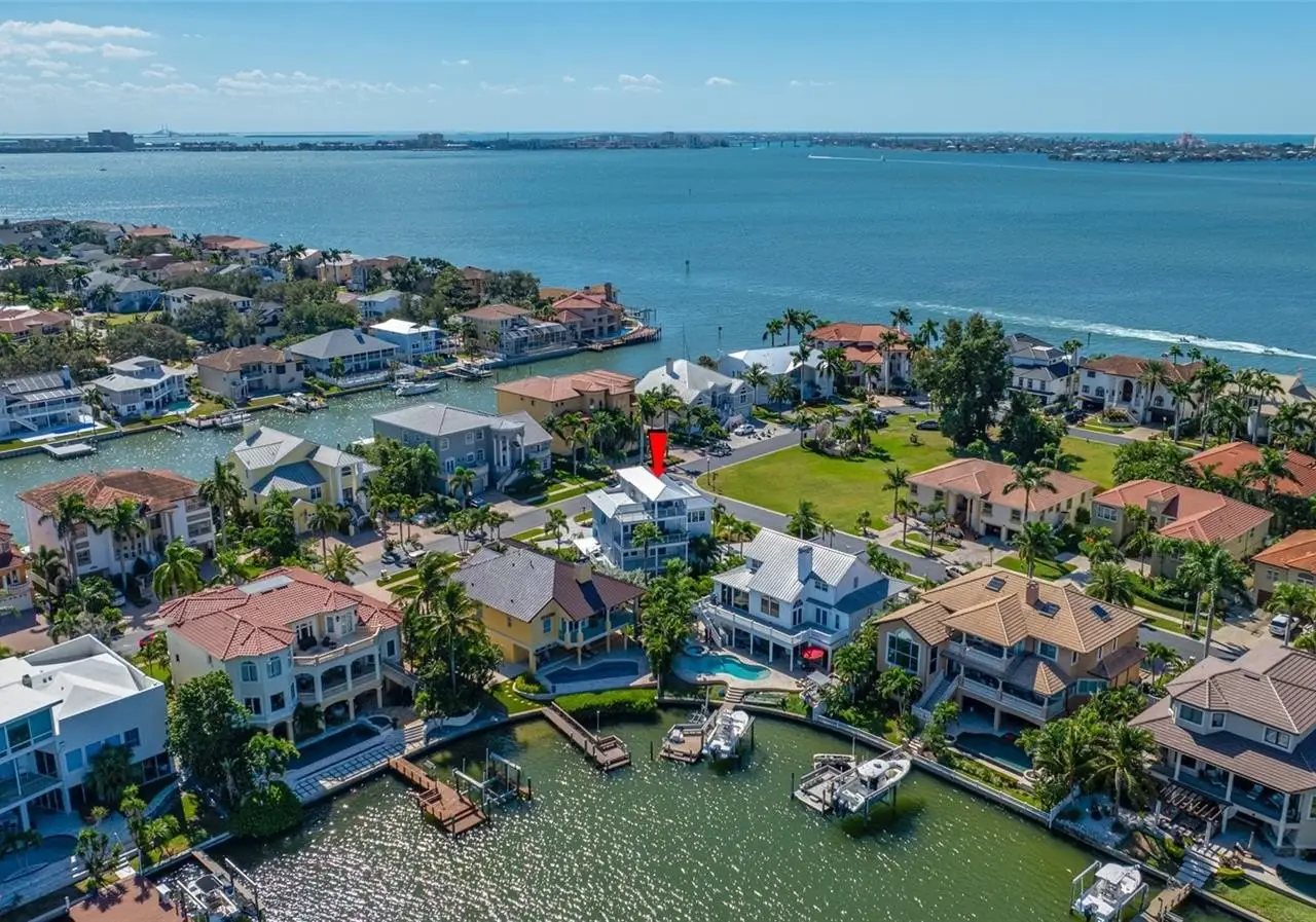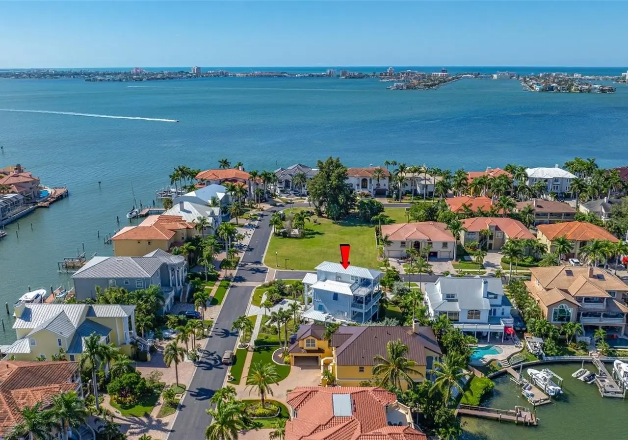 Welcome to this exceptional elevated Key West style 4-bedroom, plus rooftop bonus room, 4-bathroom, 4 car garage custom-built residence with breathtaking views of Boca Ciega Bay, in the prestigious gated Pasadena Yacht & Country Club. The home was completed December 30th 2021 to the highest coastal construction standards and thoughtfully designed to capture the panoramic and coastal views, while offering luxurious living across four levels, which are all serviced by a residential elevator. The grand staircase leads to the main entry with double front doors, setting the tone for the elegance and craftsmanship found throughout. On the first living level, you'll find three spacious bedrooms, including one with its own ensuite, a shared bathroom, a family room or study, and a laundry room. The 2nd living level features a large master suite with ensuite, an open-concept great room with surround sound, dining area, chef’s kitchen with pantry, and a guest bath. Crowning the home is a versatile Cupola on the 3rd level, perfect as an office, guest room, or entertainment area to soak in coastal views, spectacular sunsets, and holiday firework displays. This top-floor retreat is cooled by a dedicated mini-split AC unit. All floors have large balconies. The epoxy-coated garage level accommodates 4 cars plus a golf cart, includes a workshop area, hanging storage shelves, and is pre-wired for EV charging (3 vehicles). This home is packed with high-end features, including but not limited to: York high efficiency, low decibel cooling and heating pump, Lorex security cameras system, all house generator 22kw Generac (propane), 4 level residential elevator, all custom build wood cabinetry with Quartz countertops, automatic rainbird irrigation system via inground well, smart appliances, 250 gl inground propane tank and so much more. The home sustained NO flood damage during the 2024 hurricanes, underscoring its superior construction and resilience. Located within the serene, park-like Pasadena Yacht & Country Club, residents enjoy exclusive access to a world-class golf course, junior Olympic-sized pool, poolside bar/cafe, clubhouse restaurant, fitness center, tennis & pickleball courts, and private marina with boat slips (membership required). The charming coastal town of Gulfport is just a 15-minute walk away, offering boutique shopping, dining, and a popular weekly market. The home also enjoys convenient access to I-275, connecting you quickly to Tampa or Sarasota airports, Fort De Soto National Park, and the pristine beaches of St. Pete, Madeira, and Clearwater. This is more than a home, it's a lifestyle of coastal luxury, comfort, and community, perfect for families, retirees, and anyone seeking the best of Florida living.