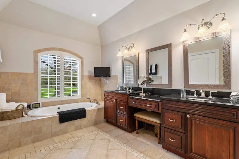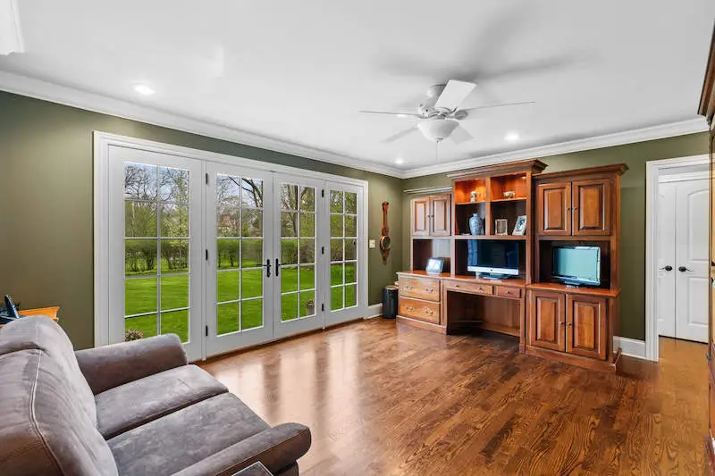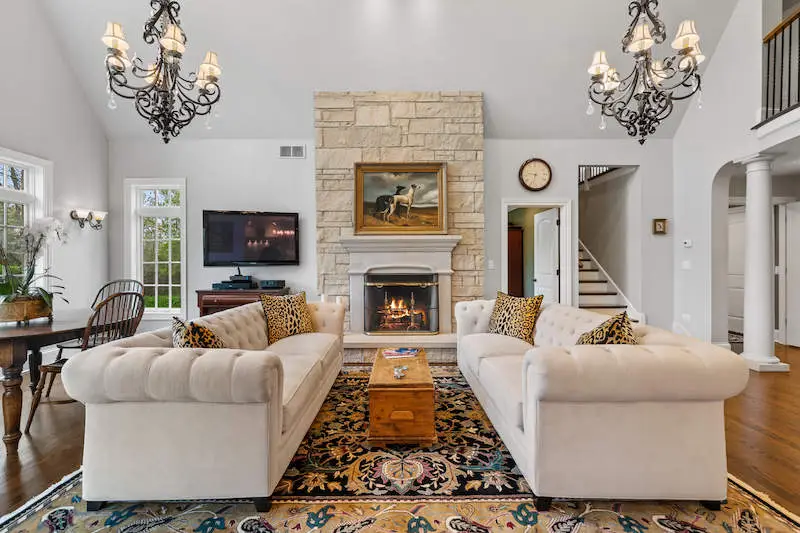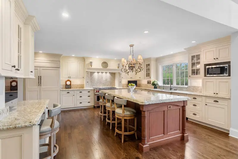 Gorgeous brand new DaVinci Synthetic slate roof!! A circular driveway welcomes you to this stunning, impeccably maintained home, offering exceptional curb appeal in a serene cul-de-sac setting. Fully renovated in 2009, this spacious residence is designed for modern family living, with ample room to live, work, and play. The gourmet chef's kitchen is a showstopper, complete with custom cabinetry, granite countertops, top-of-the-line stainless steel appliances, an oversized island with breakfast bar, and a convenient hot water dispenser. The kitchen seamlessly opens to a spectacular family room with a soaring cathedral ceiling, remote-controlled gas fireplace, expansive windows, and French doors leading to a beautiful bluestone patio. The formal dining room features two elegant chandeliers and plantation shutters and connects to a well-appointed butler's pantry with a SubZero beverage fridge-perfect for entertaining. The living room exudes charm with its gas log fireplace, two gorgeous chandeliers, and matching plantation shutters. A spacious first-floor office with an en-suite bathroom can serve as an additional bedroom and includes French doors opening to the backyard. The luxurious first-floor primary suite features tall ceilings, two custom walk-in closets, French doors to the patio, and a spa-like bathroom with heated floors, a double vanity, a Koehler cast-iron jetted tub, and a large walk-in shower with seating. Upstairs, you'll find four generous family bedrooms, three full bathrooms, and a convenient second-floor laundry room. The expansive lower level offers two recreation rooms, an exercise room, a playroom, a storage room, a sixth bedroom, a full bath, and two gas log fireplaces. Additional features include a main-level mudroom with a second laundry area and access to two separate 2.5-car attached garages with epoxy floors and 240V outlets-ideal for electric vehicle charging. Situated on a beautifully landscaped 1.14-acre lot, this home offers privacy, elegance, and functionality-all just minutes from downtown and top-rated schools. Truly a must-see!