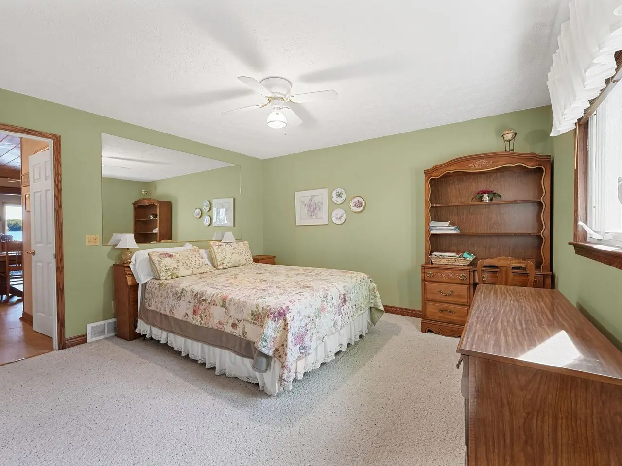 An entertainer's dream! This home boasting over 3,600 square feet with private, direct, level frontage on Green Lake has room for all of your family and friends. Gorgeous wood floors invite you into the warm living room with stunning lake views, and a two-sided fireplace to keep you warm during the cooler months. Open the double french doors to the expansive wrap-around deck to bring the outside in, and increase your spacious living area even further! On the other side of the fireplace is a large dining room with enough space for a huge table - plenty of room for everyone during the holidays. The kitchen is conveniently located a few steps away, and even has a second cooktop and island for when you have multiple chefs at work, or just want to be closer to your guests. The main floor is rounded out with a bedroom and ensuite bathroom, powder room, and fabulous sun porch. Upstairs you'll find a massive primary bedroom with the best lake views in the house, cozy gas fireplace, and attached office. Two additional bedrooms, a bathroom with jetted tub and shower, and laundry room make the second floor just as spacious as the first. Between the house and the garage are 2 finished and heated bonus rooms - One is a multi-purpose room great for crafts and games, and the other has closets galore and has been used as a bunk room for additional guests. You will never run out of storage space in this extra-deep attached and insulated 3-car garage! The tall doors allow storage for campers, boats, and seasonal toys, plus there is easy access via stairs to a large attic area. The brand new roof and newer furnace will ease your mind and save you money. Start planning for next summer now, and schedule your showing today!