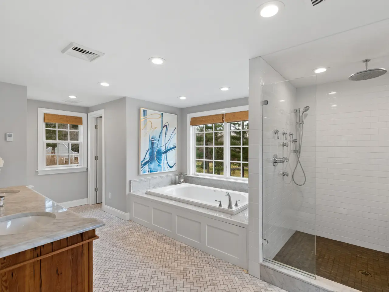 Rare offering on sought-after Tanner Marsh Road! This elegant home stuns from the street with its stone walls, circular driveway, and professionally landscaped grounds. Designed for entertaining, its rooms offer exceptional grace and flow. Three fireplaces, chef's kitchen with Viking appliances, first-floor guest suite with bath and private entrance - this home has it all! Master bedroom with tranquil sitting area, extravagant dressing room, and spa-like marble bath. Four more bedrooms, office, bath, and laundry upstairs. Then, step into the backyard to your own private oasis, an entertainer's dream. Heated in-ground saltwater pool surrounded by mature trees. Full outdoor kitchen with granite island, gas fire-pit, hot tub, and dining/lounge areas under new Azek pergola. Perfectly located near the scenic trails of East River Preserve and just minutes to I-95, the award-winning Guilford Green and Jacobs Beach, this rare gem is move-in ready and waiting to welcome you home.