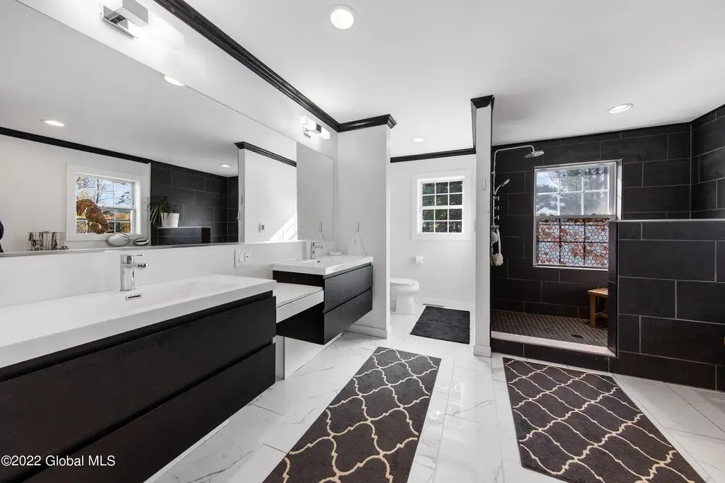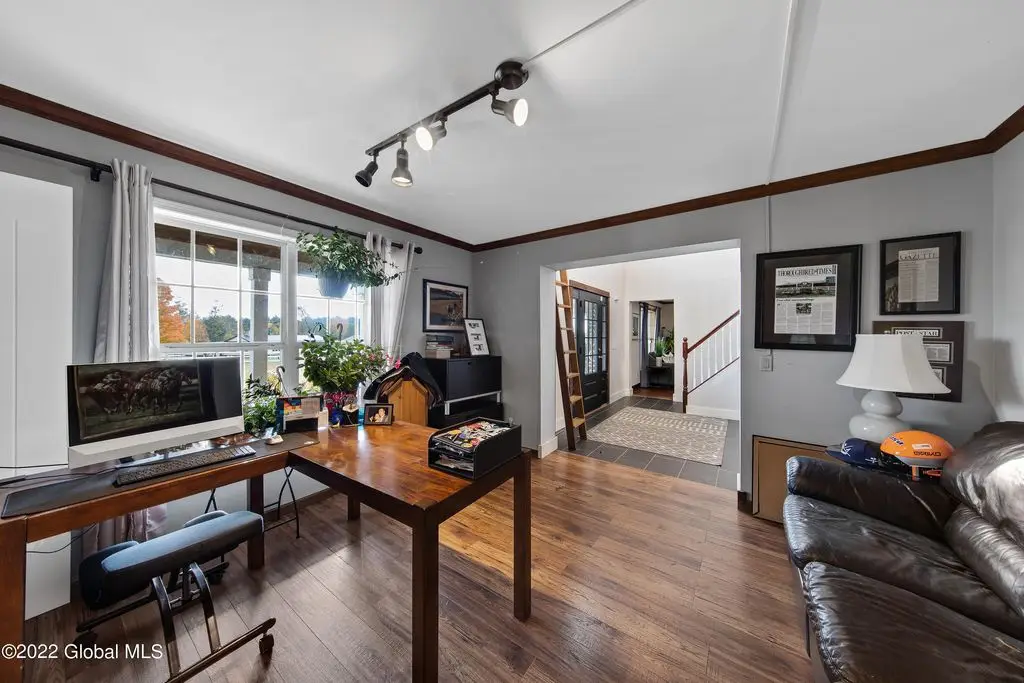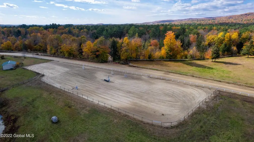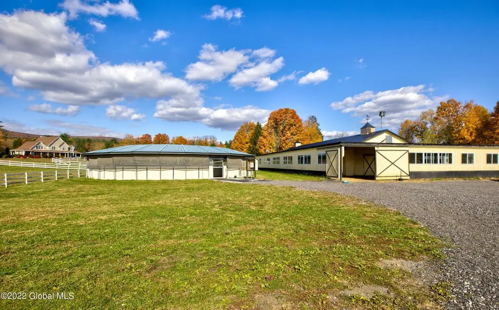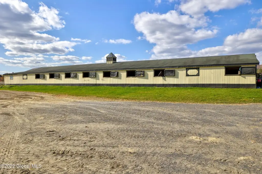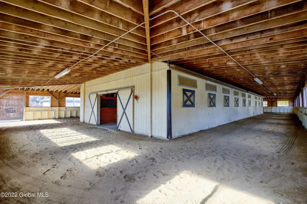 This pristine 60+ acre equine facility boasts 2 barns, 50 stalls, a 5/8-mile training track with starting gate, multiple arenas, enclosed exercise area, and 10 safe pastures with run-in sheds. Additionally, there are 2 residences, including a luxury 4,700 sq/ft farmhouse with 4 beds/2.5 baths, red oak floors, stainless appliances, and a wood-burning fireplace. Enjoy spa-like comforts in the master en-suite with radiant floor heating. Sandy loam soil with excellent drainage, and stunning views complement this oasis. Conveniently located just 15 minutes from downtown, with access to Saratoga Schools, this unparalleled property offers an ultimate equestrian lifestyle in a setting of unparalleled beauty and tranquility.