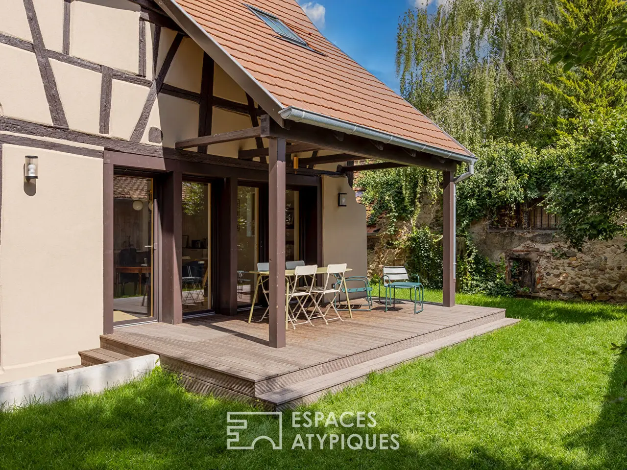 In the heart of a medieval village, just ten minutes from Colmar and close to shops, schools and amenities, this former 18th-century winegrower's house, built on 4 acres of land, has a unique charm. Combining the character of the old with the modernity of a high-end renovation carried out in 2024, it offers 215 m2 of living space, plus a 40 m2 converted barn, and provides a rare living environment that combines elegance, contemporary comfort and high-quality features.From the moment you enter, you can feel the impact of the architect's renovation: generous volumes, noble materials and bespoke design on all floors create a refined atmosphere. The ground floor is organised around a light-filled extension, opening onto a split-level living room with a wood-burning stove, creating a warm and welcoming atmosphere. The adjoining kitchen/dining room is extended by a large bay window opening onto the south-facing terrace and the outdoors. A pantry concealed behind an invisible door allows for optimal organisation while preserving the aesthetics of the space. A separate laundry room, also hidden by an invisible door, completes this level. Above this space, a games room has been created, accessed by an elegant wooden staircase, offering a convivial and versatile space for young and old alike.The first floor features a master suite with a cathedral ceiling, dressing room, shower room and integrated air conditioning, as well as two further bedrooms, also with air conditioning, sharing a bathroom and a spacious hallway. The top floor offers an additional bedroom, a study and a windowless room that could be converted into a dressing room, offering great flexibility of use.Finally, a separate 40 m2 barn completes the property: the ground floor has a cosy living area with a fitted kitchen, while the first floor has a comfortable bedroom. With its own independent electric heating system, this outbuilding is ideal for creating a guest house to generate rental income or a self-contained accommodation for family and friends.The exterior extends the interior comfort with a terrace ideal for enjoying sunny days, a wooded garden and a private courtyard that can accommodate three vehicles, hidden behind a motorised gate. A garden shed and boiler room complete this perfectly designed property. Energy efficiency is ensured by a heat pump, integrated air conditioning and a wood-burning stove. The immediate surroundings, marked by the authentic charm of Turckheim, appeal with their heritage, vineyards and proximity to Colmar, which is easily accessible in just a few minutes.This exceptional property appeals with its unusual identity and rare character on the Alsatian property market. A cross between a characterful winegrower's house and a contemporary renovation, it is a unique opportunity for those looking for a high-end property combining authenticity and modern comfort in the heart of a sought-after living environment.3 parking spacesShops 5 minutes away by carSchools 3 minutes away on footBus and train station 2 minutes away on footMotorway 10 km awayREF. 1630Additional information* 10 rooms* 5 bedrooms* 1 bathroom* 1 bathroom* 2 floors in the building* Outdoor space : 405 SQM* Parking : 3 parking spaces* Property tax : 505 €Energy Performance CertificatePrimary energy consumptiona : 59 kWh/m2.yearHigh performance housing*59kWh/m2.year1*kg CO2/m2.yearA*B*C*D*E*F*GExtremely poor housing performance* Of which greenhouse gas emissionsa : 1 kg CO2/m2.yearLow CO2 emissions*1kg CO2/m2.yearA*B*C*D*