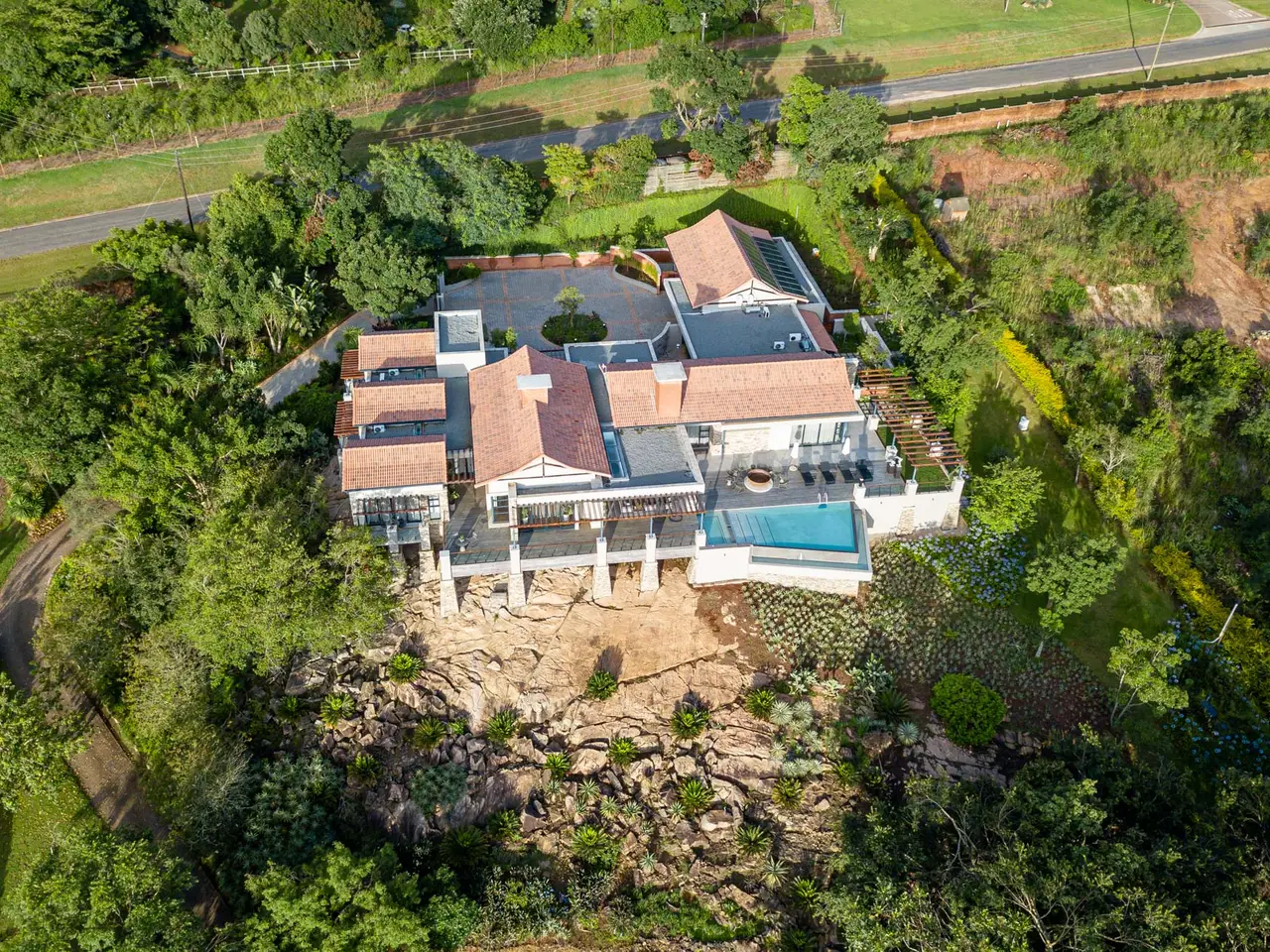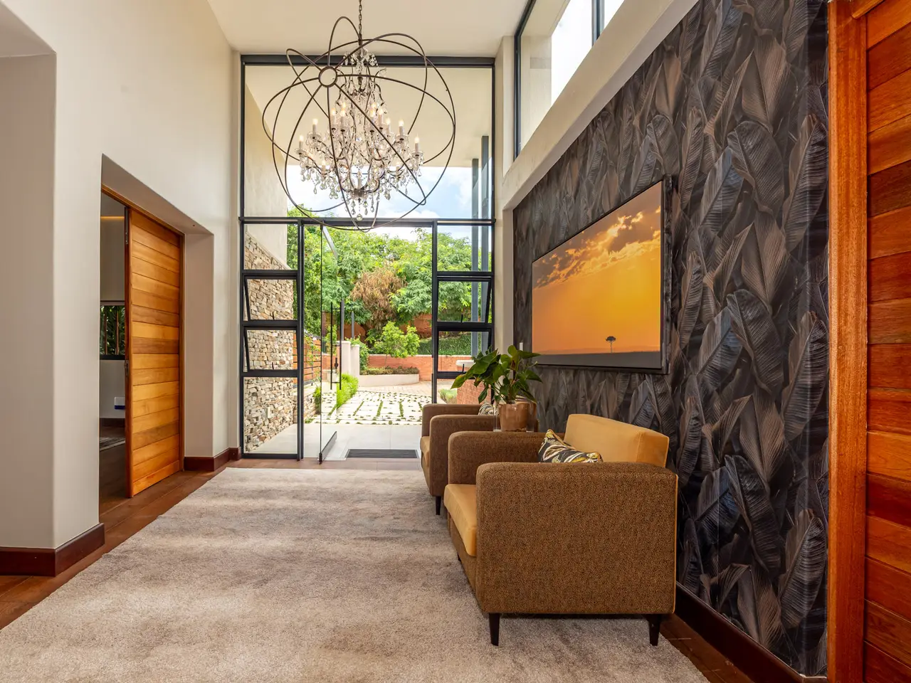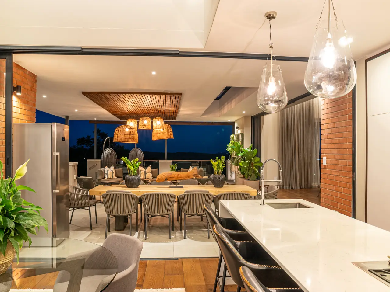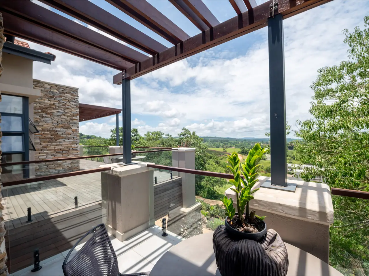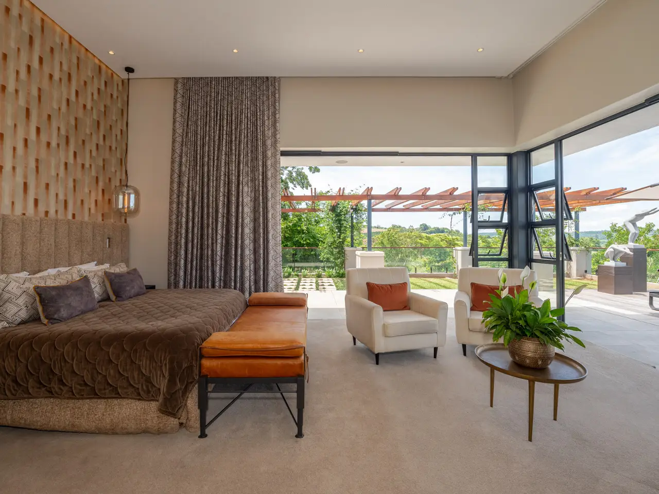 This extraordinary property is the definition of luxury, boasting unparalleled features that redefine the standard of high-end living. Situated in an exclusive estate, this top-of-the-line residence offers an exceptional blend of modern design with breathtaking views over the rolling hills of the Lowveld. This home is sold as fully furnished, featuring designer curated furniture, curtains and artwork. Luxury hospitality standard food production equipment, cutlery, crockery and glassware. The heart of the home is the open-plan, double volume lounge and dining area, featuring a central fireplace that elegantly heats both spaces. The lounge has stack doors that open onto the semi-covered patio, equipped with a built-in braai. This space provides outdoor living par excellence - offering stunning views over the dual-zone heated rim-flow pool with seated jet spa and beyond. The “gallery style show” kitchen is super-modern, complete with granite countertops, full premium luxury cuisine range including multi burner gas hob, double induction cool touch flat top, two electric ovens, a built-in microwave, sophisticated eye level barista station, 160 bottle multi-zone glass fronted pro wine cooler and soft-touch, high-gloss cupboards that are not only sleek but also fingerprint-proof. The kitchen seamlessly integrates with a walk-in pantry, a separate spacious, fully automated scullery and laundry and is accompanied by a dining space and TV lounge area adorned with a fireplace that adds warmth and charm. Premium and fully customisable audio visual, app integrated system exists throughout the home ensuring any entertainment desire is elegantly surpassed. This prestigious home features four spacious bedrooms, each with its own en-suite bathroom exuding elegance and functionality. The master bedroom is a sanctuary of comfort, with two stack doors leading to the patio and a luxurious en-suite bathroom with a double shower and vanity. All bathrooms have sophisticated Italian marble dressed feature, modern free-standing bath, heated towel rails, bidets and rainfall showers. Meticulously maintained and in excellent condition, the residence is a testament to quality craftsmanship and attention to detail. The interior is adorned with solid meranti doors, also equipped with state-of-the-art amenities including electric curtains and industrial housekeeping equipment. There is a state-of-the-art security system. Triple bay tiled garage, including an extra high automatic access door. The environmentally conscious will appreciate the carefully engineered clean power - 21 solar panels, 6 Sunsynk inverters, 44kw Kohler generator and 4 x 10,000L water storage tanks with a water filtration system. This home further boasts two furnished staff quarters, equipped with 2 bathrooms and a common kitchen. The property also includes a 1ha stand adjacent to the primary residence, complete with its own borehole supplying 4K litre per hour. A John Deere ride-on lawn mower keeps the expansive lawns well manicured. Landscaping is both mature and professionally designed, automatically irrigated and provides the homeowner with a stunning garden that offers space, intrigue, peace and privacy. This is a home that you just have to experience in person – arrange for a viewing today. Don't miss the opportunity to call this unparalleled residence your own.