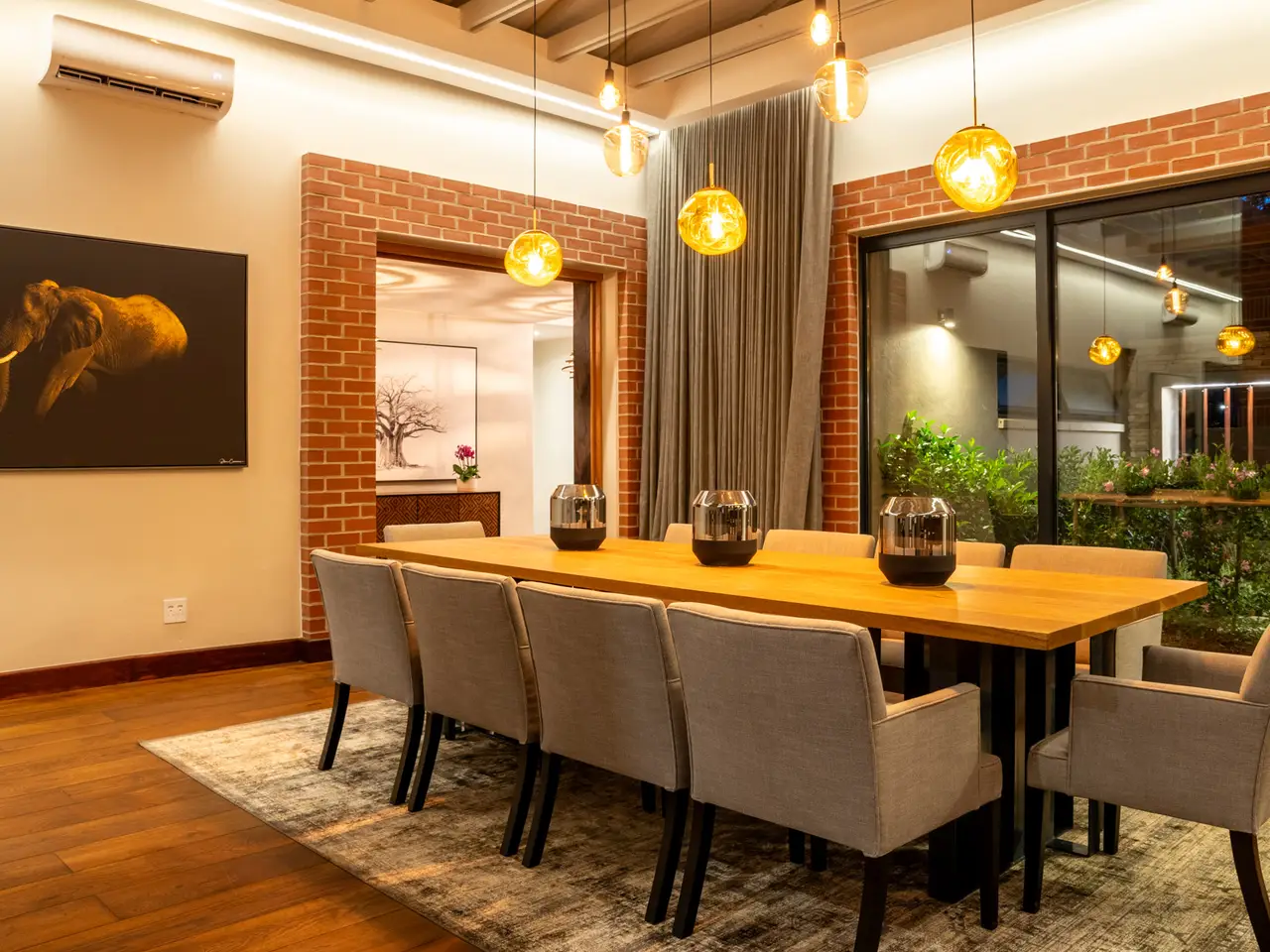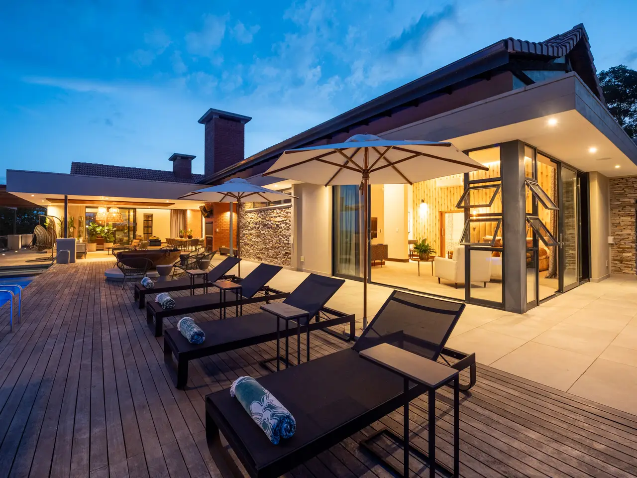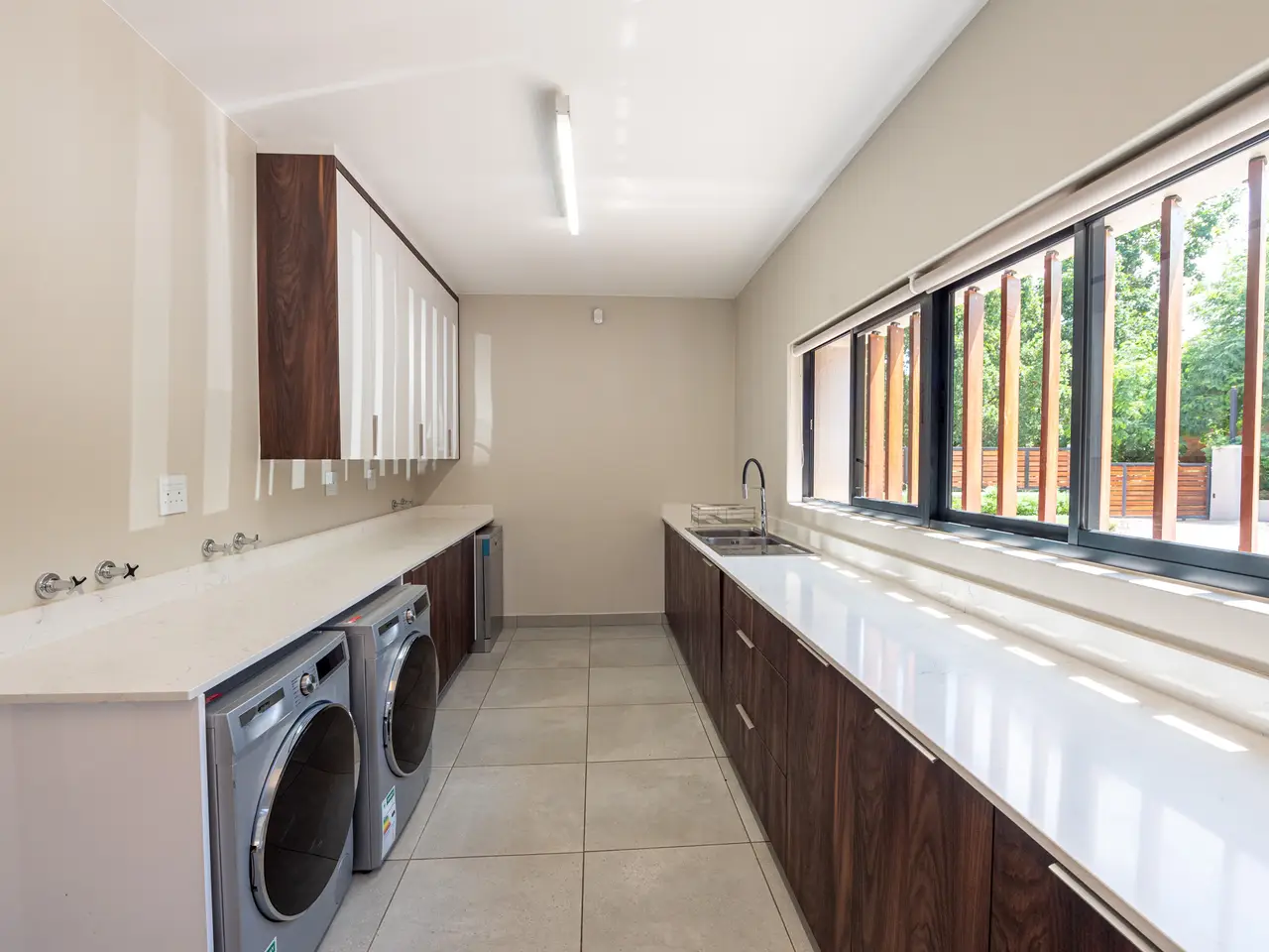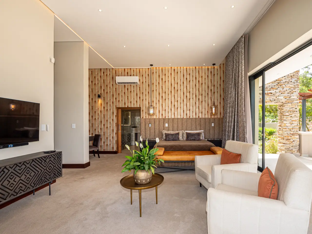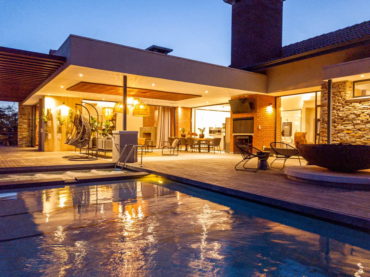 This extraordinary property is the definition of luxury, boasting unparalleled features that redefine the standard of high-end living. Situated in an exclusive estate, this top-of-the-line residence offers an exceptional blend of modern design with breathtaking views over the rolling hills of the Lowveld. This home is sold as fully furnished, featuring designer curated furniture, curtains and artwork. Luxury hospitality standard food production equipment, cutlery, crockery and glassware. The heart of the home is the open-plan, double volume lounge and dining area, featuring a central fireplace that elegantly heats both spaces. The lounge has stack doors that open onto the semi-covered patio, equipped with a built-in braai. This space provides outdoor living par excellence - offering stunning views over the dual-zone heated rim-flow pool with seated jet spa and beyond. The “gallery style show” kitchen is super-modern, complete with granite countertops, full premium luxury cuisine range including multi burner gas hob, double induction cool touch flat top, two electric ovens, a built-in microwave, sophisticated eye level barista station, 160 bottle multi-zone glass fronted pro wine cooler and soft-touch, high-gloss cupboards that are not only sleek but also fingerprint-proof. The kitchen seamlessly integrates with a walk-in pantry, a separate spacious, fully automated scullery and laundry and is accompanied by a dining space and TV lounge area adorned with a fireplace that adds warmth and charm. Premium and fully customisable audio visual, app integrated system exists throughout the home ensuring any entertainment desire is elegantly surpassed. This prestigious home features four spacious bedrooms, each with its own en-suite bathroom exuding elegance and functionality. The master bedroom is a sanctuary of comfort, with two stack doors leading to the patio and a luxurious en-suite bathroom with a double shower and vanity. All bathrooms have sophisticated Italian marble dressed feature, modern free-standing bath, heated towel rails, bidets and rainfall showers. Meticulously maintained and in excellent condition, the residence is a testament to quality craftsmanship and attention to detail. The interior is adorned with solid meranti doors, also equipped with state-of-the-art amenities including electric curtains and industrial housekeeping equipment. There is a state-of-the-art security system. Triple bay tiled garage, including an extra high automatic access door. The environmentally conscious will appreciate the carefully engineered clean power - 21 solar panels, 6 Sunsynk inverters, 44kw Kohler generator and 4 x 10,000L water storage tanks with a water filtration system. This home further boasts two furnished staff quarters, equipped with 2 bathrooms and a common kitchen. The property also includes a 1ha stand adjacent to the primary residence, complete with its own borehole supplying 4K litre per hour. A John Deere ride-on lawn mower keeps the expansive lawns well manicured. Landscaping is both mature and professionally designed, automatically irrigated and provides the homeowner with a stunning garden that offers space, intrigue, peace and privacy. This is a home that you just have to experience in person – arrange for a viewing today. Don't miss the opportunity to call this unparalleled residence your own.