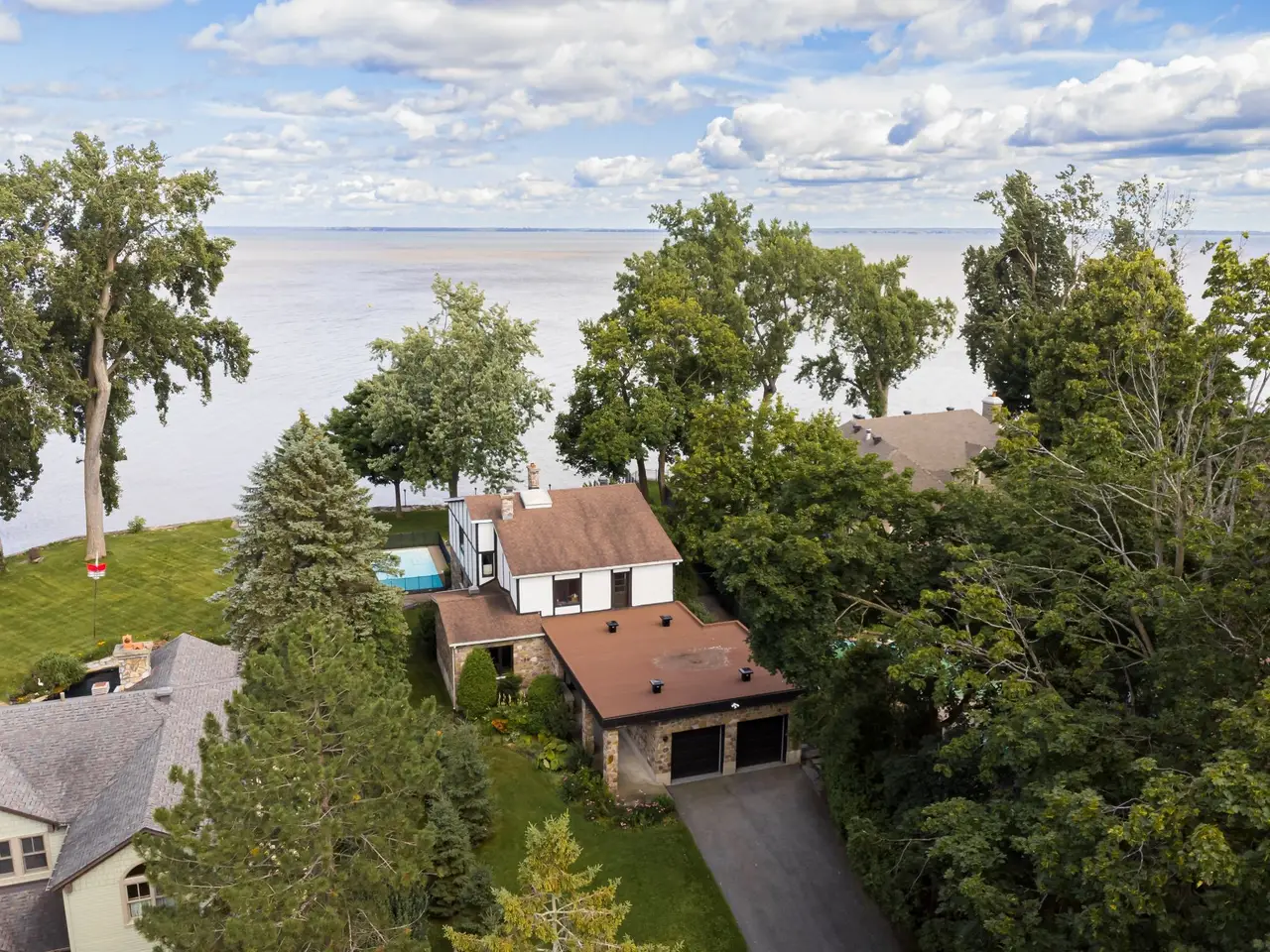 Design your dream home on this prestigious waterfront property on the iconic Thompson Point. Situated in the highly sought-after Thompson Point, this elegant executive cottage boasts over 6,500 square feet of living space on an impressive 24,670 square foot waterfront lot, offering 95 feet of frontage along the picturesque shores of Lake Saint-Louis.