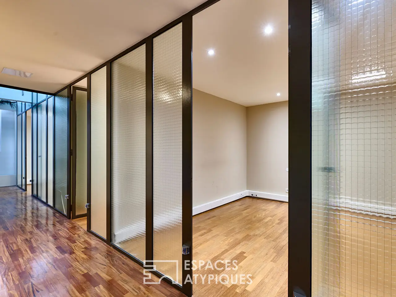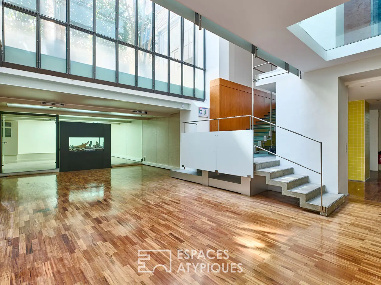 Arty loft with exceptional volumes of 325m2 in a former wallpaper factory in the heart of the Saint-Martin Market. A large entrance and its period freight elevator set the tone for this unique layout: space in an industrial spirit. A walkway leads to the first two bedrooms with a dressing room preceding a living room overlooking the living room. A glass and concrete staircase leads to a 150m2 reception space lit by a beautiful glass roof with a 7.30m ceiling height. This space accommodates the living room, a lounge with video projection and access to the relaxation area with swimming pool/jacuzzi and counter-current swimming. A fitted kitchen, a pantry and a dining room complete the whole. The level is completed by two additional bedrooms and a shower room. A place to live, work and receive at the same time, this loft with quality services benefits from commercial status. Although subject to the status of co-ownership. Metro: Strasbourg-Saint-Denis, Jacques Bonsergent or Republique. REF. 11005 Additional information * 7 rooms * 4 bedrooms * 1 bathroom * 6 floors in the building * 19 co-ownership lots * Annual co-ownership fees : 2 800 € * Property tax : 7 239 € * Proceeding : Non Energy Performance Certificate EPC blank or in progress Agency fees The fees include VAT and are payable by the vendor