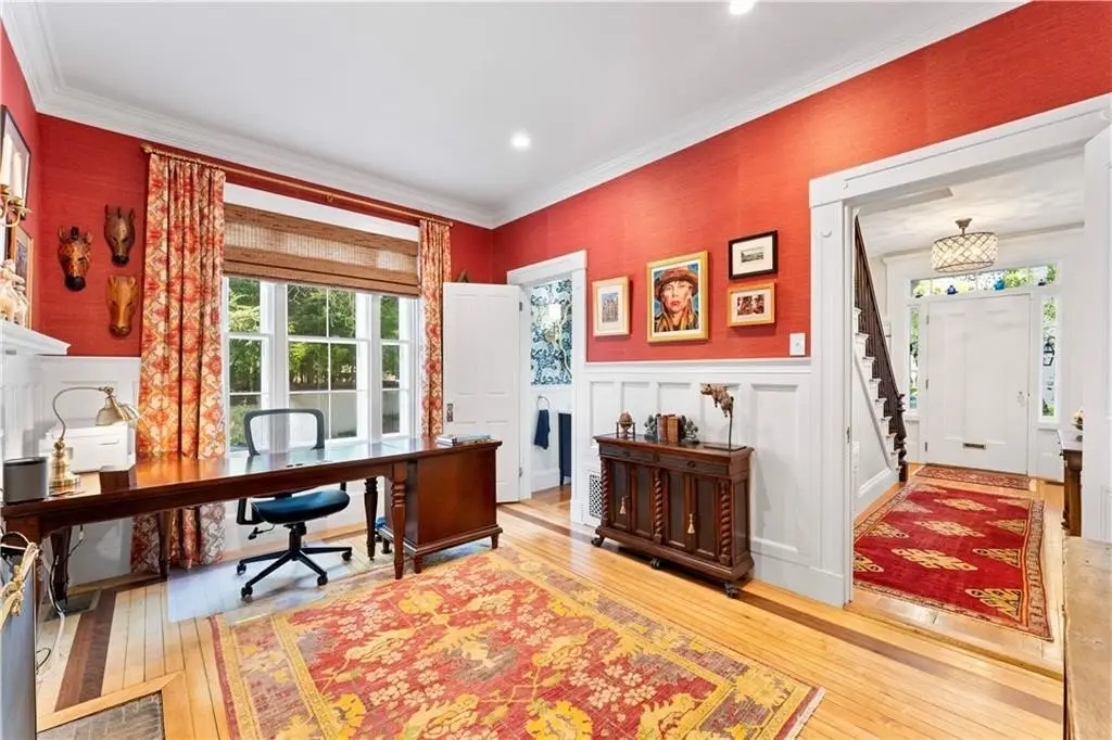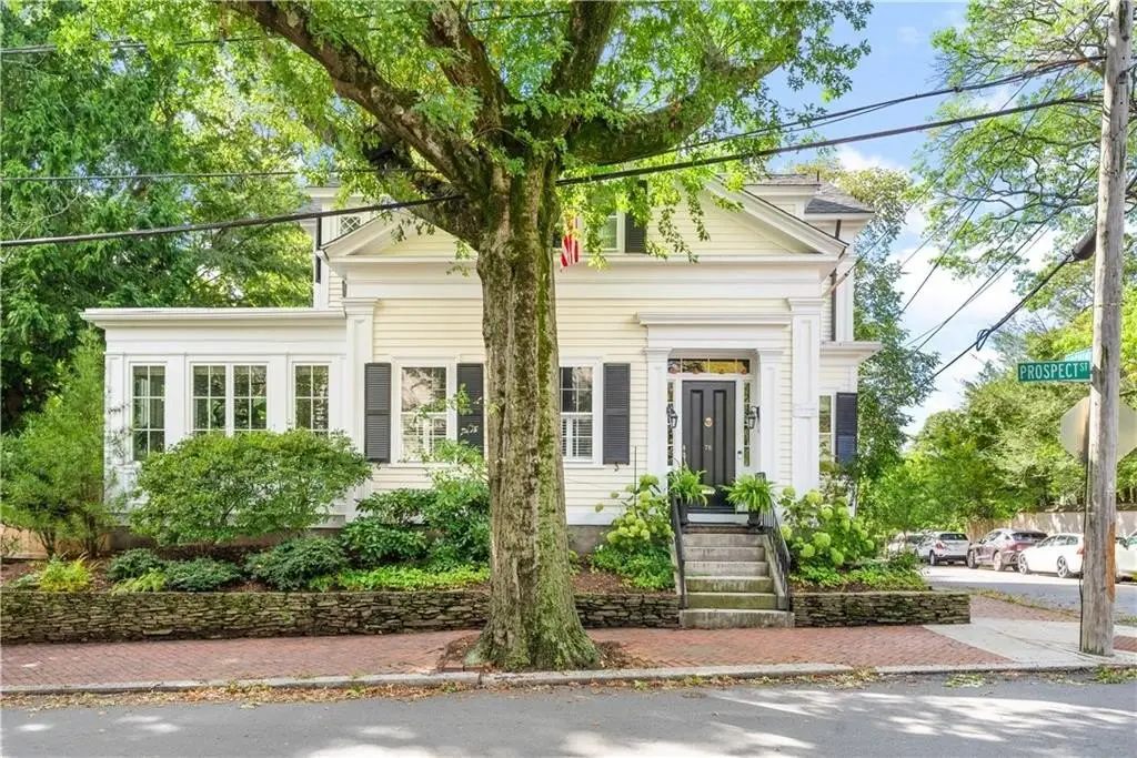 Welcome to the fabulous George F. Gladding House! Perched on one of the most prominent spots in Providence’s coveted College Hill neighborhood, this 1845 Greek Revival has been thoughtfully, and thoroughly, updated with an impeccable eye for detail, with gorgeous crown molding and built-ins, soaring ceilings, and tons of historic details – including 7 working fireplaces. From the main entrance, a stately front hall opens onto a front parlor and a private home office with a half bath. The spaciously redesigned living room, with a gas fireplace, wet bar, and fridge, opens to an elegant dining room. An adjacent sunroom offers a quiet retreat, and steps down onto a private, lusciously landscaped private courtyard patio and garden. The stunning eat-in kitchen features radiant-heated Spanish marble floors, high-end appliances, a breakfast nook, and a dedicated mud room. Upstairs, find two primary suites – the larger offering a fireplace, soaking tub, and radiant heat – plus two additional bedrooms, a family bath, and a laundry room. The third floor includes a private guest suite and additional office space. A new HVAC system with central air, as well as new insulation, adds year-round comfort. Located just around the corner from Prospect Terrace Park, and moments from Brown, RISD, and incredible Downtown and East Side shops and restaurants, this truly special home offers the ideal blend of historic charm and modern luxury living in one of Providence’s most desirable locations.