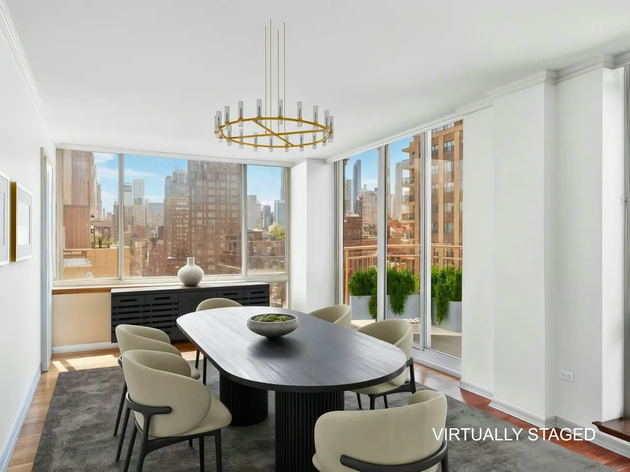 Floor-to-ceiling windows with panoramic skyline views