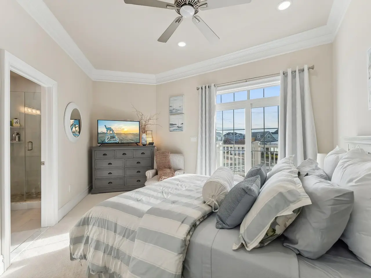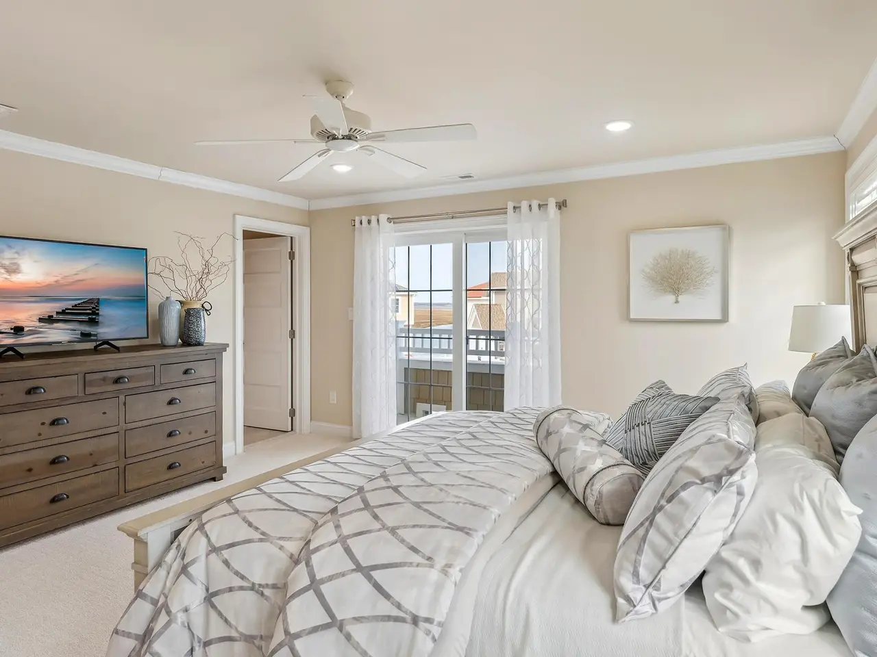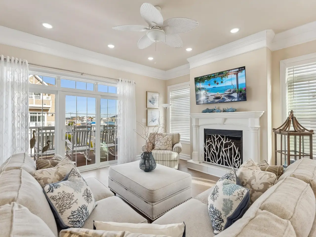 For those unwilling to compromise: 3,100 square feet of luxury with bay views, beach views, a private 12 x 22 pool and a slip for your boat or jet skis, welcome to The Bay View Breeze. This stunning townhome has four bedrooms - all four of them en suite - four full baths, two half baths and five decks. Enjoy breathtaking views of Beach Creek from the two massive wrap-around decks on the first and second floor, and from most interior windows of this home. The crashing waves of the Hereford Inlet can be enjoyed from two of the private decks off of the bedrooms. Ready to host a pool party? The first floor features a great recreation room opening to the deck and pool below. Your guests will love the heated pool with evening lights, beautiful travertine tile, and a convenient added first floor half bath just inside the door. Take the elevator to the second floor to see the gourmet kitchen with state-of-the-art appliances and granite counters encircling the oversized island with eating space for four. Enjoy the sunset views from the kitchen island or step out of the sliders to the wrap-around deck with grilling station and a table set for 6. You'll stay connected to your guests with an open, airy dining area with room for six, a half bath, and a spacious living room and another set of sliders leading out to the deck overlooking the pool. The second floor also has a junior master suite, The Starfish room, which has a queen bed, bathroom with custom tile, and private deck. Take the elevator up to the third floor for three more bedrooms, three bathrooms and the laundry room. The Happy Room has two full beds and a private bath, the Bay View Room is the master suite with a king-sized bed, huge walk-in closet, private deck, bathroom with dual sinks, amazing soaker tub, white bead board and upgraded Italian tile in the shower. The Sea View room has a queen bed, private bath and private deck facing north. Other amenities include: 41-foot garage with 13-foot ceilings, one of the largest yards in the development for extra entertaining space, dual zoned heating and air, tankless hot water heater, outdoor shower, and a boat slip at the private dock. This luxury is just steps away from the travertine walkway that leads to the dock and private marina. Enjoy all that North Wildwood has to offer, with bars restaurants, and beaches just three blocks away, and the picturesque seawall is just 2 blocks away. Home comes fully furnished minus personals. Exclusions: all baby furniture, desk on first floor, golf cart, kayaks, rocking chair in bedroom, some kitchen items in the cabinets.