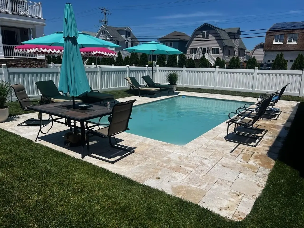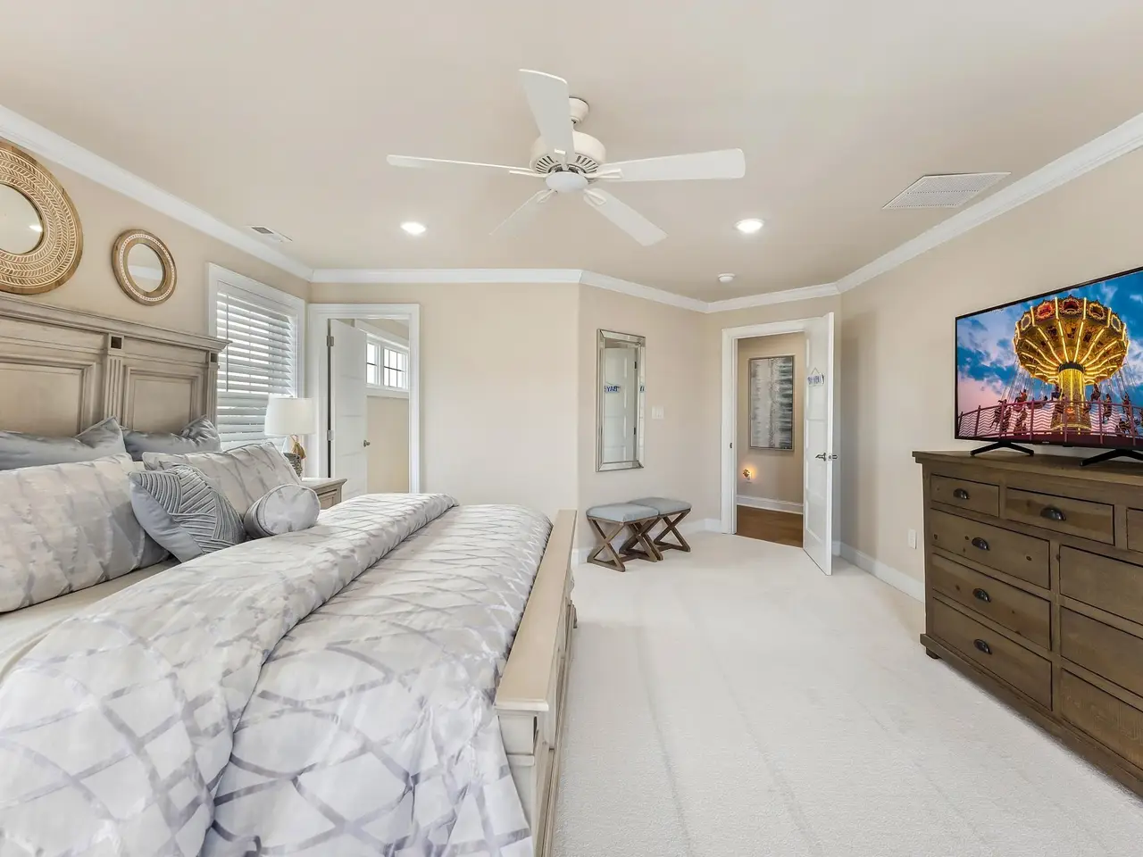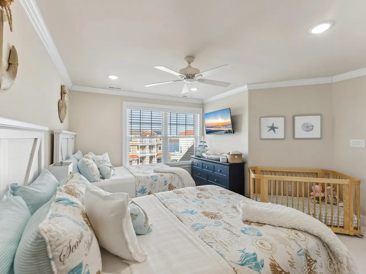 For those unwilling to compromise: 3,100 square feet of luxury with bay views, beach views, a private 12 x 22 pool and a slip for your boat or jet skis, welcome to The Bay View Breeze. This stunning townhome has four bedrooms - all four of them en suite - four full baths, two half baths and five decks. Enjoy breathtaking views of Beach Creek from the two massive wrap-around decks on the first and second floor, and from most interior windows of this home. The crashing waves of the Hereford Inlet can be enjoyed from two of the private decks off of the bedrooms. Ready to host a pool party? The first floor features a great recreation room opening to the deck and pool below. Your guests will love the heated pool with evening lights, beautiful travertine tile, and a convenient added first floor half bath just inside the door. Take the elevator to the second floor to see the gourmet kitchen with state-of-the-art appliances and granite counters encircling the oversized island with eating space for four. Enjoy the sunset views from the kitchen island or step out of the sliders to the wrap-around deck with grilling station and a table set for 6. You'll stay connected to your guests with an open, airy dining area with room for six, a half bath, and a spacious living room and another set of sliders leading out to the deck overlooking the pool. The second floor also has a junior master suite, The Starfish room, which has a queen bed, bathroom with custom tile, and private deck. Take the elevator up to the third floor for three more bedrooms, three bathrooms and the laundry room. The Happy Room has two full beds and a private bath, the Bay View Room is the master suite with a king-sized bed, huge walk-in closet, private deck, bathroom with dual sinks, amazing soaker tub, white bead board and upgraded Italian tile in the shower. The Sea View room has a queen bed, private bath and private deck facing north. Other amenities include: 41-foot garage with 13-foot ceilings, one of the largest yards in the development for extra entertaining space, dual zoned heating and air, tankless hot water heater, outdoor shower, and a boat slip at the private dock. This luxury is just steps away from the travertine walkway that leads to the dock and private marina. Enjoy all that North Wildwood has to offer, with bars restaurants, and beaches just three blocks away, and the picturesque seawall is just 2 blocks away. Home comes fully furnished minus personals. Exclusions: all baby furniture, desk on first floor, golf cart, kayaks, rocking chair in bedroom, some kitchen items in the cabinets.