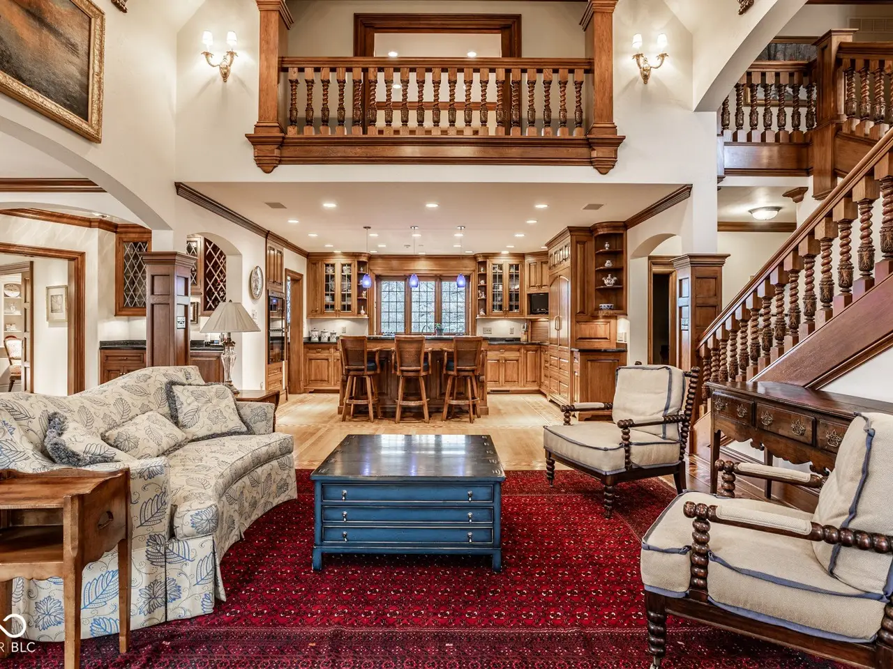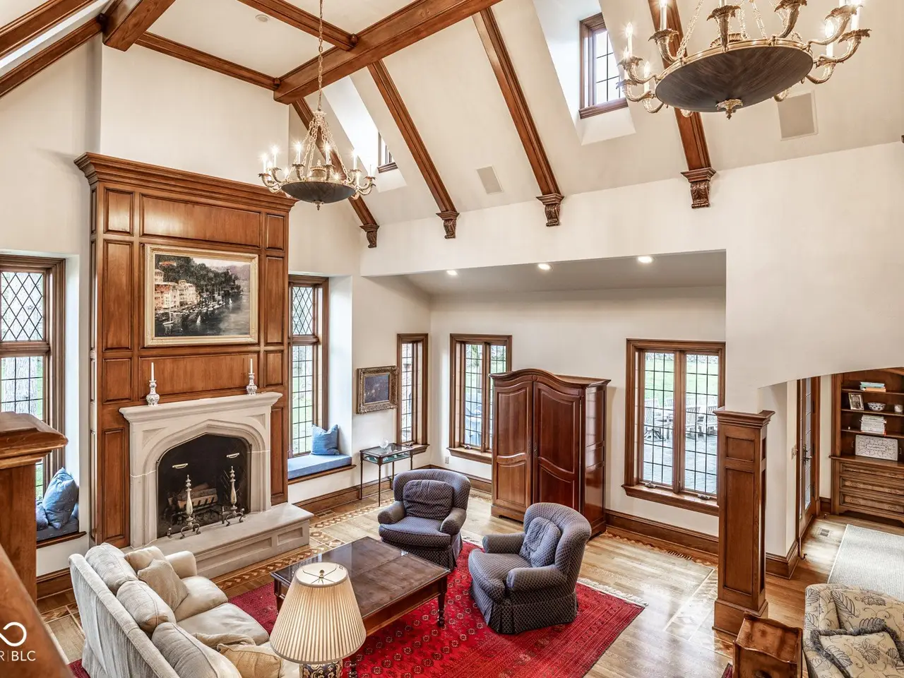 Situated in the heart of Williams Creek along prestigious North Pennsylvania Street, this exquisite Tudor Revival estate spans a breathtaking 1.71 acres. A picturesque approach - crossing a gently flowing creek - sets the tone for the experience that awaits. Thoughtfully envisioned by RWA Architects and Julie O'Brien Design and masterfully crafted by renowned builder Leonard Watson, every inch of this home speaks to timeless craftsmanship and intentional design. Upon entry, the spiral staircase sets an elegant tone, while rich architectural details - from leaded glass windows to intricate millwork and hand-laid hardwood inlays - create a sense of warmth and authenticity. The soaring two-story great room, featuring coffered ceilings and clerestory windows, offers a grand yet welcoming space meant for unforgettable gatherings. Designed with seamless indoor-outdoor living in mind, the great room opens to both a spacious screened-in porch with a skylight and a beautifully appointed patio, complete with a cozy outdoor fireplace - perfect for quiet evenings with family and friends. The main level primary suite serves as a secluded retreat, offering peaceful views of the meticulously manicured grounds. Upstairs, each secondary bedroom boasts its own private en-suite bath and distinctive charm. A versatile playroom caters to all ages, featuring a basketball court and dedicated arts and crafts space. The finished lower level provides additional room for entertainment, whether it's a game of pool or a cozy movie night. Additional highlights include a four-car garage with extra storage, main and second-floor offices, dual laundry rooms, a whole-home generator, a durable slate roof, and so much more. This exceptional home offers a rare opportunity to own one of Williams Creek's finest estates.