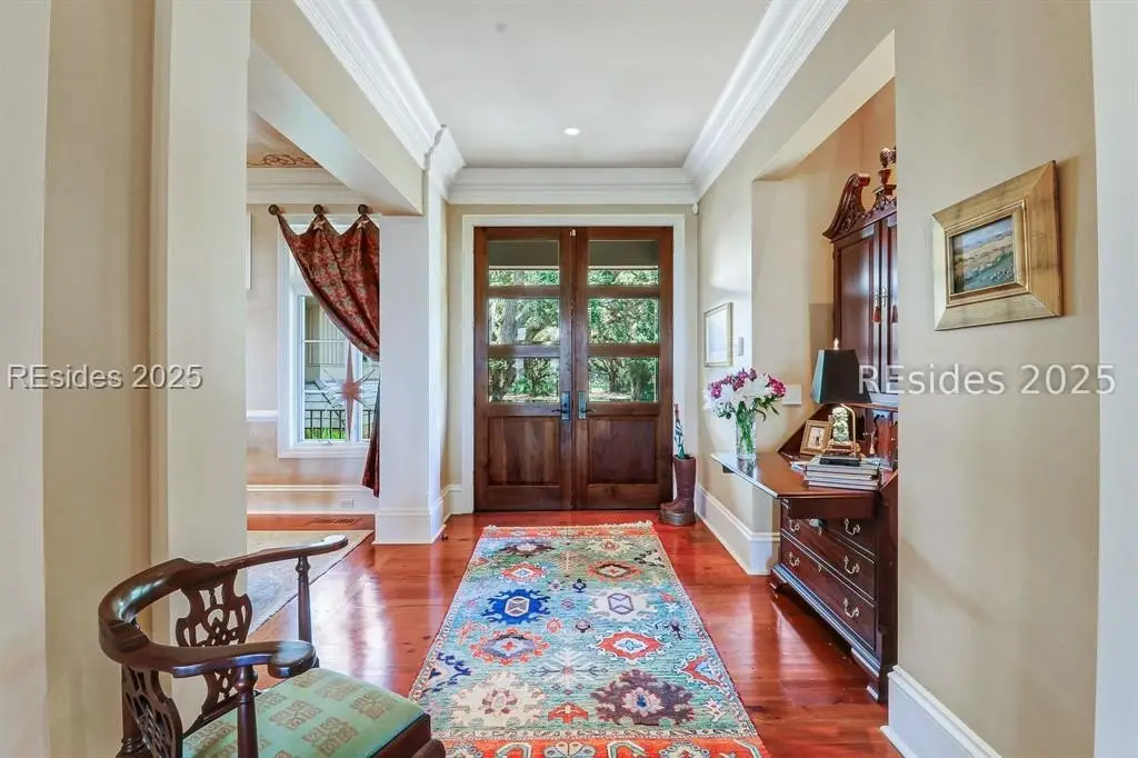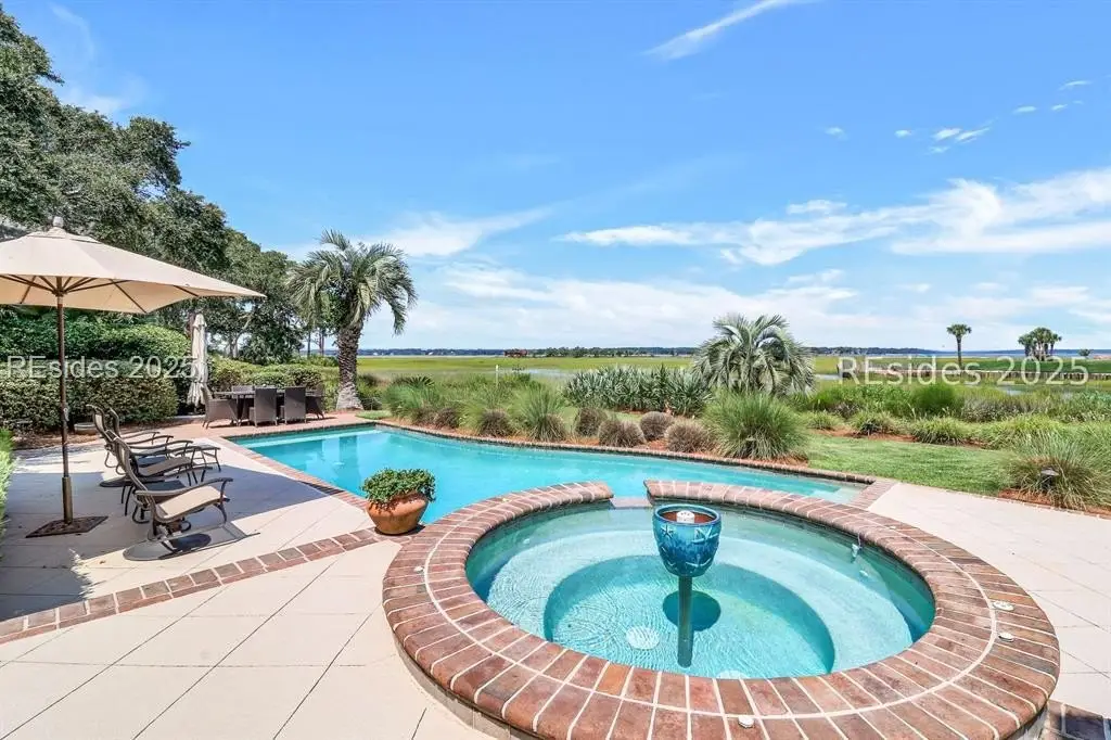 Discover luxury, views, and timeless Sea Pines living in this one of a kind residence built by award winning builder, Dan Lawrence and designed by well-known local architect Jakie Lee. This property offers a rare combination of Lowcountry charm, impeccable quality, and panoramic marsh-to-golf to sound views overlooking the iconic 17th hole of Harbour Town Golf Links home of the elevated PGA RBC Heritage. The interior features of this home are captivating with the extensive trim work, antique heart of pine flooring, custom iron work, and faux finishes by local artisans. Enjoy elegant living and dining spaces. Other features include designer lighting, dream kitchen/family room, impressive first floor owner suite, and spacious guest suites. Outdoor living is unmatched with a heated/chilled pool and spa, covered patio, and lush landscaping-perfect for enjoying the everchanging sunsets while watching golfers, nature, and boating right out your back door. A truly unforgettable Low Country property!