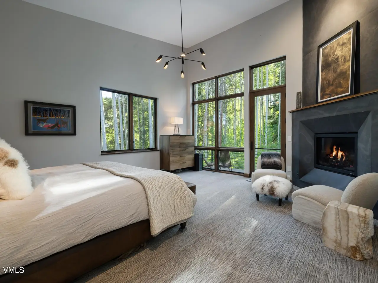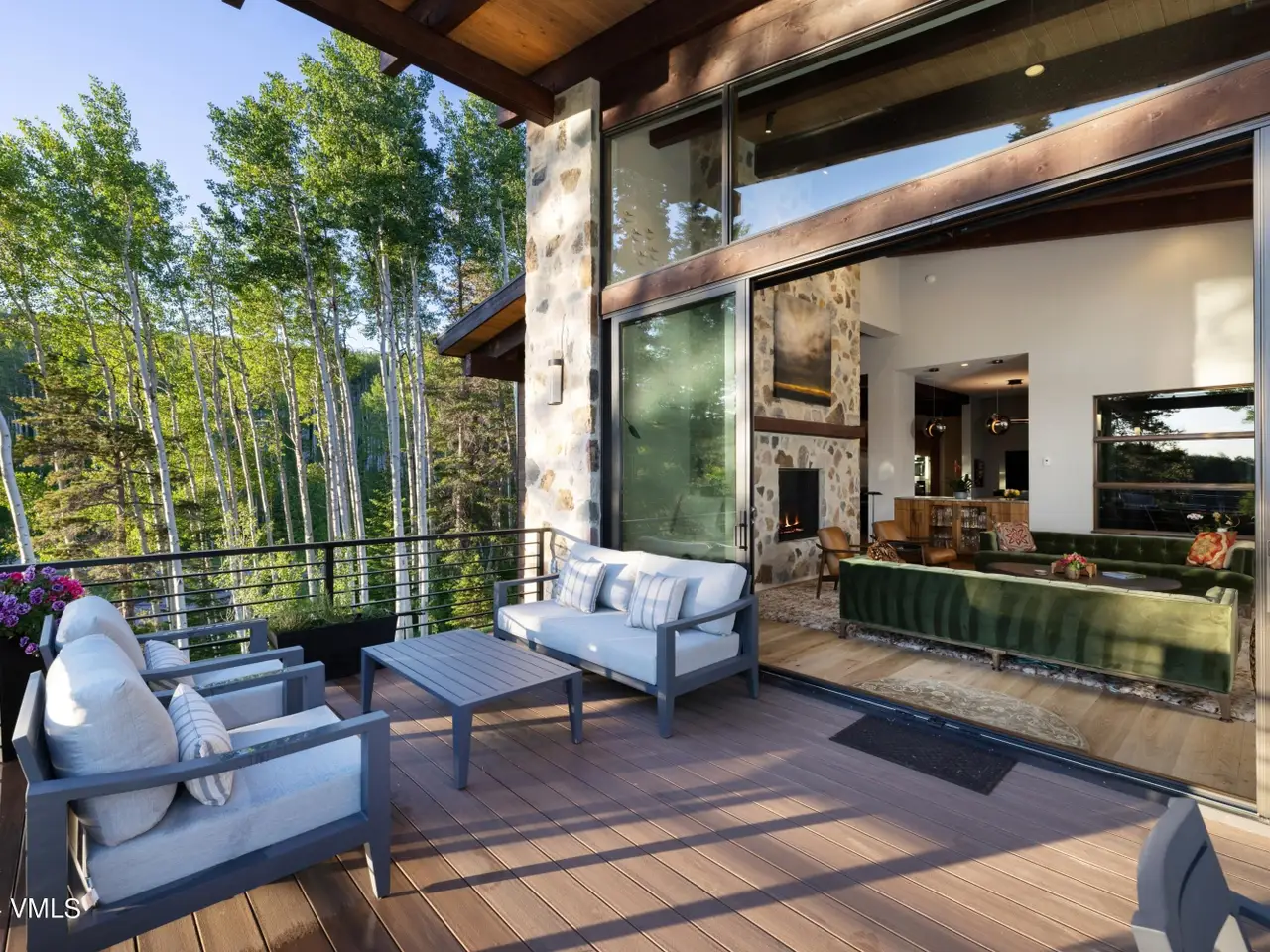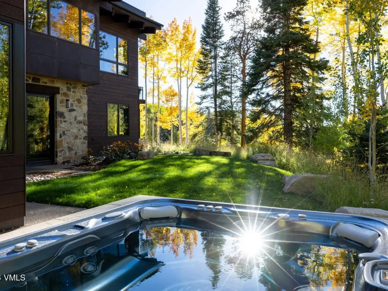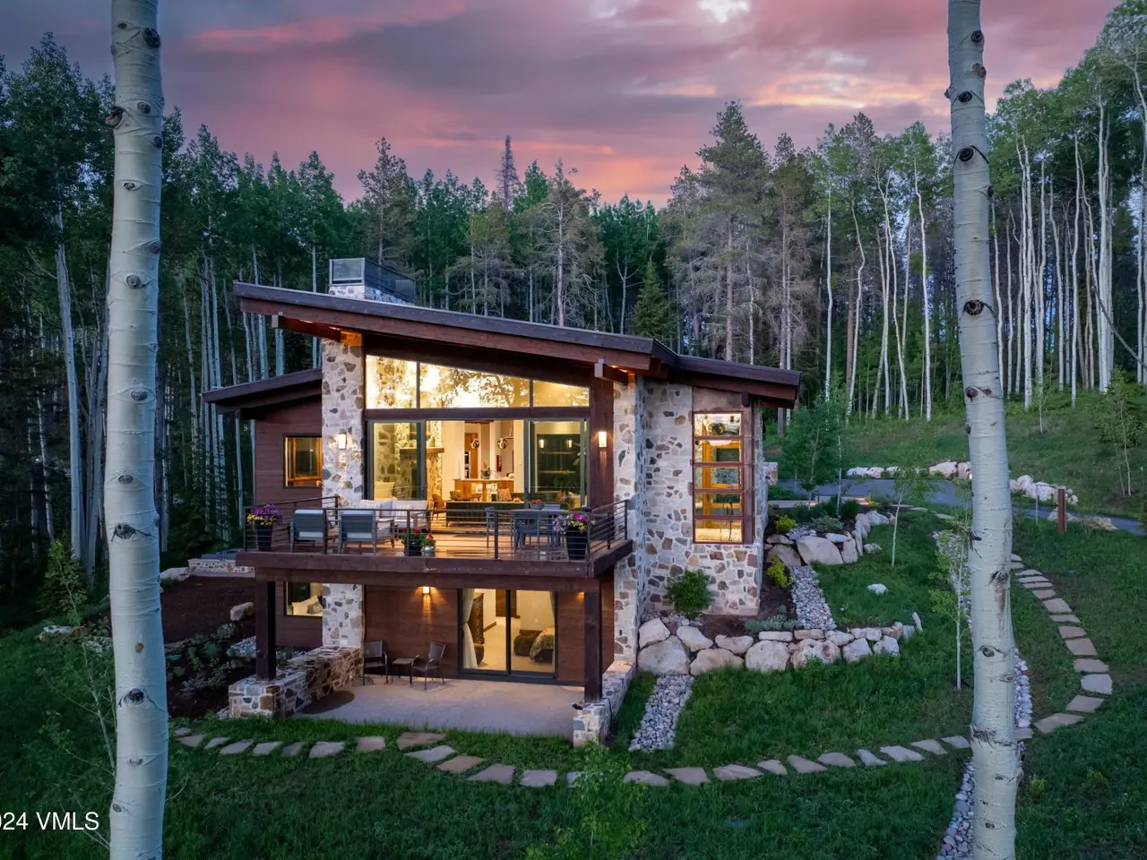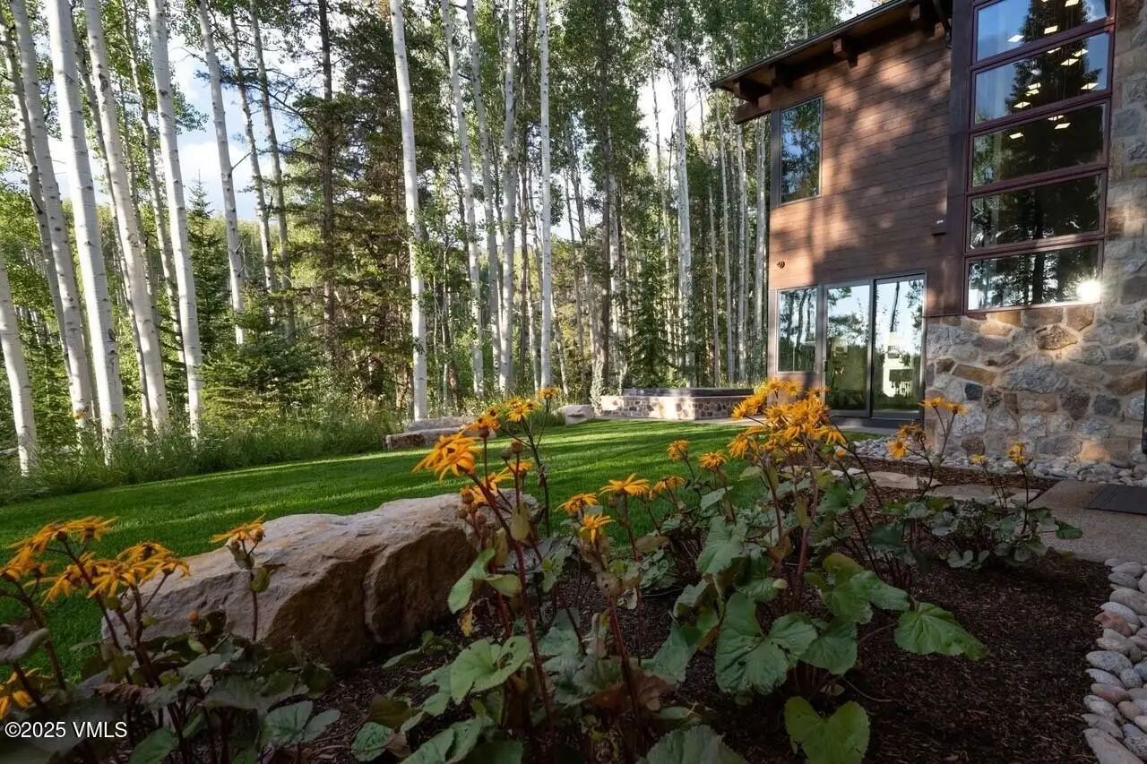 Nestled in an idyllic and serene aspen grove within the prestigious gated community of Mountain Star, this captivating home embodies contemporary warmth, elegance and privacy. Expansive windows coupled with multiple decks and patios seamlessly blend indoor and outdoor living. An open floor plan with vaulted ceilings in the great room and a double-sided fireplace create a relaxing ambiance. The heart of the home is a graciously appointed chef's kitchen with adjoining pantry and cozy breakfast room. The master suite exudes tranquility with a private deck, cozy fireplace, and his and hers closets, while a private main-level office serves a space for both relaxation and productivity. The lower-level features three secondary bedrooms, each with its own en suite bath and abundant natural light. Entertainment and wellness are elevated with a media room and game room, bar, fitness room, and outdoor hot tub. Wine collectors will enjoy a 1,000-bottle cellar with thoughtful ambient lighting. A three-car garage accommodates vehicles and sports gear, and pet-friendly amenities include an integrated pet door and dedicated dog run. Surrounded by alpine beauty, the property is perfectly situated near a protected open meadow with hiking trails. Thoughtfully designed by renowned Vail architect Pavan Krueger, and meticulously crafted by builder Todd Labine, this home exemplifies the highest standards of mountain living and approachable luxury.