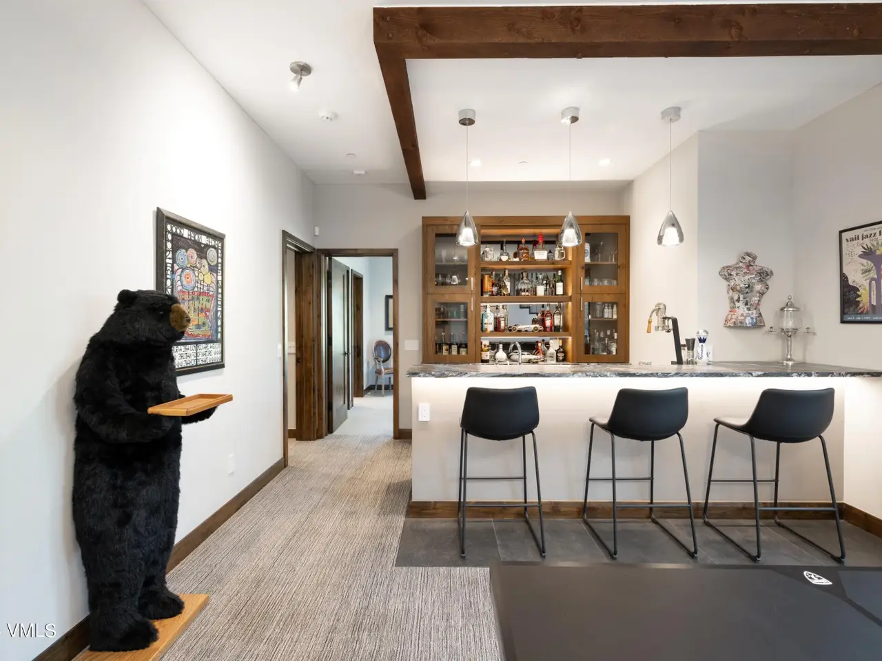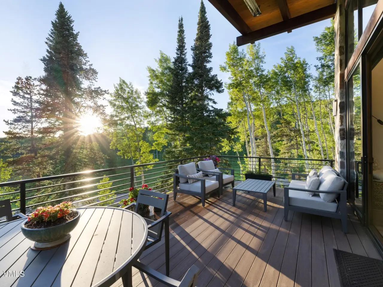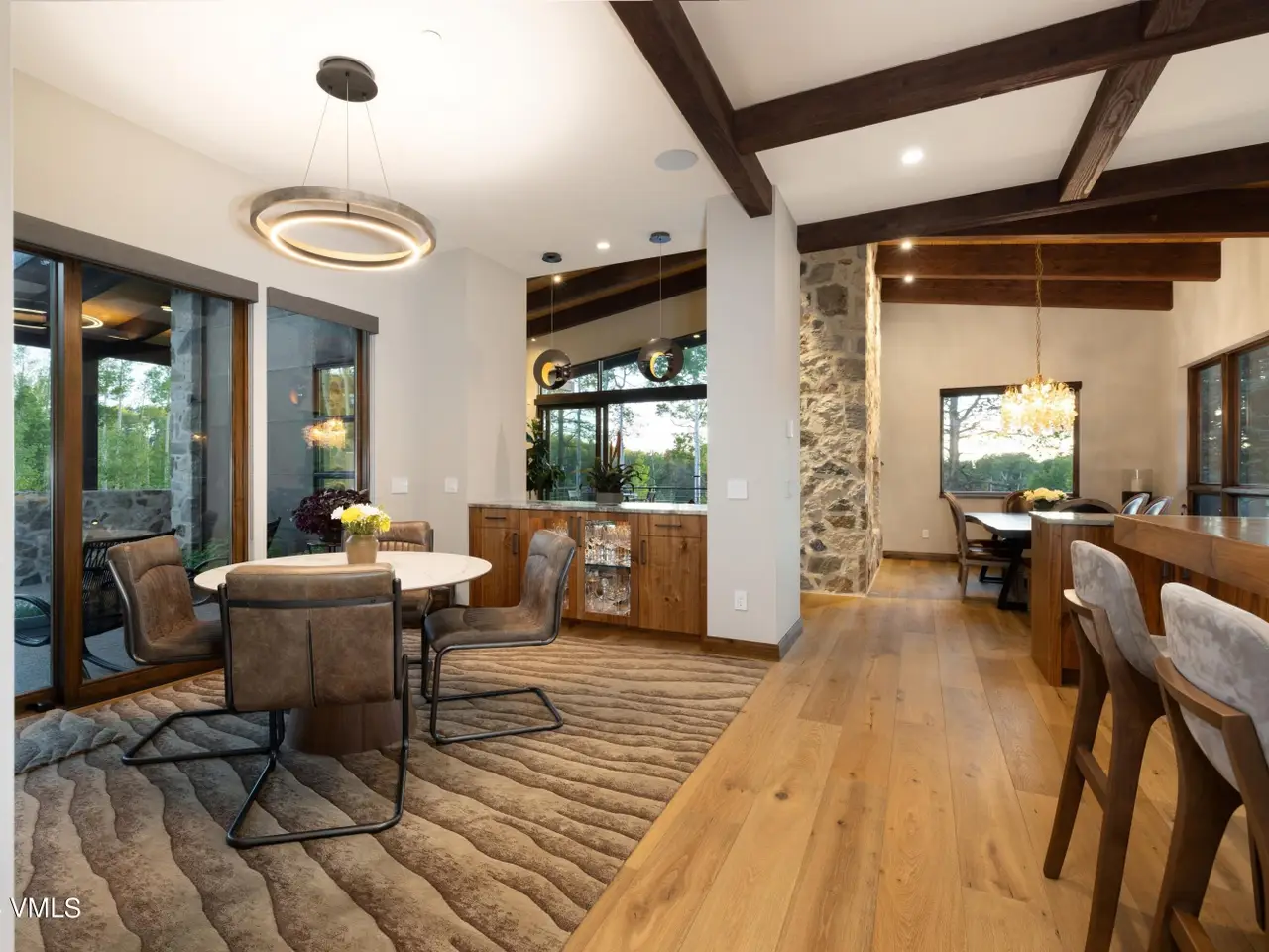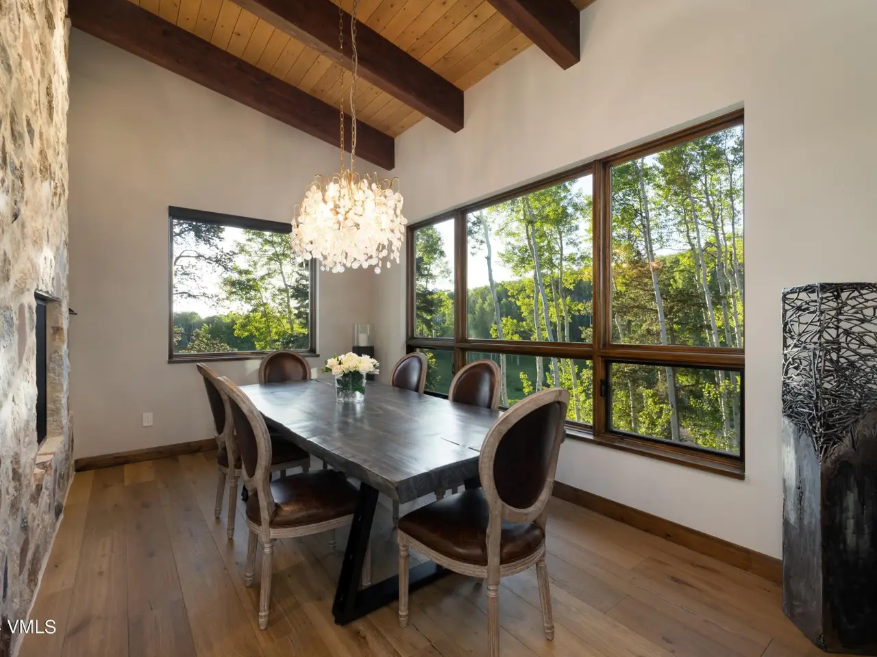 Nestled in an idyllic and serene aspen grove within the prestigious gated community of Mountain Star, this captivating home embodies contemporary warmth, elegance and privacy. Expansive windows coupled with multiple decks and patios seamlessly blend indoor and outdoor living. An open floor plan with vaulted ceilings in the great room and a double-sided fireplace create a relaxing ambiance. The heart of the home is a graciously appointed chef's kitchen with adjoining pantry and cozy breakfast room. The master suite exudes tranquility with a private deck, cozy fireplace, and his and hers closets, while a private main-level office serves a space for both relaxation and productivity. The lower-level features three secondary bedrooms, each with its own en suite bath and abundant natural light. Entertainment and wellness are elevated with a media room and game room, bar, fitness room, and outdoor hot tub. Wine collectors will enjoy a 1,000-bottle cellar with thoughtful ambient lighting. A three-car garage accommodates vehicles and sports gear, and pet-friendly amenities include an integrated pet door and dedicated dog run. Surrounded by alpine beauty, the property is perfectly situated near a protected open meadow with hiking trails. Thoughtfully designed by renowned Vail architect Pavan Krueger, and meticulously crafted by builder Todd Labine, this home exemplifies the highest standards of mountain living and approachable luxury.