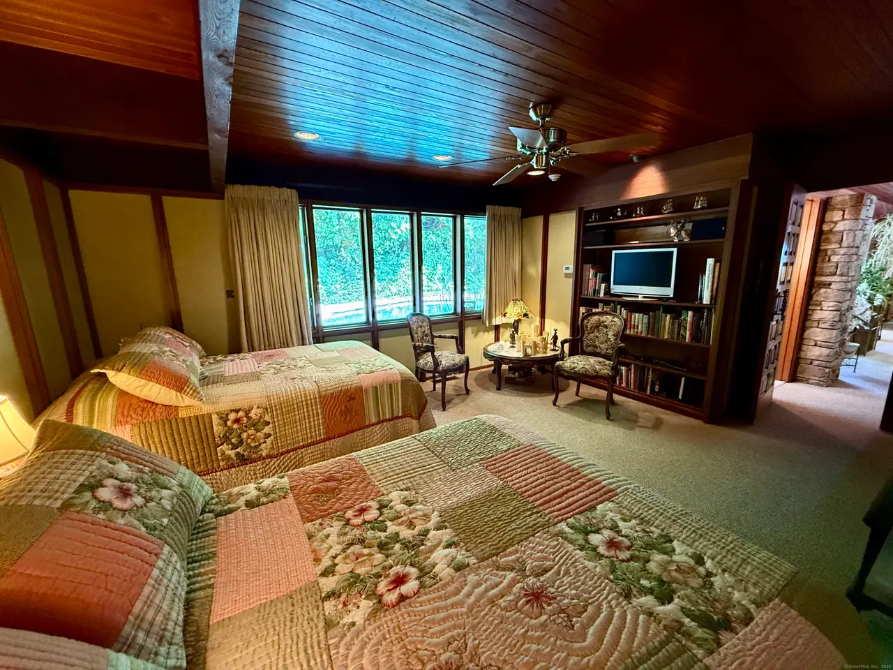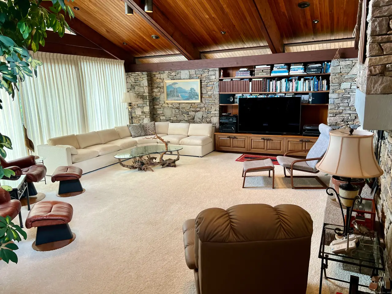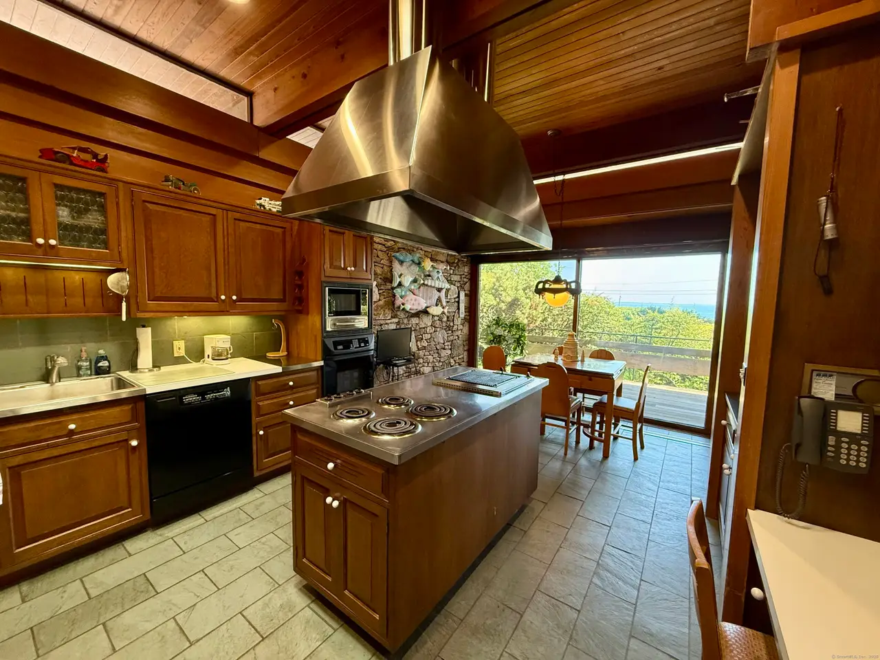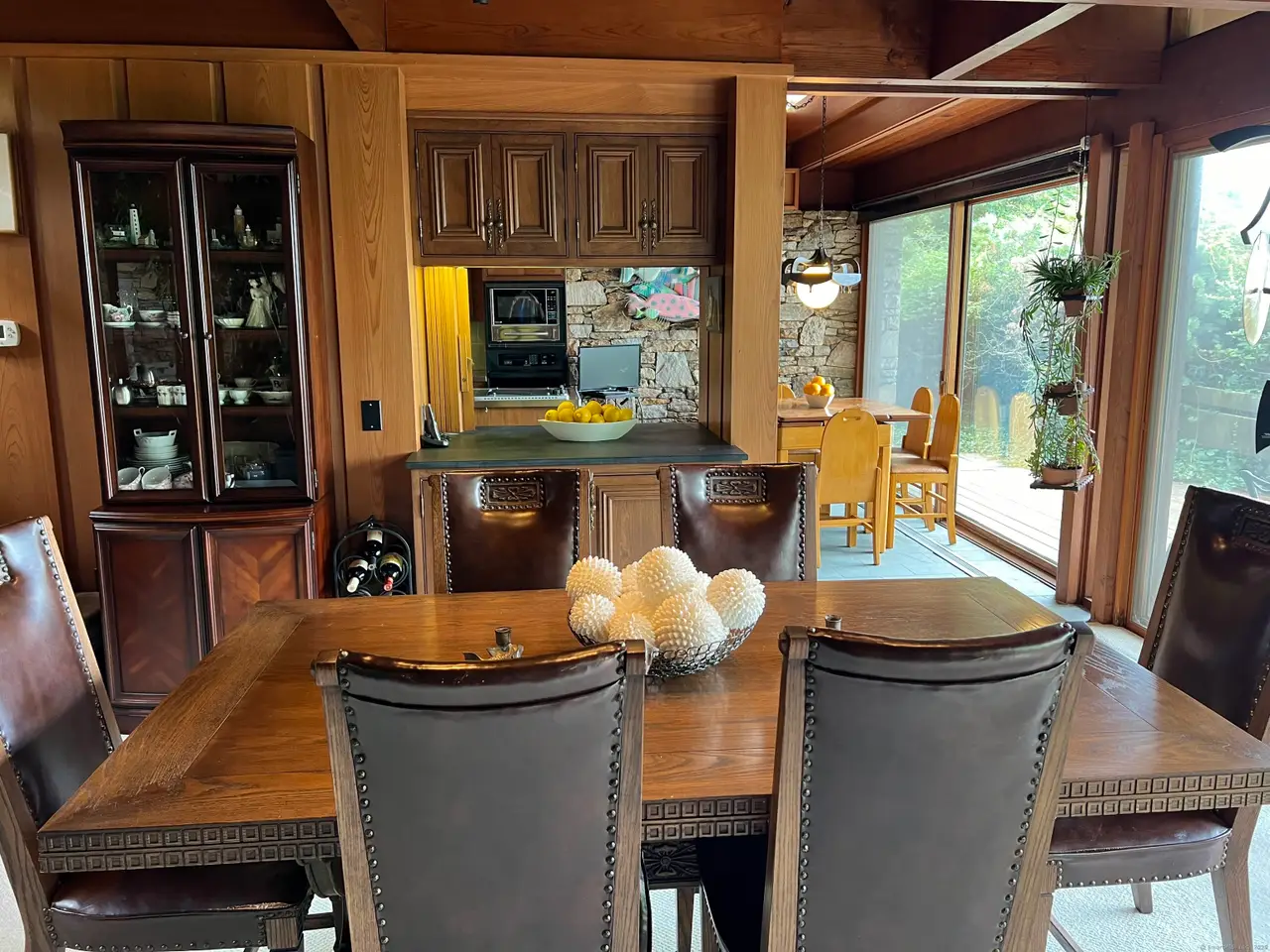 • Marriage of glass, stone, and shiplap throughout