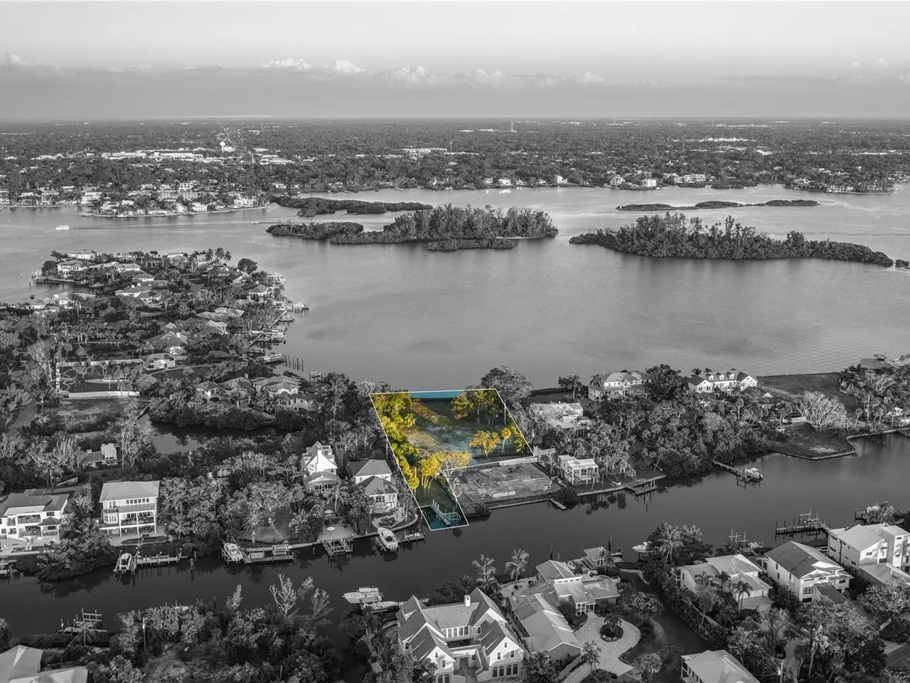 Exquisite Bay Island Estate Parcel Available. Build your dream waterfront estate on this exceptional 1.52-acre bayfront estate lot, offering both open bay access and a protected deep-water slip on Hansen Bayou. The east side of this extremely private lot boasts 212 feet of bayfront with expansive views to the East and South down the Bay. On the west side, is a large 54-foot waterfront parcel with a seawall cut-out area allowing for a 50-foot protected boat basin area with a private dock on deep water Hansen Bayou. Enjoy serene views of Edward's Islands and Little Sarasota Bay, as well as stunning sunsets across Hansen Bayou to the west. The existing home is currently in the permitting process for demolition, allowing you to create a custom estate tailored to your vision. This one-of-a-kind opportunity will not last long. Due to hurricane damage the property is being sold "as is".