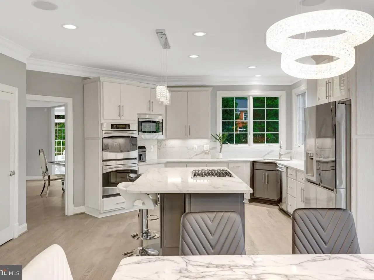 Set on nearly two private acres backing to River Bend Country Club, this 4-bedroom, 4.5 bath brick colonial estate offers 7,100 sq ft of total living space. Natural sunlight pours through oversized windows throughout. Highlighting custom details at every turn and creating a home that is as elegant as it is inviting, perfect for both entertaining and everyday living. A two-story foyer with wrought-iron staircase creates a grand first impression, leading into both the formal and dining rooms that open onto a bright sunroom, ideal for morning coffee or relaxing garden views. The two story, sundrenched family room with fireplace offers a cozy retreat. While the newly remodeled kitchen serves as a true centerpiece of the home, featuring quartz countertops & backsplash, custom cabinetry, and an oversized seated island that flows seamlessly to the expansive deck and manicured lawns. Upstairs, the primary suite serves as a private retreat, complete with a sitting area and a spa like primary bathroom. The second bedroom is ensuite, while bedrooms 3 & 4 are connected through an adjoining bathroom. The walk-up lower level is designed for entertaining and relaxation, offering a custom bar, home theater, and versatile rec spaces. Outside, expansive decks, mature trees, and lush lawns create the perfect backdrop for gatherings or quiet reflection. The three- car garage with epoxy flooring and private driveway completes the property.
