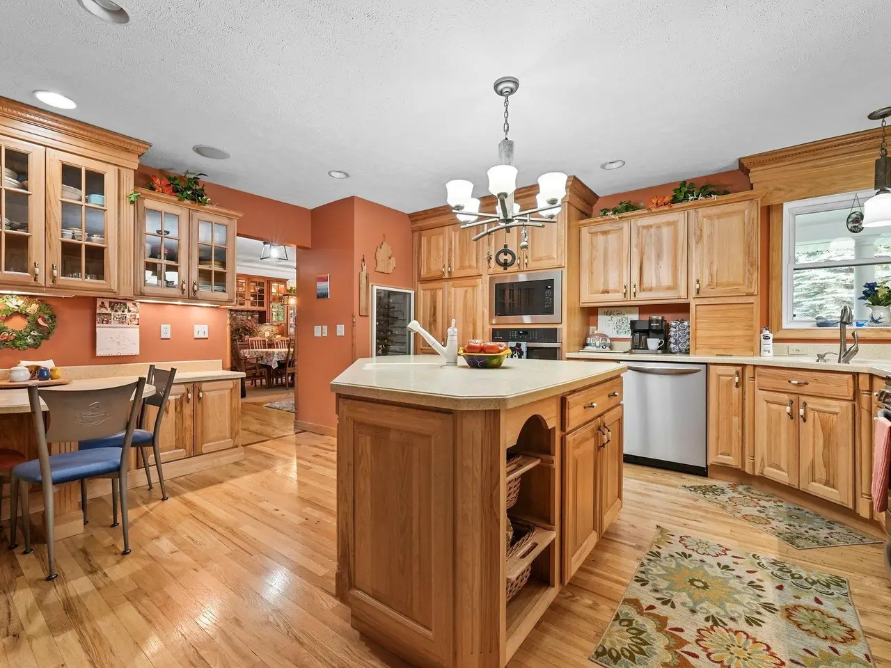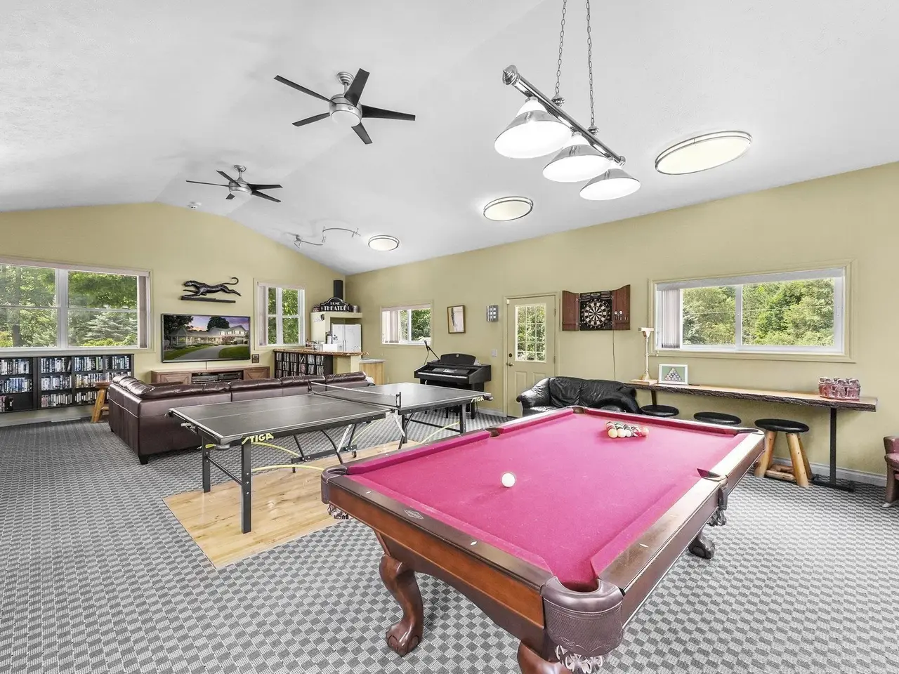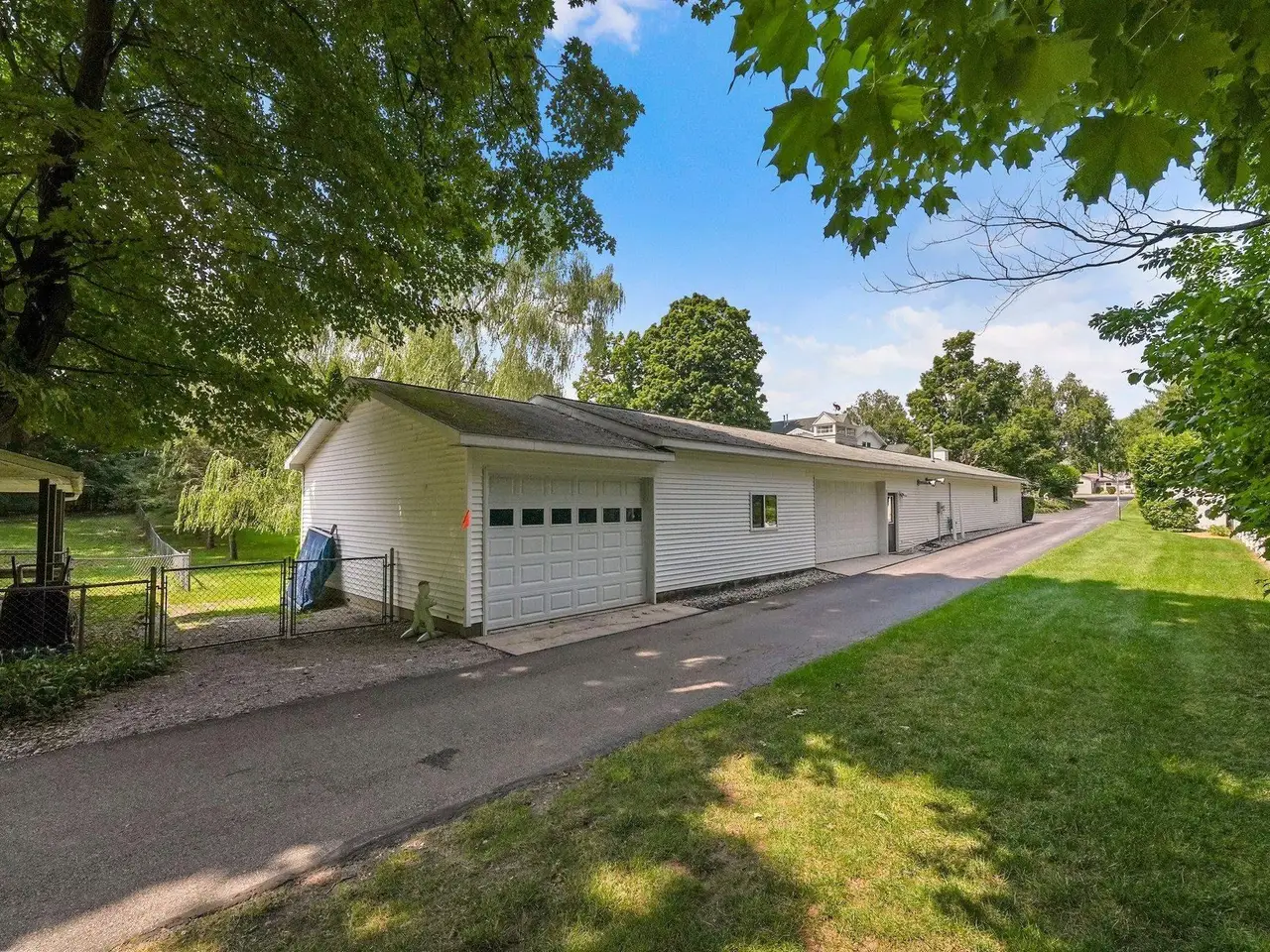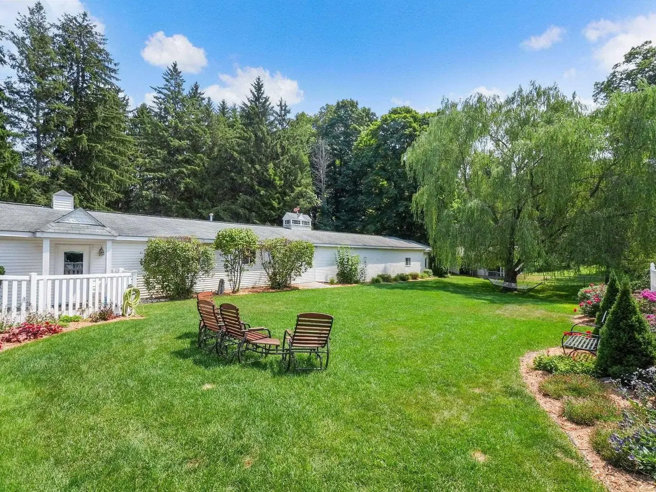 Welcome home! This is how you will feel as you enter this incredible two-story home. Designed for entertaining or lots of room to play, this home has something for everyone. Inviting foyer opens to spacious main flooring living room with gas fireplace and dining area. Gracious island kitchen with hardwood flooring, stainless appliances and solid surface counter tops. Main floor primary suite has a private bath with a jacuzzi tub and a tiled walk-in shower. Upper level features fully loaded family room with kitchenette, and room for all your guests. Full finished walkout lower level with sauna. Exceptional grounds include wrap around covered porch, in-ground heated pool, pool house, changing rooms, and playground area. There is truly something for everyone here, adult "playground" can be found in the 24 foot x 118 foot heated, insulated finished pole building, with four designated areas, last stall features raised ceiling. Secondary 16 x 36 barn with heat/ac and water. In addition to five-plus acres, home comes with shared Silver Lake access. Well maintained home ideally situated a short drive to Traverse City. Majority of home was built in 1998 small portion original to 1948.
