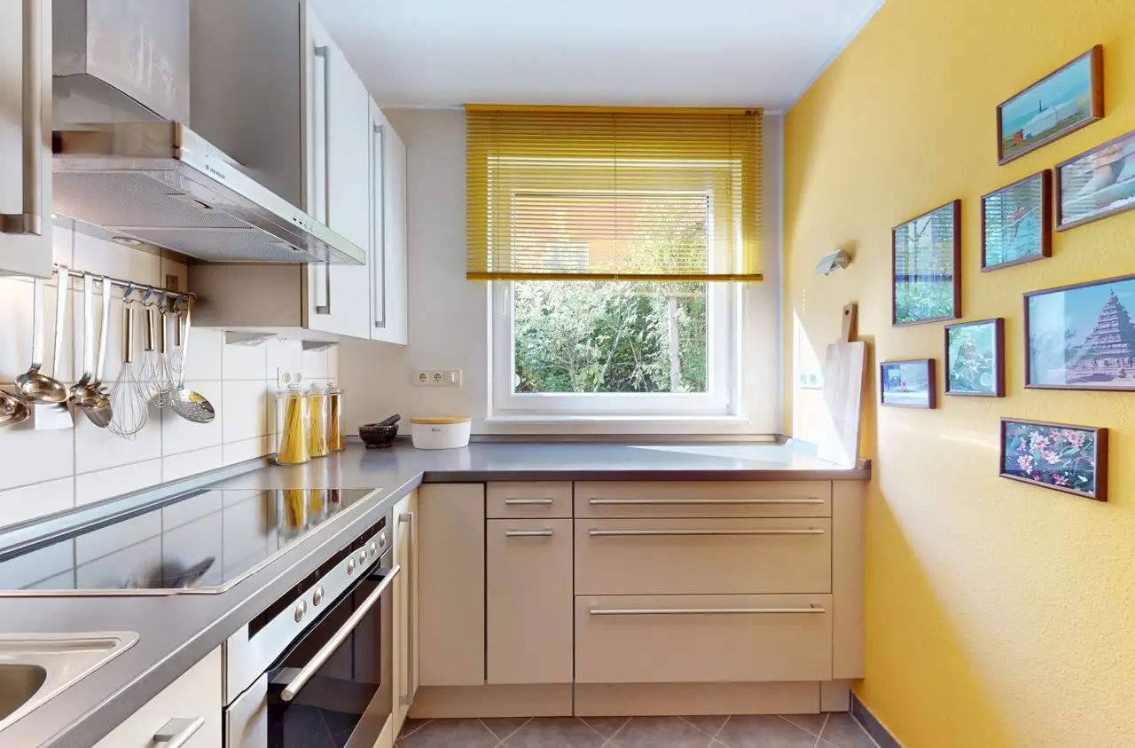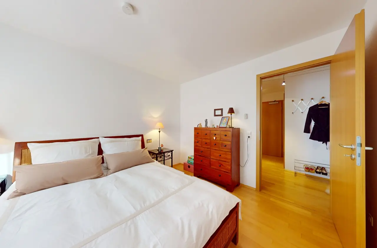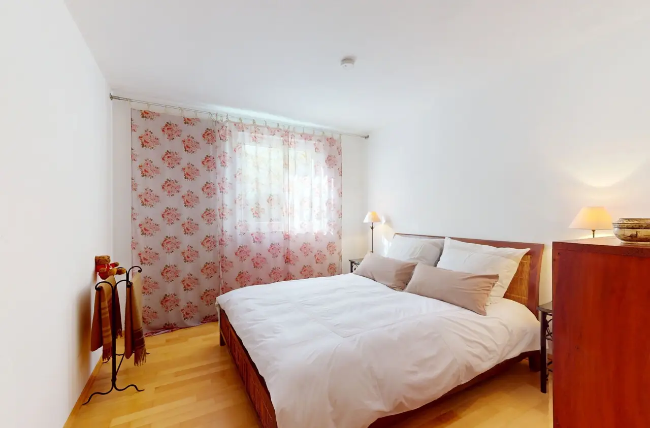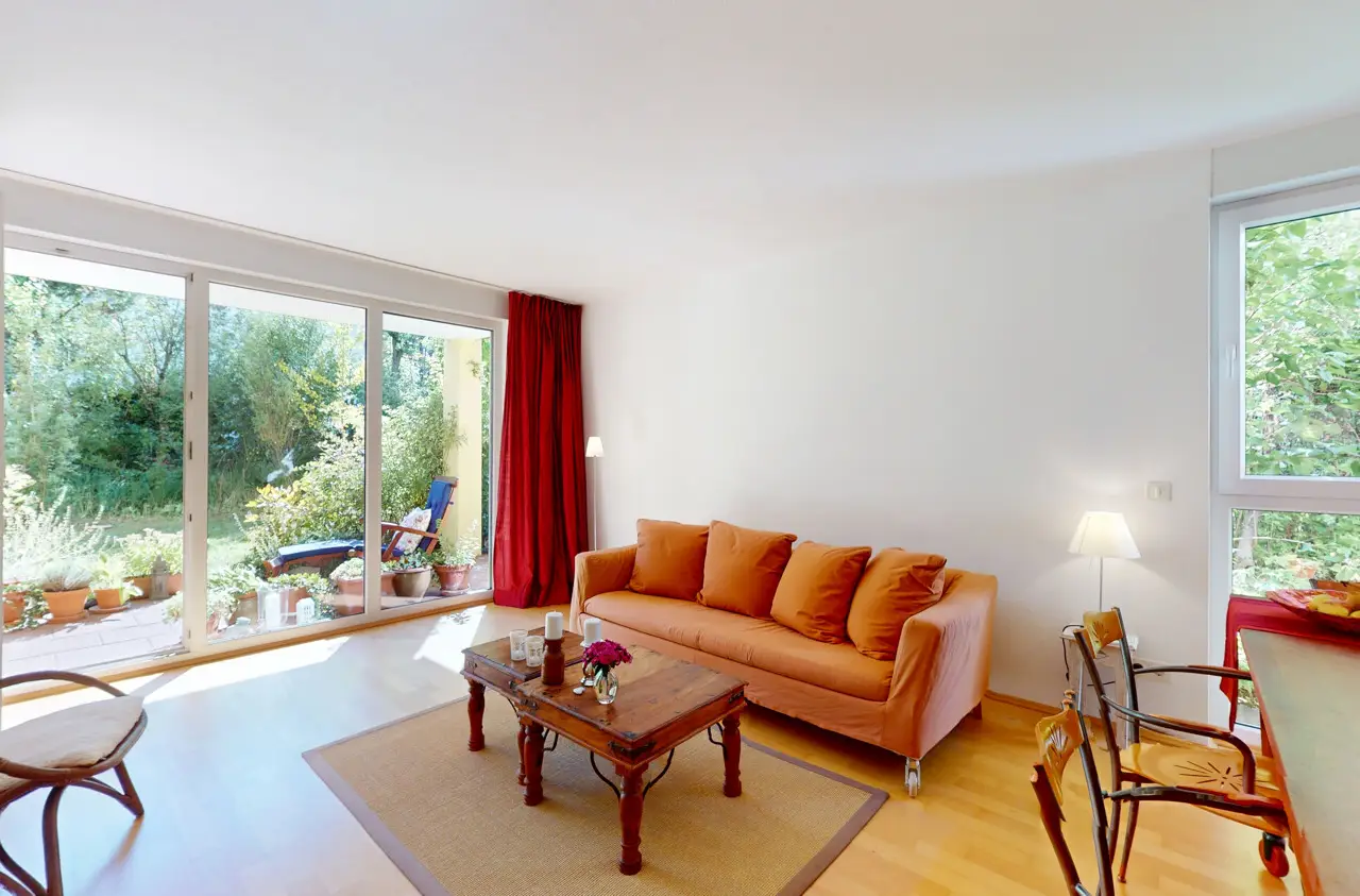 This special property combines the advantages of a barrier-free first floor apartment with the feeling of living in your own home. It is located in a well-kept, family-friendly ensemble of apartment buildings with a park-like common area and playgrounds and impresses with its unique combination of spaciousness, tranquillity and excellent infrastructure. The centerpiece is the approximately 325 m² garden, which offers exclusive special usage rights. It is beautifully ingrown, has fruit trees, a small pond and shady areas. The spacious, south-facing, covered terrace invites you to linger and offers a pleasant ambience at any time of day. There are five rooms, two bathrooms and a guest WC in a living space of around 154 m². Large, mostly floor-to-ceiling windows ensure that the rooms are flooded with light. The windows are double-glazed and fitted with electric shutters. Thanks to the barrier-free layout, the apartment is suitable for families as well as couples or senior citizens who value comfort and freedom of movement. The property was originally planned as two separate apartments that were merged. It consists of a three-bedroom apartment with approx. 87.22 m² and a two-bedroom apartment with approx. 66.78 m², which can easily be separated again. For this reason, there are currently two kitchens available - a practical solution for families or for individual redesign. Overall, the apartment is in a very well-kept condition, although selective modernization is advisable. The underfloor heating, which is operated by a modern heat pump, is a particular plus. It was only installed in 2023 and ensures a pleasant indoor climate. The building, which was constructed in 2003, is equipped with an elevator, making it easy to access the two spacious cellar compartments in the basement. An underground parking space is currently rented in the immediate vicinity of the building and can be taken over. The location near Dornbusch impresses with its excellent infrastructure: shopping facilities, schools, daycare centers and public transport connections are in the immediate vicinity and make the location particularly attractive. This garden apartment is truly unique, as it combines the advantages of urban living with the tranquillity and spaciousness of a private garden.