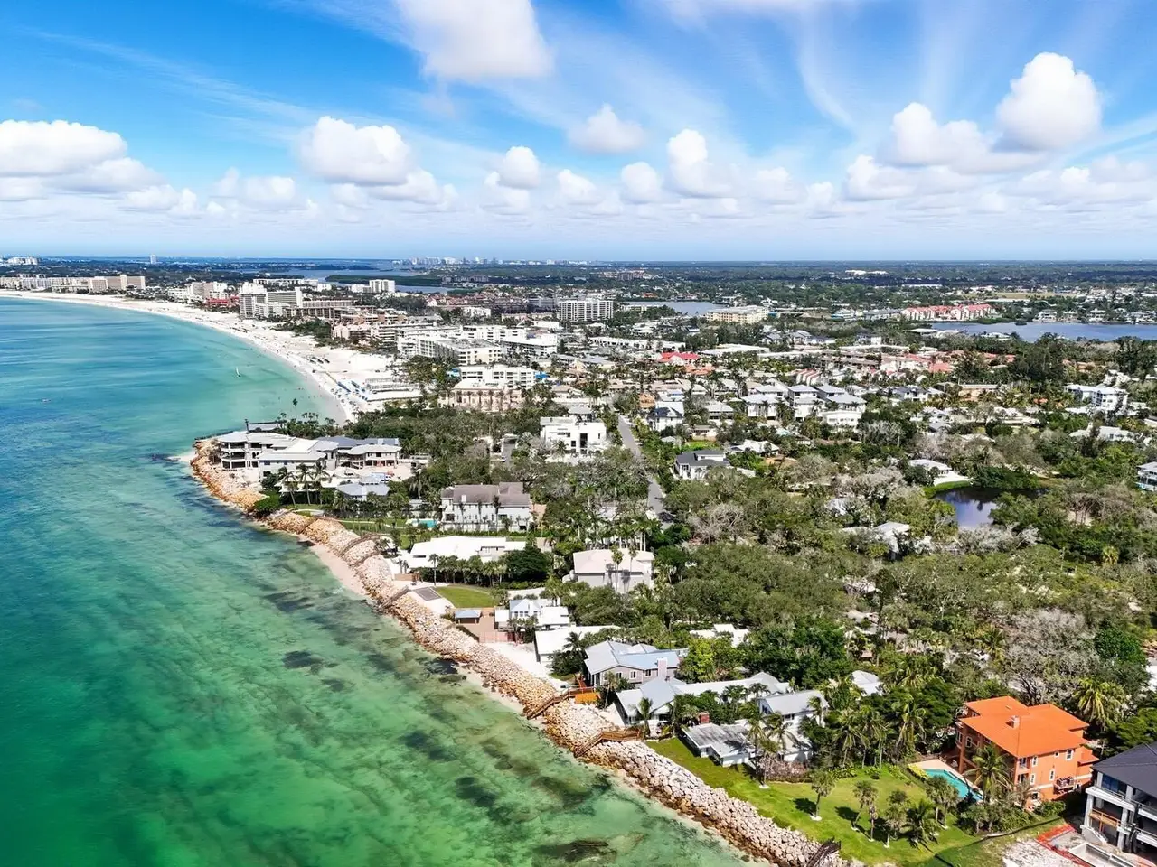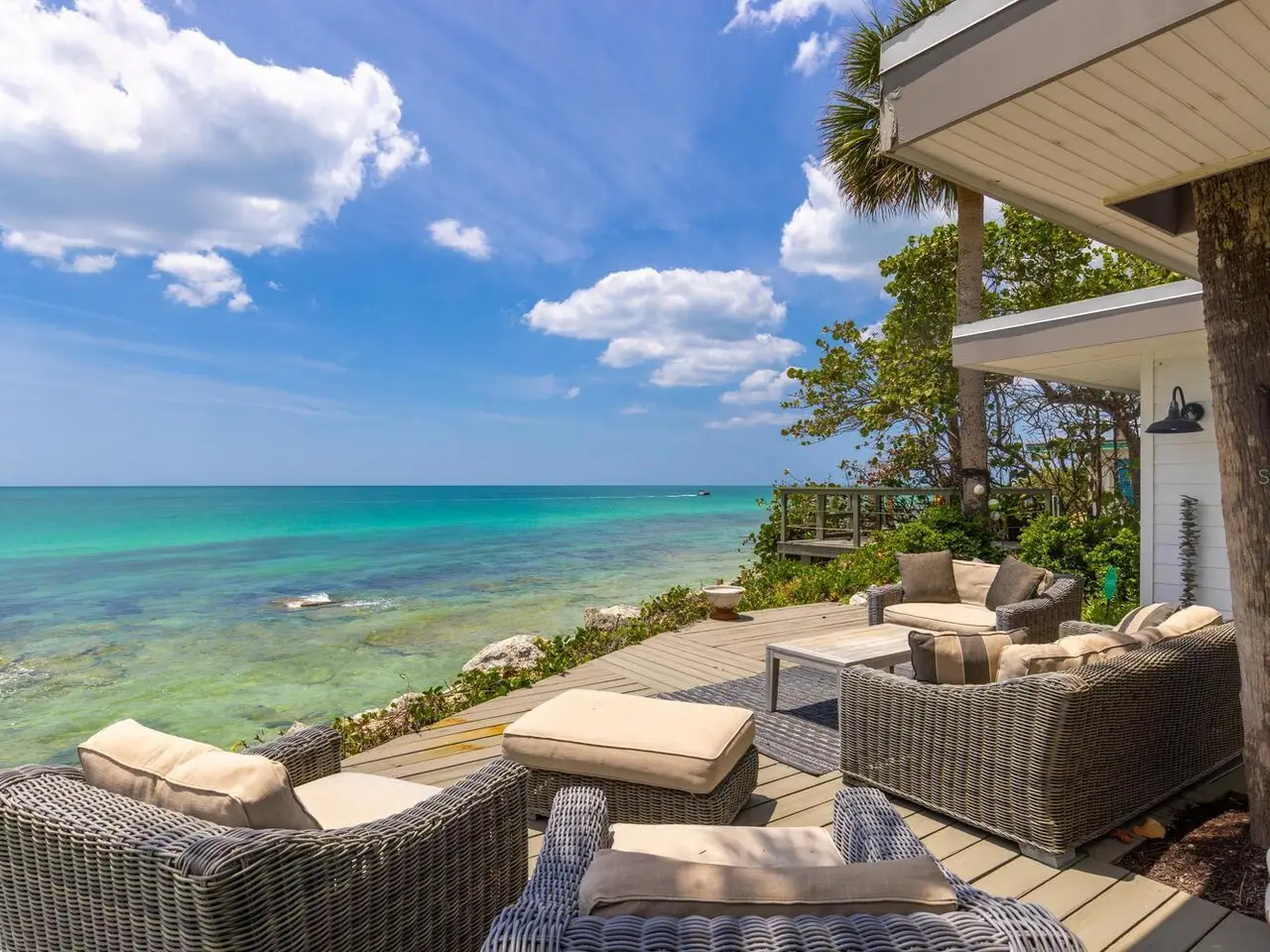 A rare Gulf-front property on Siesta Key’s legendary Point of Rocks—one of Sarasota’s most coveted and geologically unique coastal settings. Perched above the shoreline on ancient limestone formations estimated to be over 3,000 years old, this elevated homesite captures breathtaking, unobstructed views of the Gulf and spectacular nightly sunsets. Set on over one-third of an acre, the existing structure features 4 bedrooms and 4 bathrooms across a spacious split-level design with multiple indoor and outdoor living areas with flexible layouts—perfect for entertaining or relaxing in total privacy. The surrounding waters are alive with sea life and ideal for swimming, snorkeling, kayaking, or paddleboarding right from your backyard. What truly sets this property apart is its existing building footprint—a rare advantage that may allow rebuilding much closer to the water than current regulations permit for new construction. This positioning maximizes the site’s potential and preserves unmatched Gulf views. Whether you renovate, expand, or create a modern coastal retreat within the footprint, the possibilities are extraordinary. With such a large private setting, an entirely new estate could easily be designed. Just a short stroll, golf cart, or bike ride brings you to Crescent Beach and the vibrant shops and restaurants of Crescent Village. With its rare proximity to the Gulf, elevated Point of Rocks location, and limitless potential, this is one of Sarasota’s most unique and coveted Gulf-front offerings.