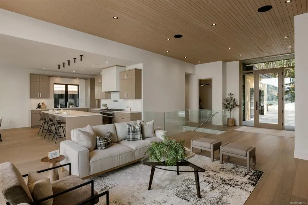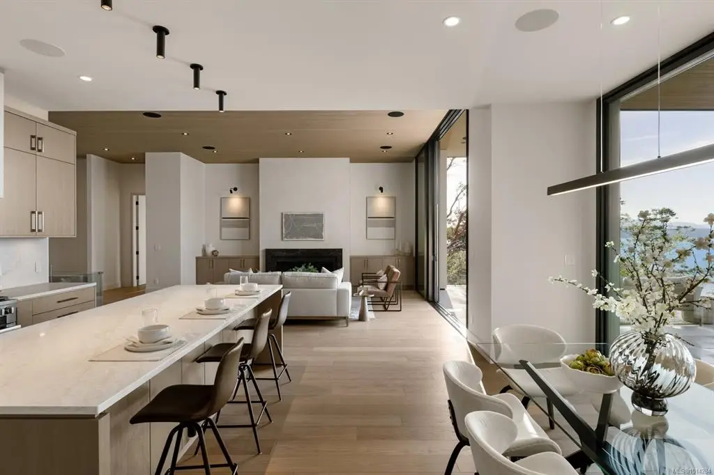 Extraordinary 1.08-acre west-facing waterfront estate in North Saanich, crafted by GT Mann Contracting. This 3,908 sq.ft. gated residence showcases soaring 10–12 ft ceilings and walls of glass capturing sweeping ocean vistas and sunsets. Designed for effortless one-level living, the chef’s kitchen with Miele appliances, butler’s pantry, and custom millwork flows to a heated, partially covered sundeck with outdoor kitchen. Features include a media room, temperature-controlled wine room, office, 3 bedrooms, and 4 baths. The primary suite offers floor-to-ceiling windows, spa-inspired ensuite, and oversized wardrobe. Zoned for a detached guest cottage, the property provides added flexibility. A 3-car garage, manicured grounds, and refined finishes complete this modern masterpiece—an oceanfront sanctuary blending privacy, natural light, and timeless luxury.