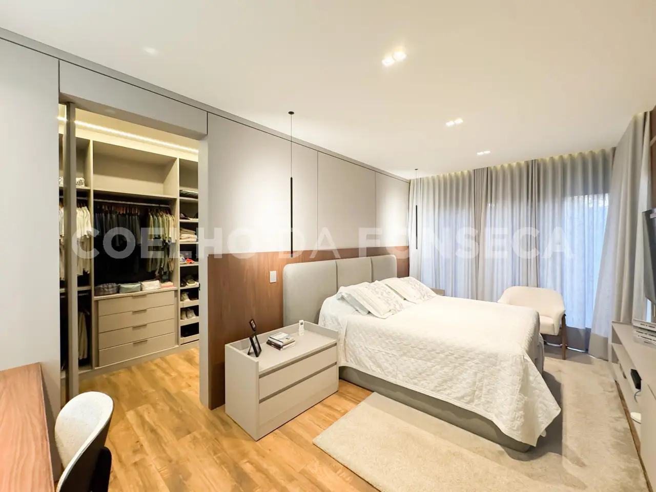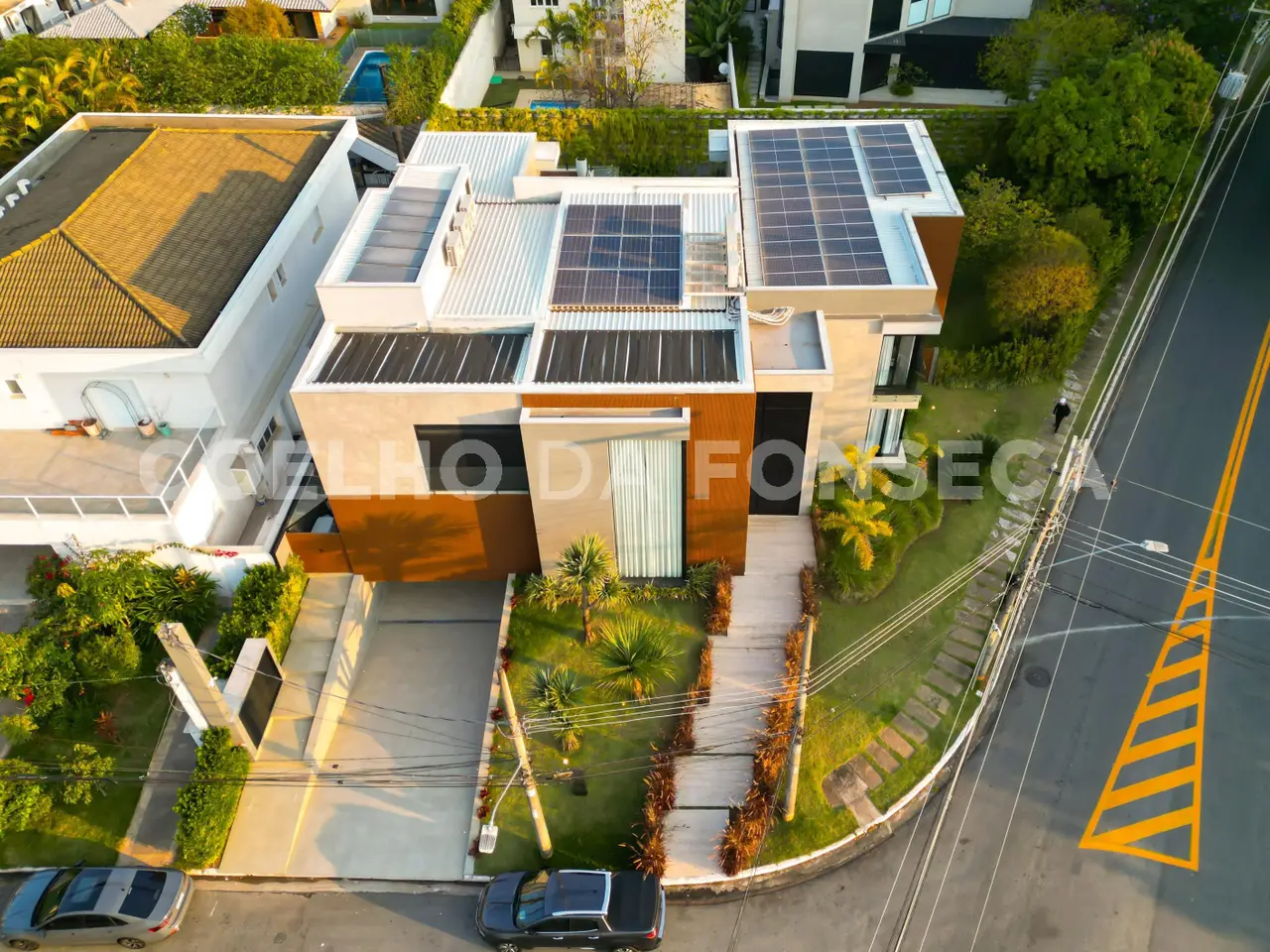 Beautiful house close to the gate. Generous living room with double height ceiling, eco-friendly fireplace, rooms facing the garden. Home theater, wine cellar and gourmet space designed for 3 rooms and integrated with the kitchen. High-end finishes. Leisure area with swimming pool covered in Hijau jade Palimana volcanic stone, jacuzzi and deck. All of this surrounded by beautiful landscaping and a vertical garden. House in the ALPHAVILLE 2 condominium, with 900m² built area, 5 bedroom(s), 5 suite(s), 8 parking space(s), 9 bathroom(s), swimming pool, accepts exchange, corner, sauna, air conditioning, maid's room, balcony, elevator, solar heater, double height ceiling.