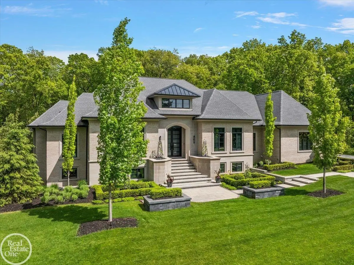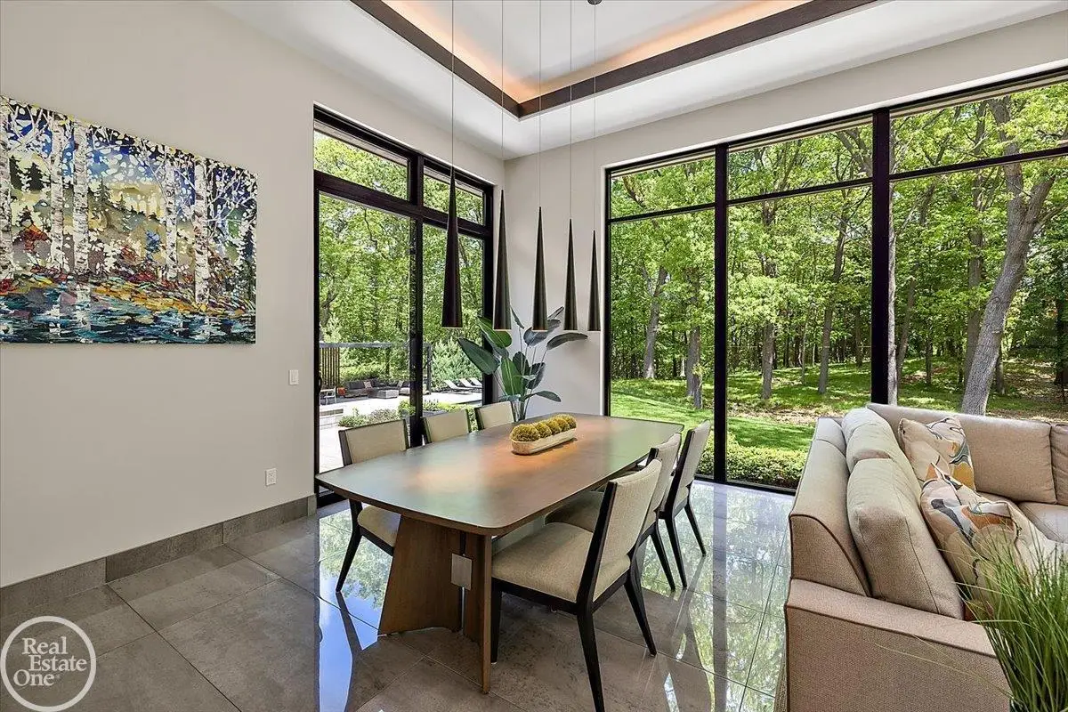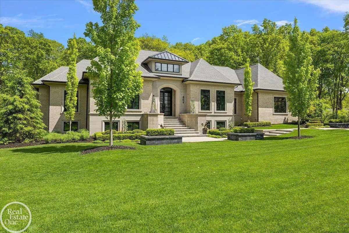 Experience unparalleled modern luxury in this custom-built 2021 Cranbrook masterpiece. Featured in Detroit Design Magazine, this home showcases exquisite interior design by Tutto Interiors, boasting the finest materials and craftsmanship throughout. Situated on 3 private wooded acres, this residence offers a serene escape with an urban edge. The open floor plan, highlighted by soaring 14-foot ceilings and expansive walls of windows, floods the home with natural light and breathtaking views. The gourmet kitchen, equipped with Thermador appliances, is an entertainer's dream. Relax in the stunning great room with its floating fireplace or unwind in the four-seasons glass room, featuring an industrial loft aesthetic and a natural fireplace. The primary suite offers a spa-like experience with a luxurious bath, steam shower, and dual walk-in closets, all overlooking the tranquil wooded landscape. The finished walk-out lower level leads to a 35x12 inground pool, complete with a custom pergola and firepit, perfect for outdoor gatherings.
